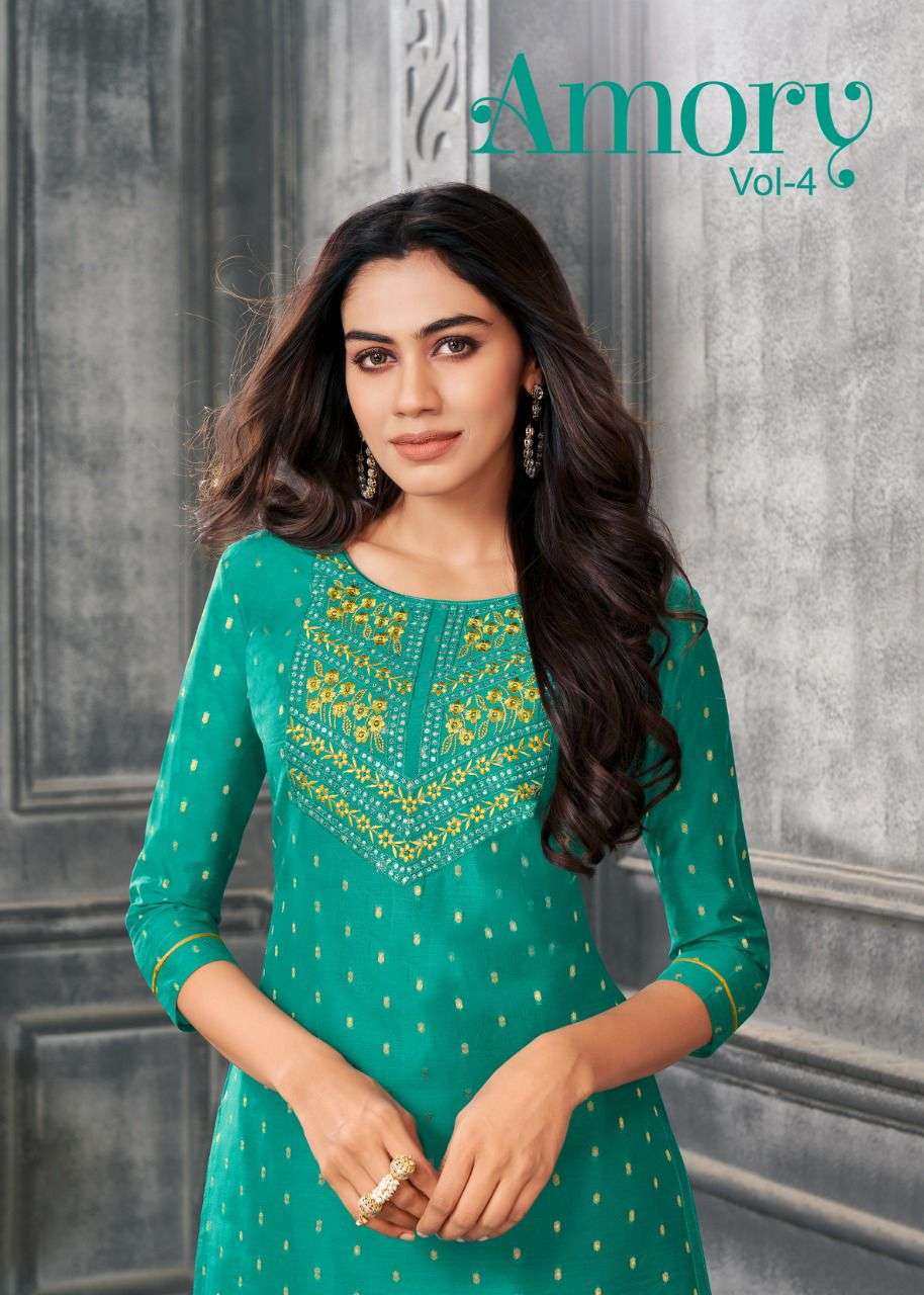 amory vol 4 by artio kapil silk butti kurti with inner simple collection