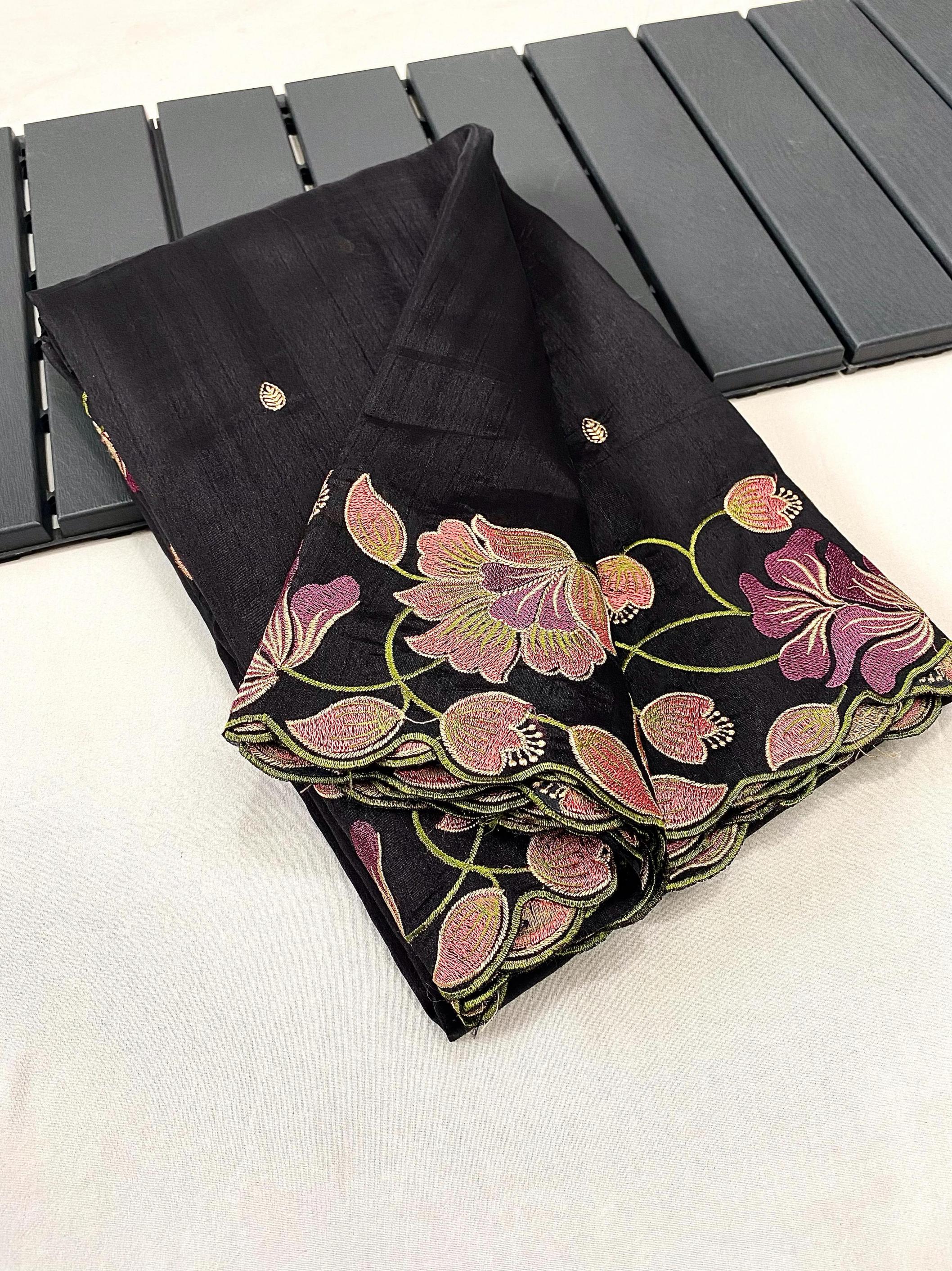 New Catalogue ❣️❣️❣️ Catalogue - Amrita. Premium tussar silk saree with all over beautiful contrast embroidery work and motifs with cutwork border. Price :- 1250 😊 Ready to ship 🚢🚢🚢 |