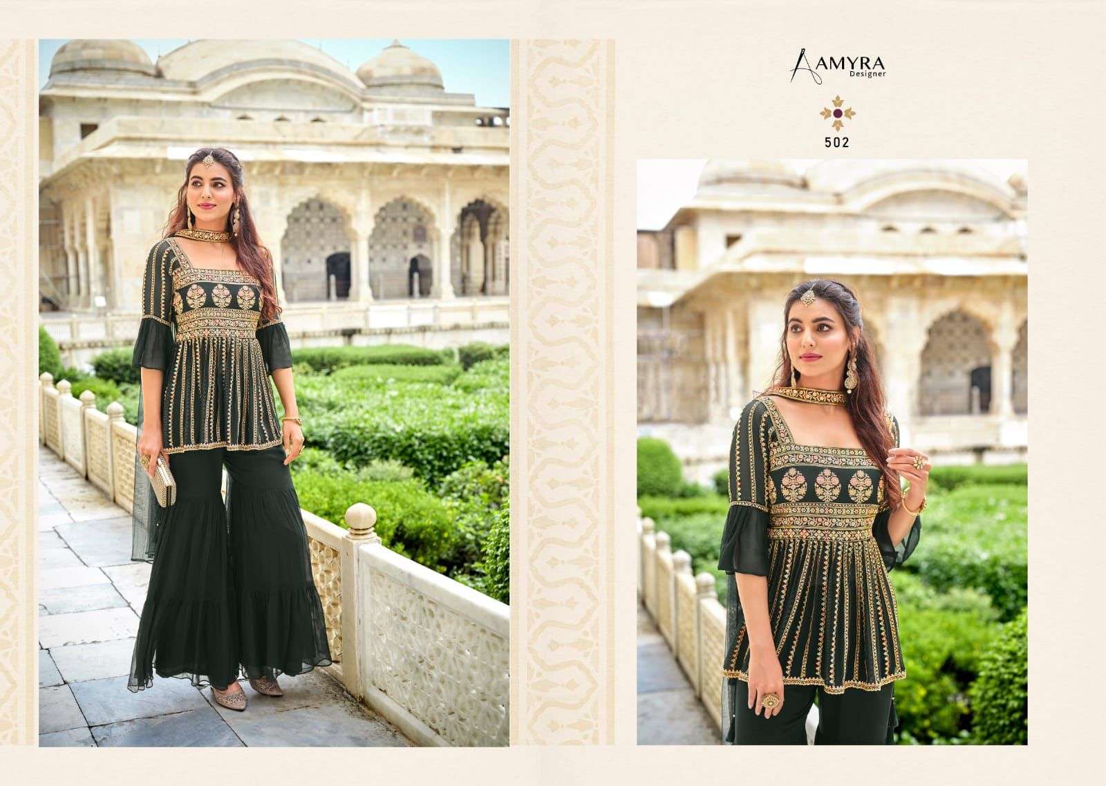 amyra designer florence georgette designer festival wear kurti with sharara & dupatta