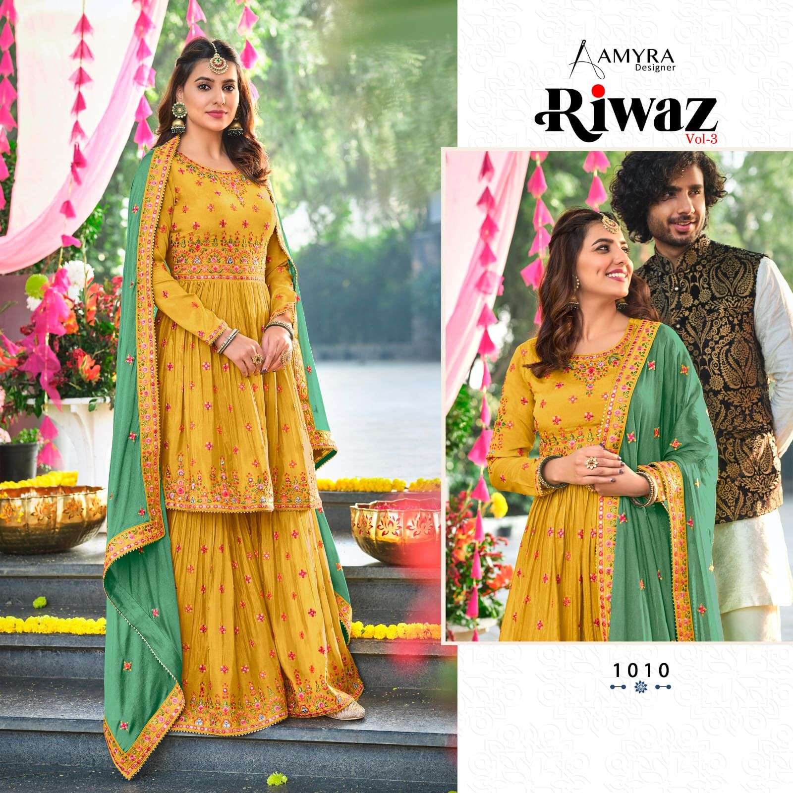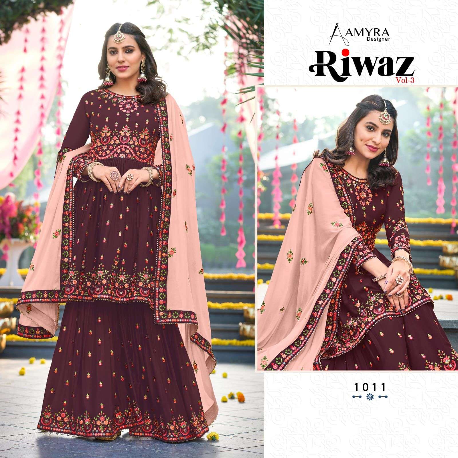 amyra riwaz vol 3 readymade top with plazzo & dupatta collection