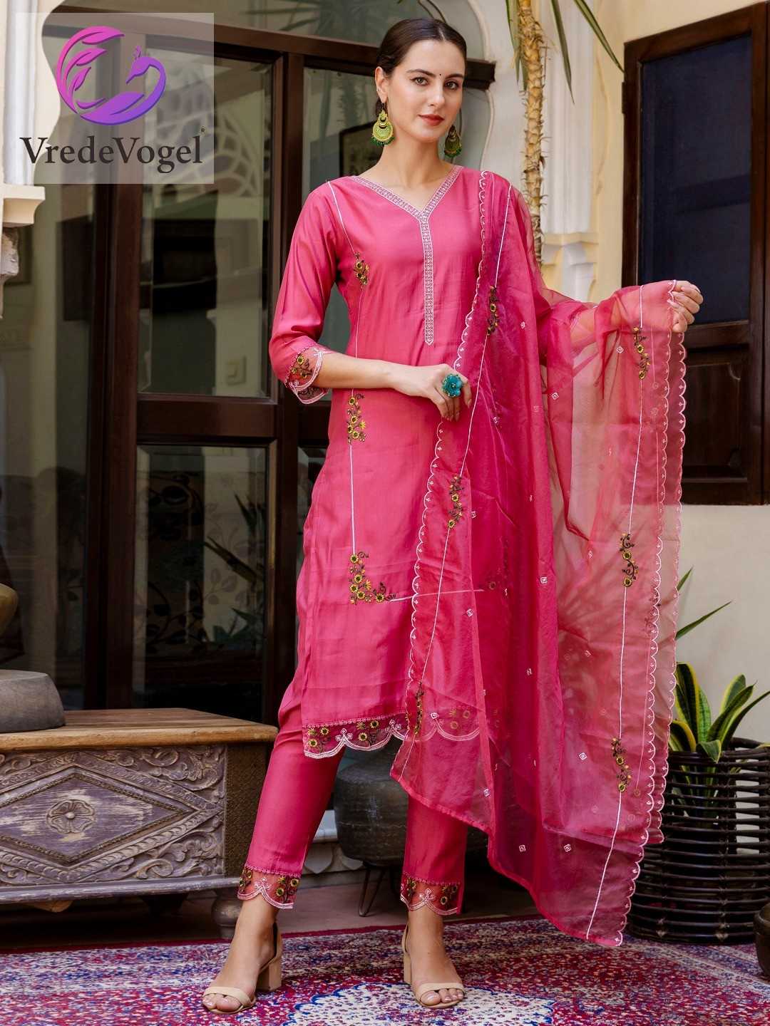 anamika by vredevogel roman silk readymade attractive look 3pcs dress