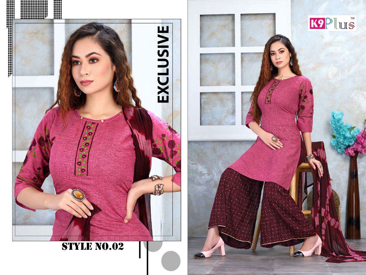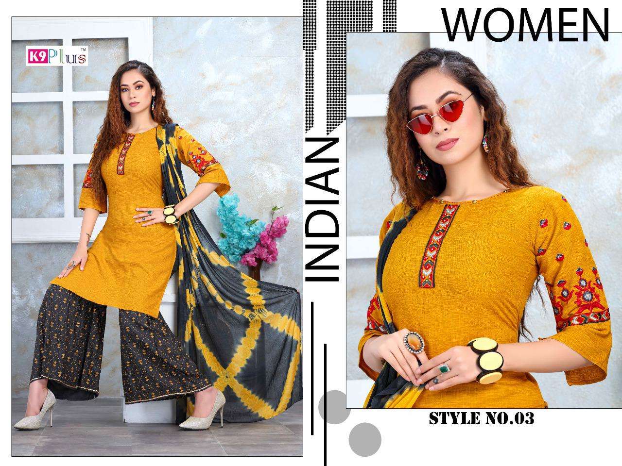 ⭐K9PLUS⭐ 🔥 ANAMIKA VOL.2 🔥 KURTI WITH PLAZO WITH DUPPTTA 👗TOP - HEAVY REYON WITH EMBROIDERY WORK 👖BOTTOM- HEAVY REYON 14KG PLAZO WITH FOIL PRINT WITH LACE NAZMEEN DUPPTTA Rate : 615/- |