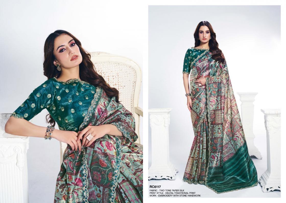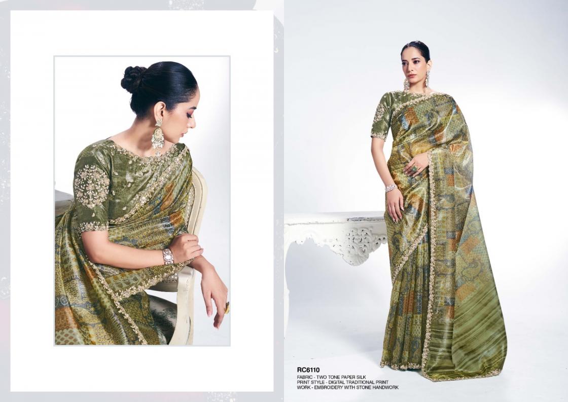 Our New Festive Wear Designer Saree Collection Brand Name : Mahotsav-Rang Chatkila Catalog: Rang Chatkila 6100 Ananta Price:- Fabric: - Attached Work : Attached Blouse Type: Un Stitched Note: .(There Might Be Slight Color Variation Due To Lighting & Flash During The Photo Shoot.) |
