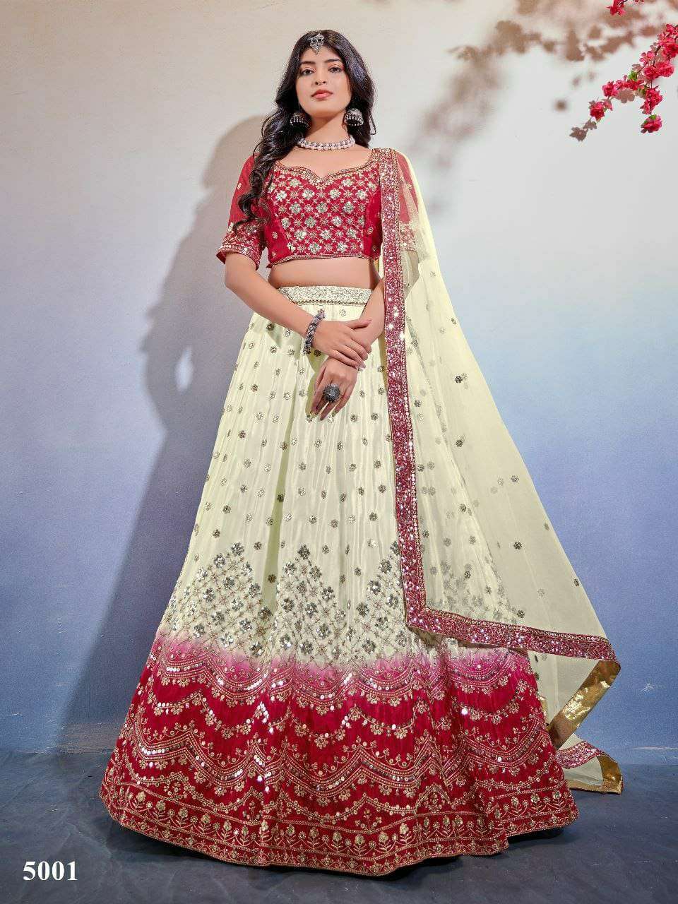 BOOK CATALOGUE 5001 OFF WHITE-RED ON KRISHNA CREATION. CALL ON +91-8866778727.