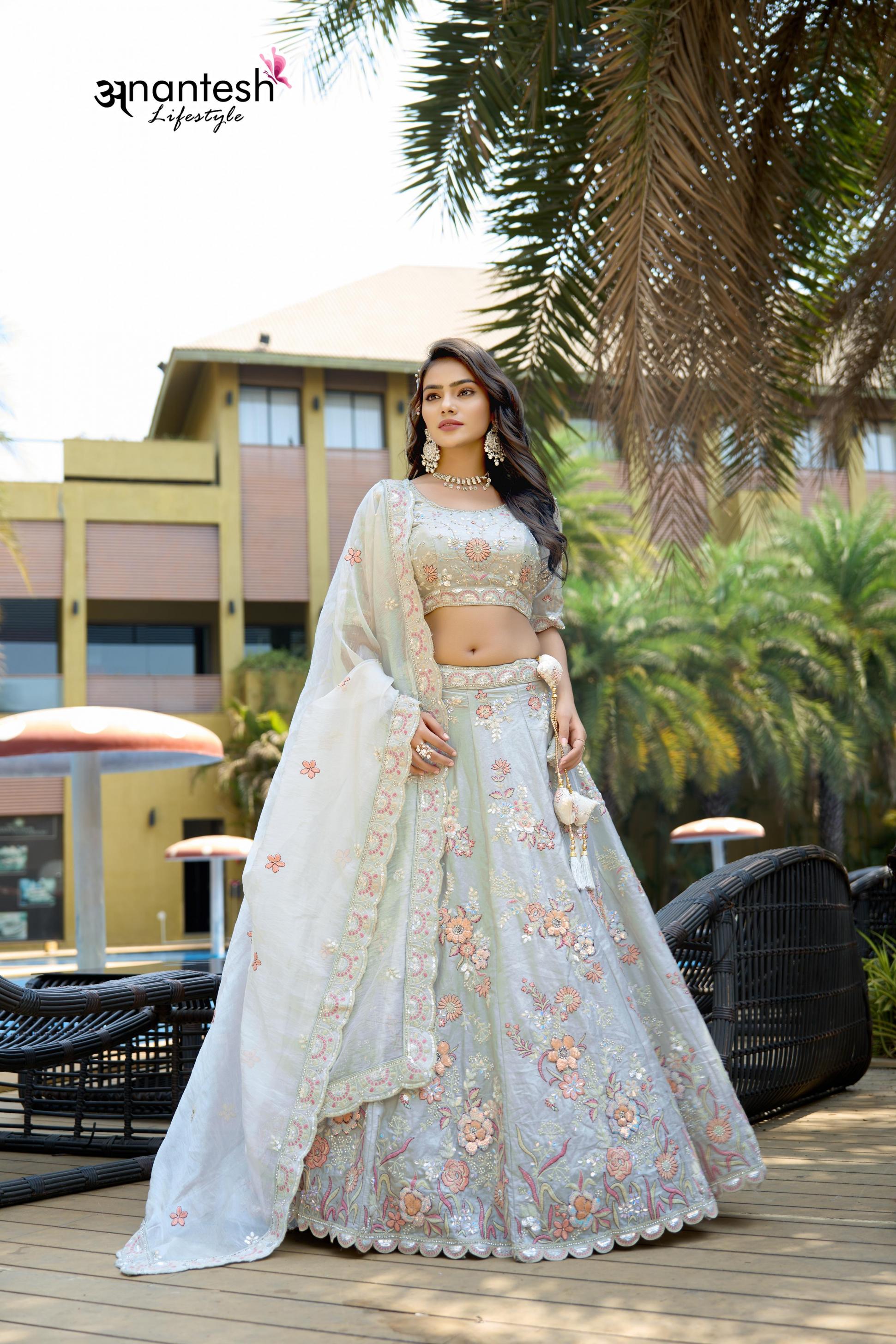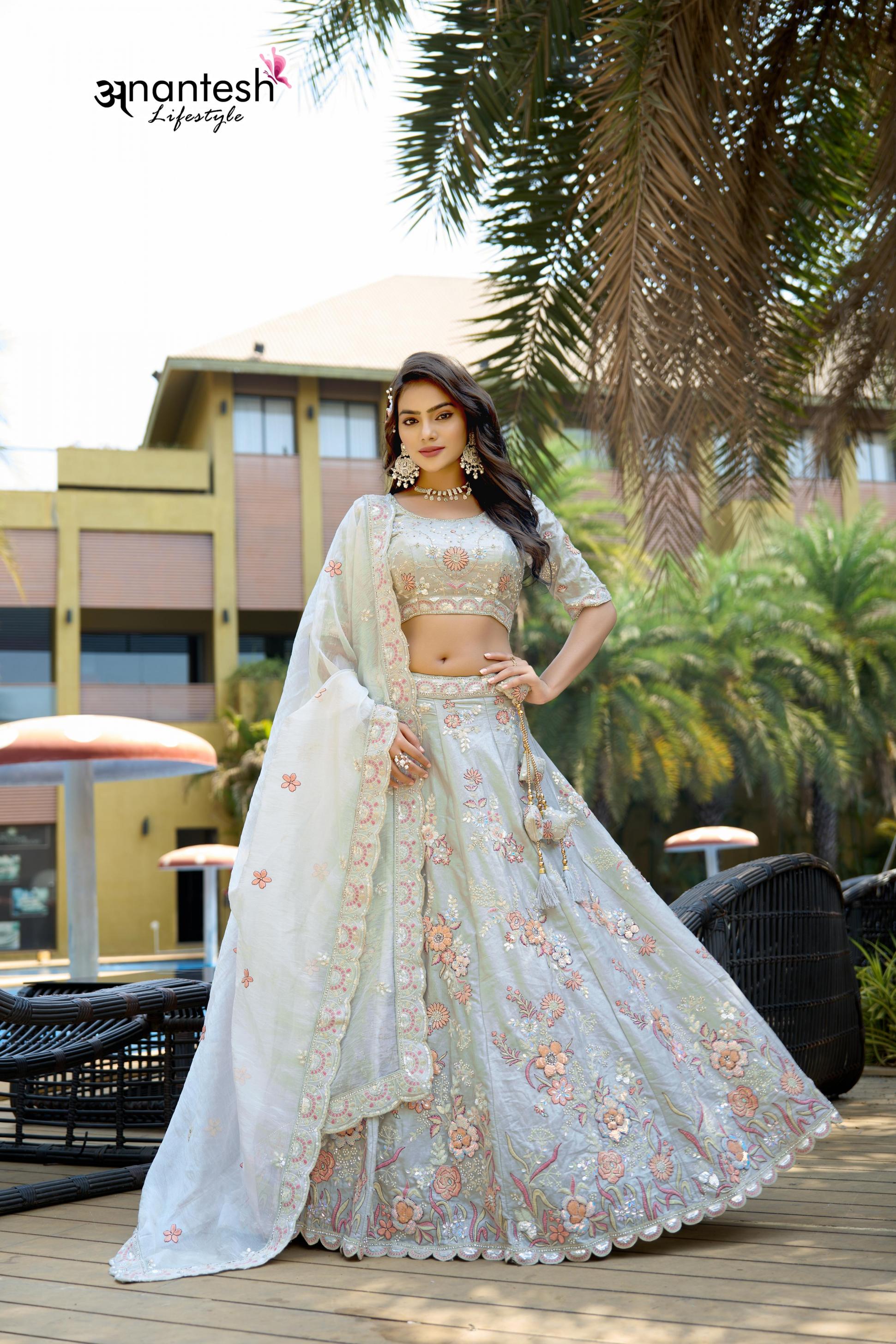ANANTESH ®️ LIFESTYLE CODE- 5049 Lehenga- Pure fendy silk blouse- Pure fendy silk dupatta- Pure organza Key Features: - 4 meter flair colour Availability: Important: Rate- 8495/- - GST: 12% extra |