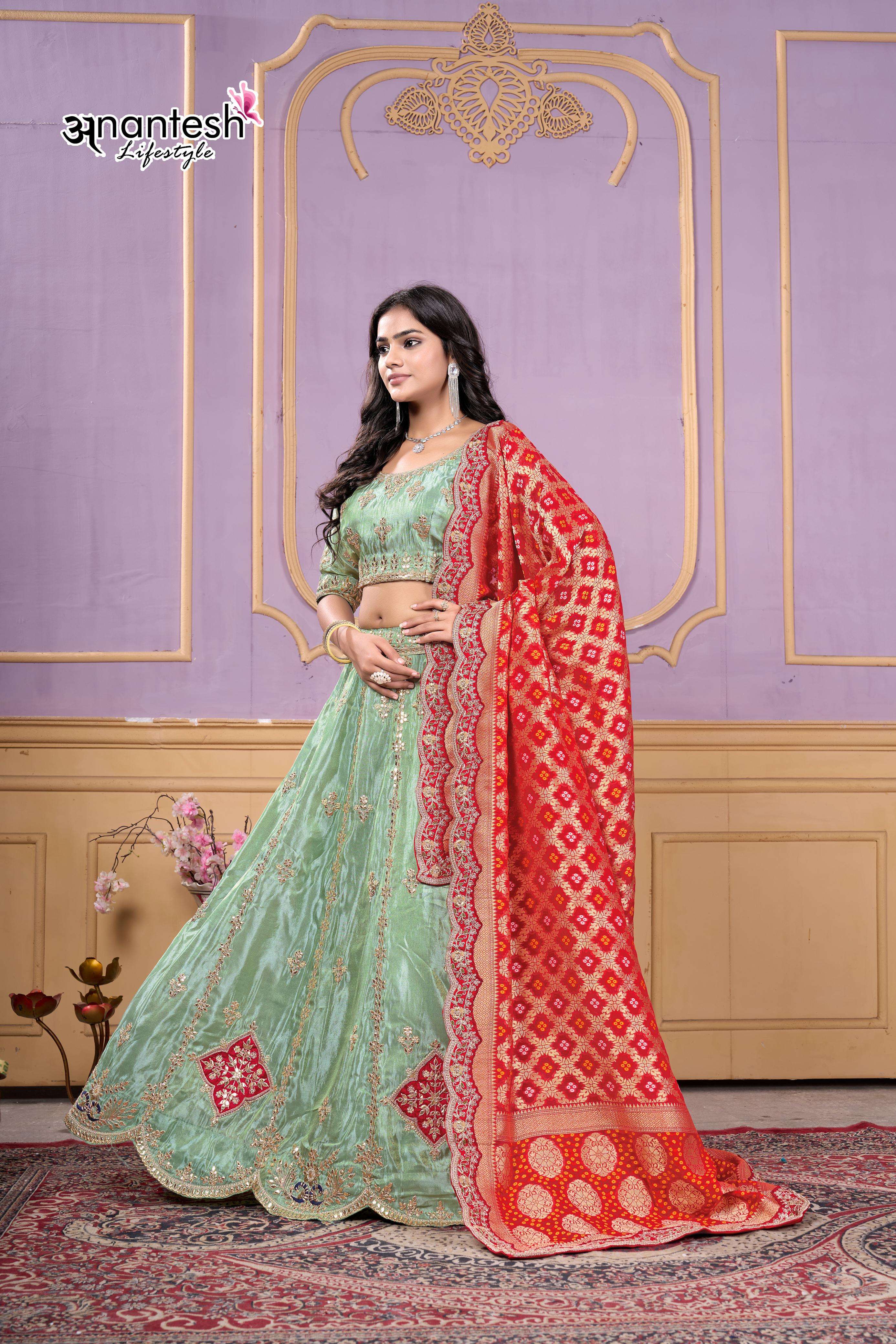 ANANTESH ®️ LIFESTYLE CODE-5050 Lehenga- Pure COSMOS VISCOSE blouse- Pure COSMOS VISCOSE dupatta- Pure COSMOS BANDHEJ Key Features - 4 meter flair colour Availability Important - Rate- 6995/- - GST 12% extra |