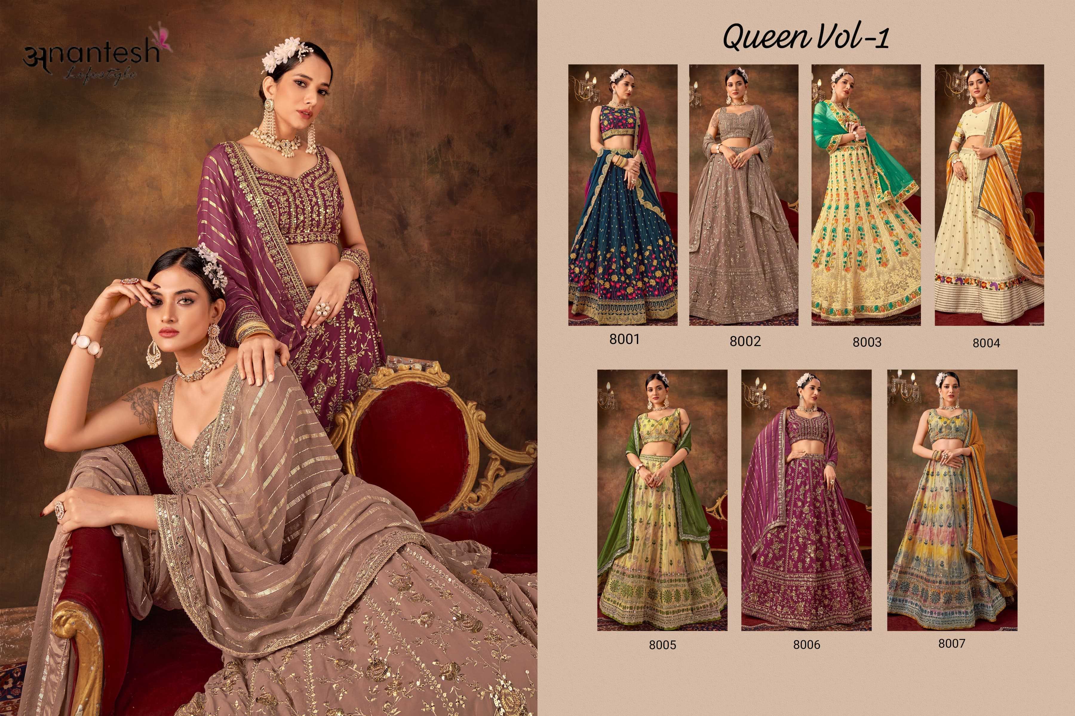 anantesh queen vol 1 8001-8007 designer bridal wear semistitch lehenga choli dupatta