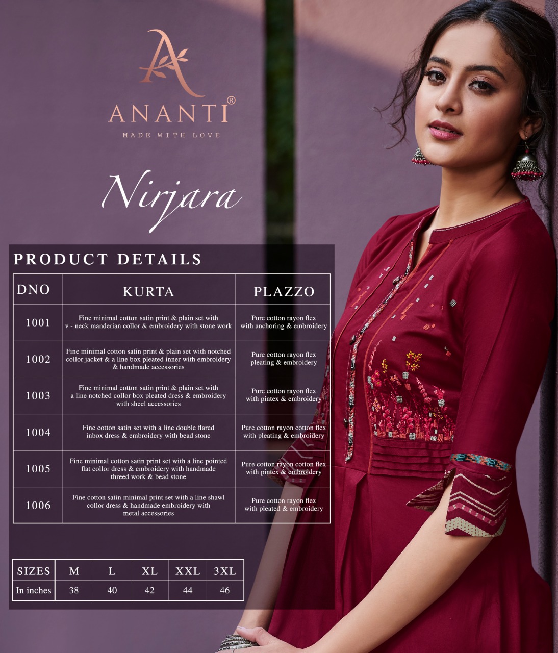 DND Clothing Introducing New Brand âÂÂANANTIâ Brings to You Contemporary Classic Festival Vibeâ âÂÂNIRJARAâ . (Kurti with plazzo) FABRICS âªTOP: Fine Cotton Minimal Print With Plain Cotton Satin Fabric âªBOTTOM: Pure Cotton Rayon Flex Each Design Has Embroidery And Handmade Value Addition Accessories âªSIZE: M, L, XL, XXL, 3XL âªLENGTH: 47âÂÂâ Inches âªRATE: RS. 999/- Per Piece( AND 5% GST EXTRA) Limited Edition Booking started from now... Order yours soon.. |