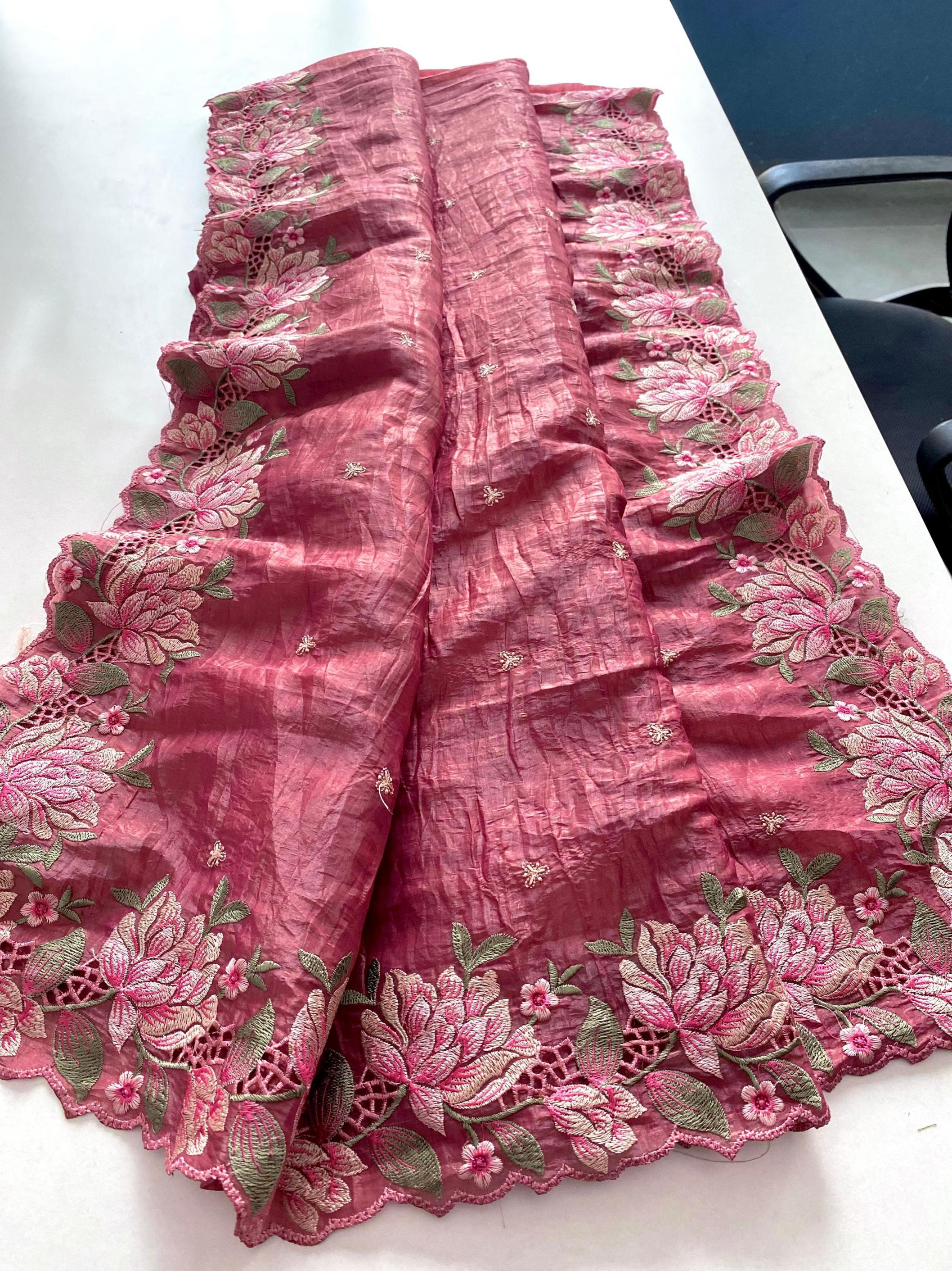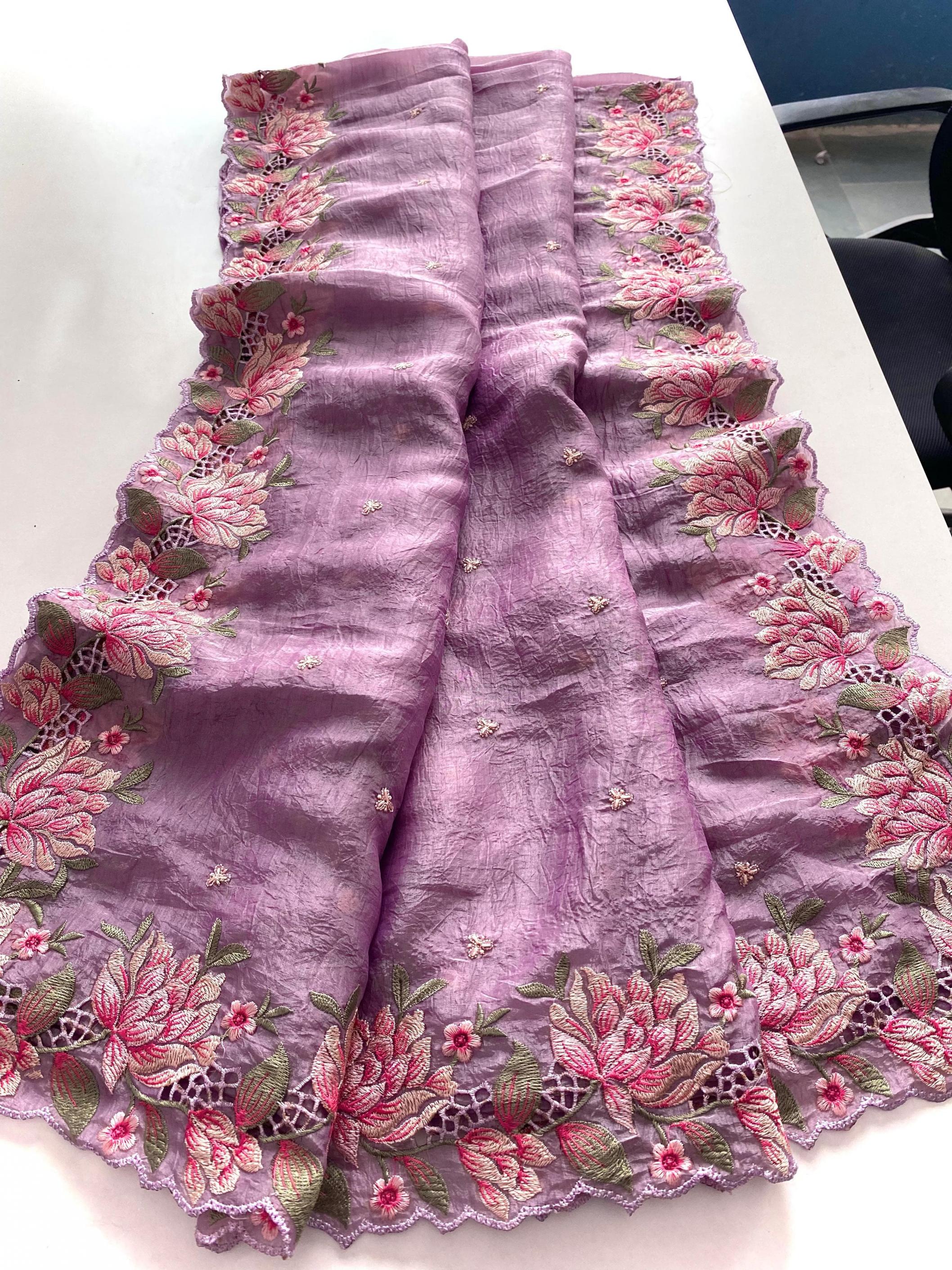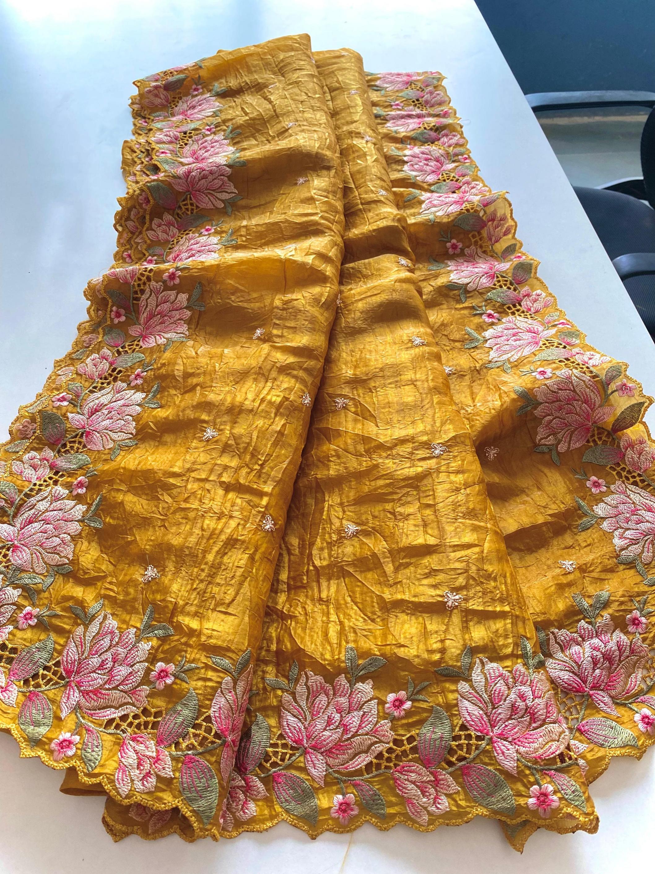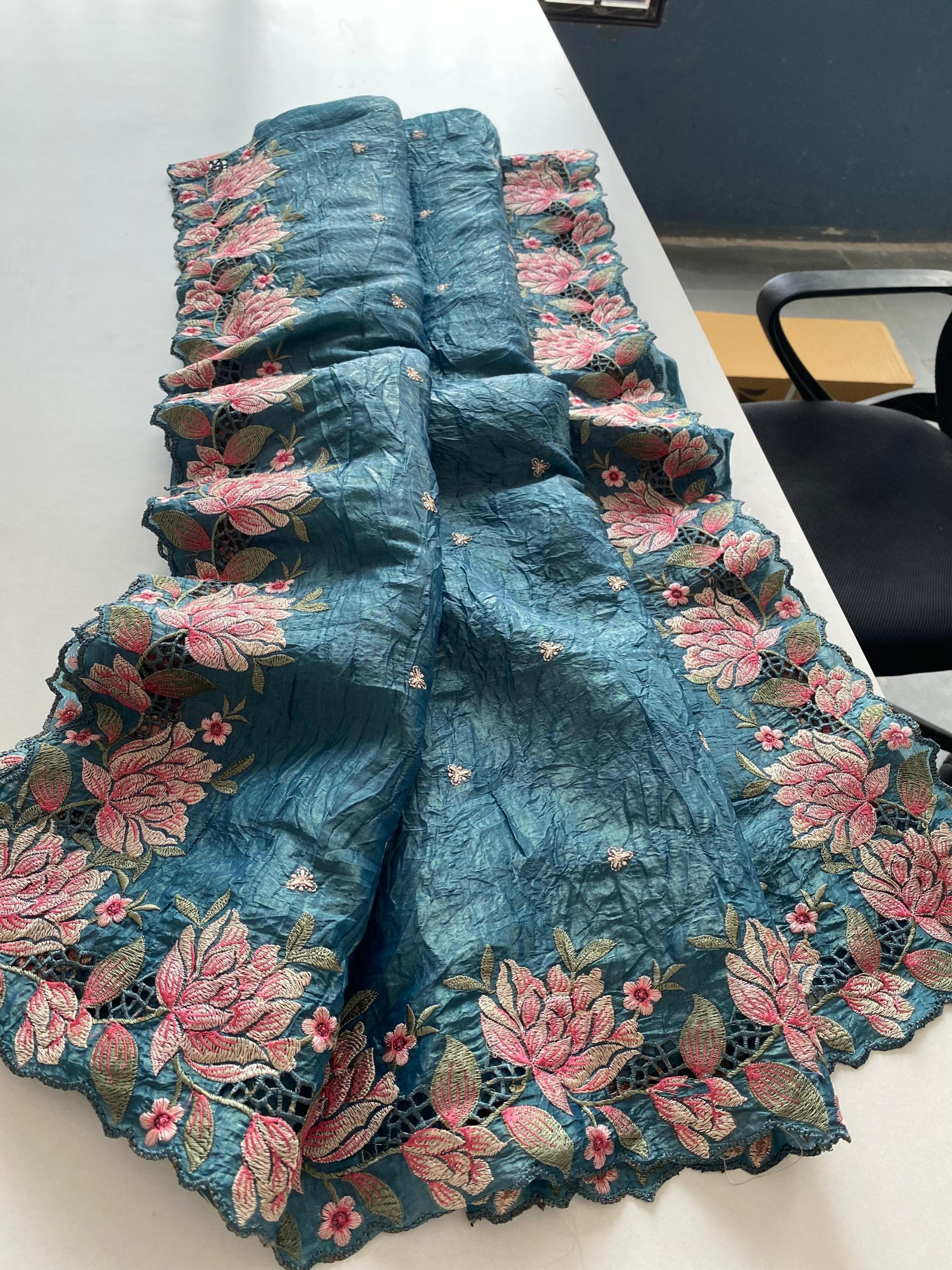 Premium collection saree. Catalogue - Ananya 🥻👉🏻Description - Pure crush silk saree with all over embroidery design and cut work design. 👉🏻 Highlight - Intricate embroidery designed contrast pallu. 😍 👉🏻 1350/- Ready to ship 🚢🚢🚢 |