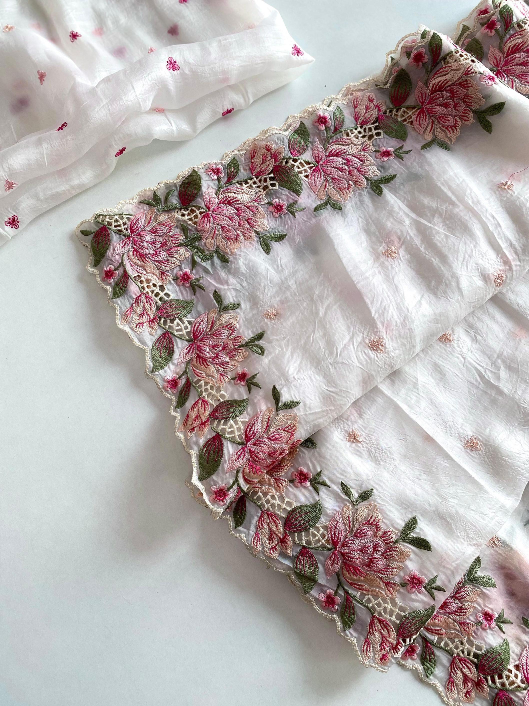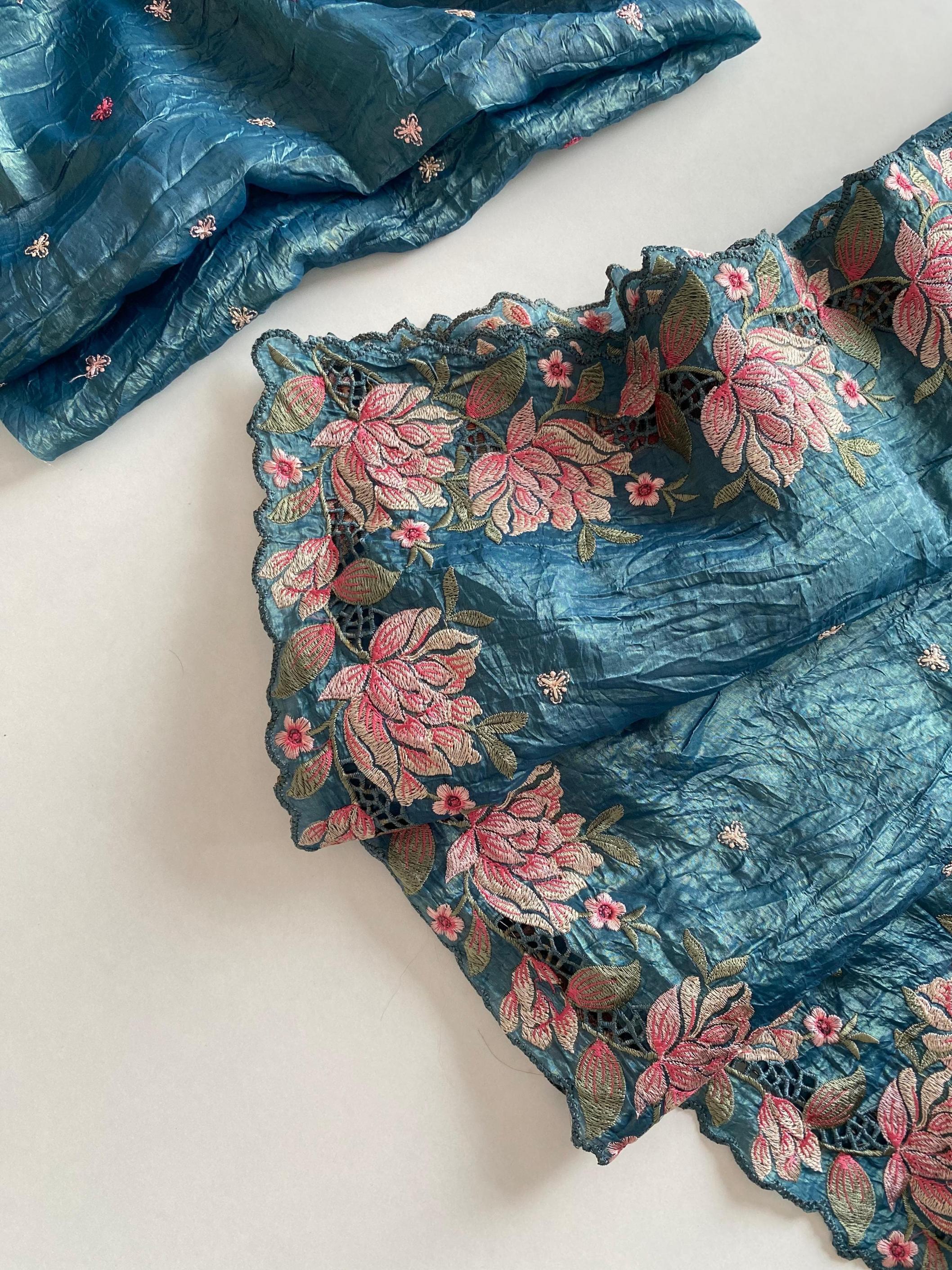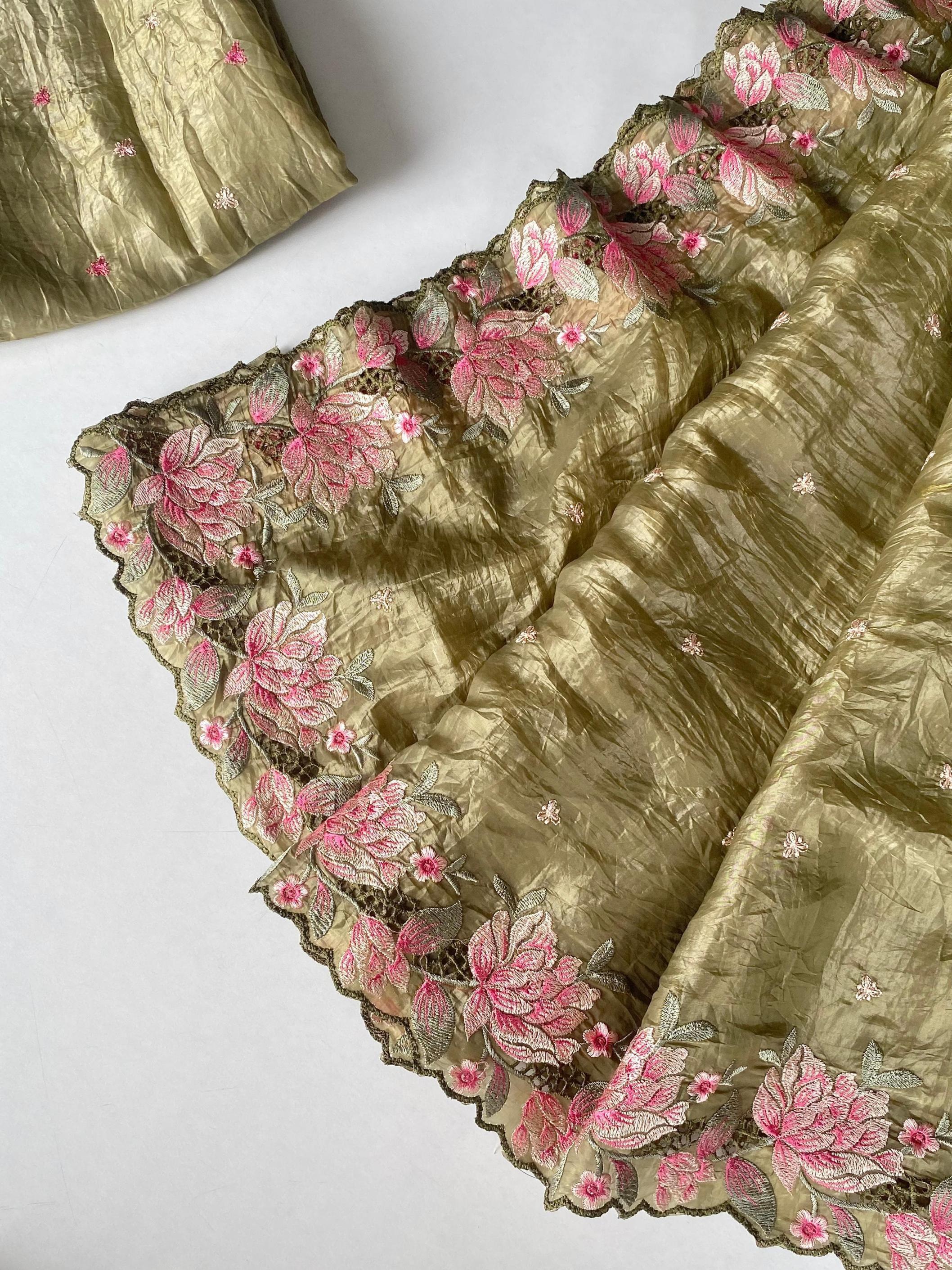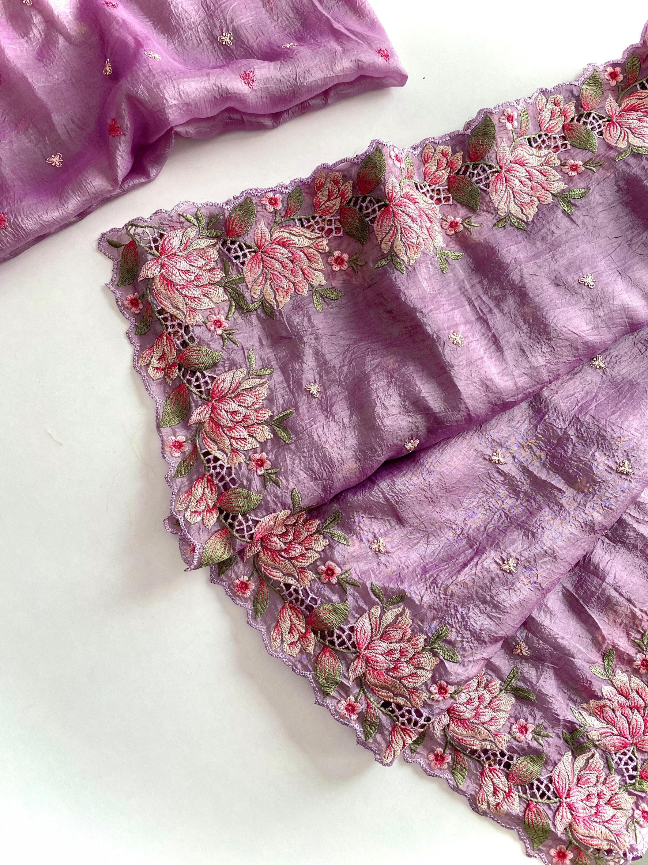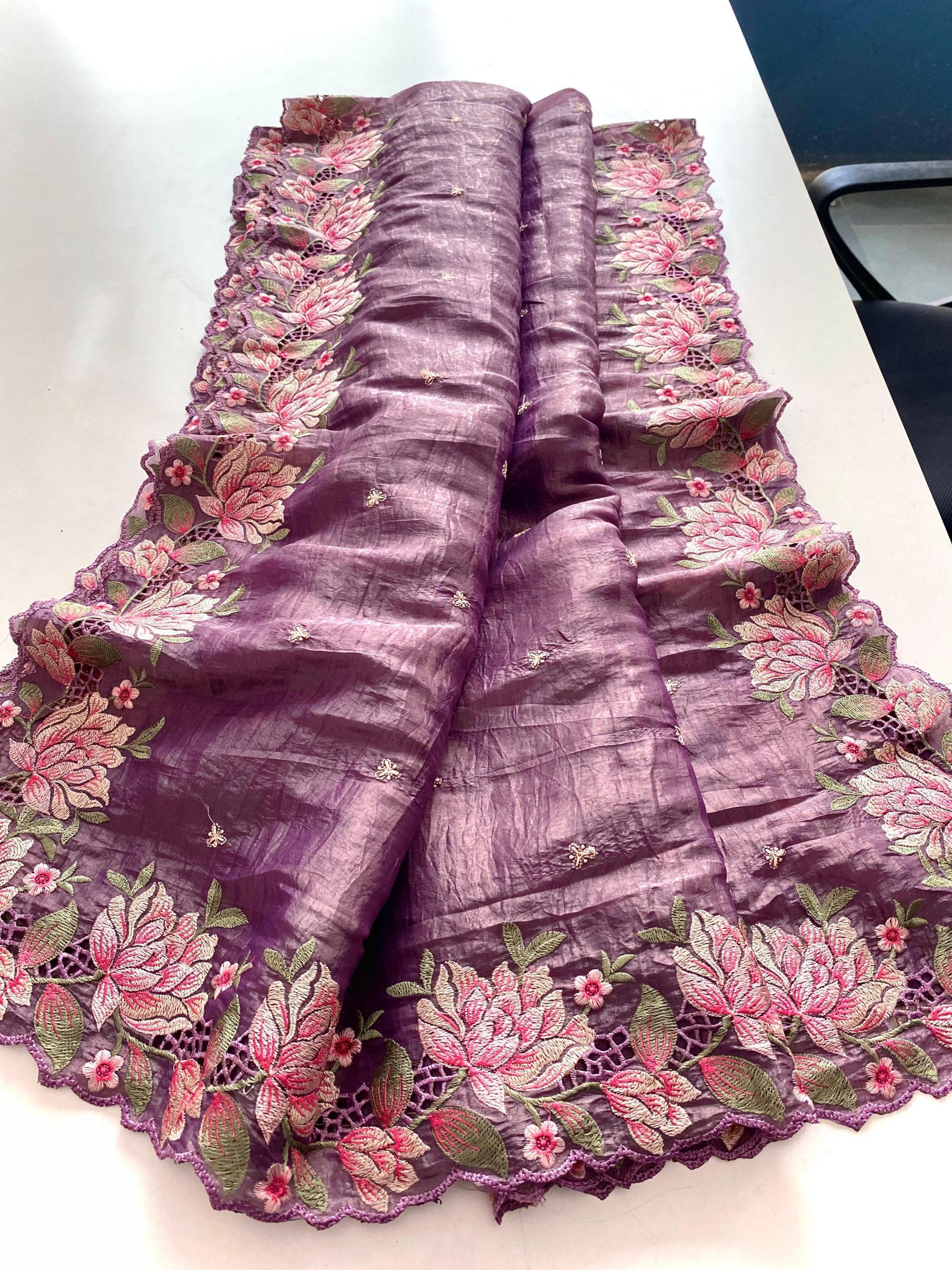 Premium collection saree. Catalogue - Ananya 🥻👉🏻Description - Pure crush silk saree with all over embroidery design and cut work design. 👉🏻 Highlight - Intricate embroidery designed contrast pallu. 😍 👉🏻 1350/- Ready to ship 🚢🚢🚢 |