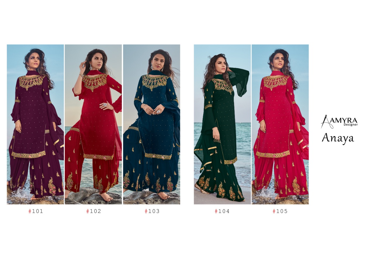 Anaya By Amyra Designer Georgette Embroidery Plazzo Stylish Suits Wholesaler