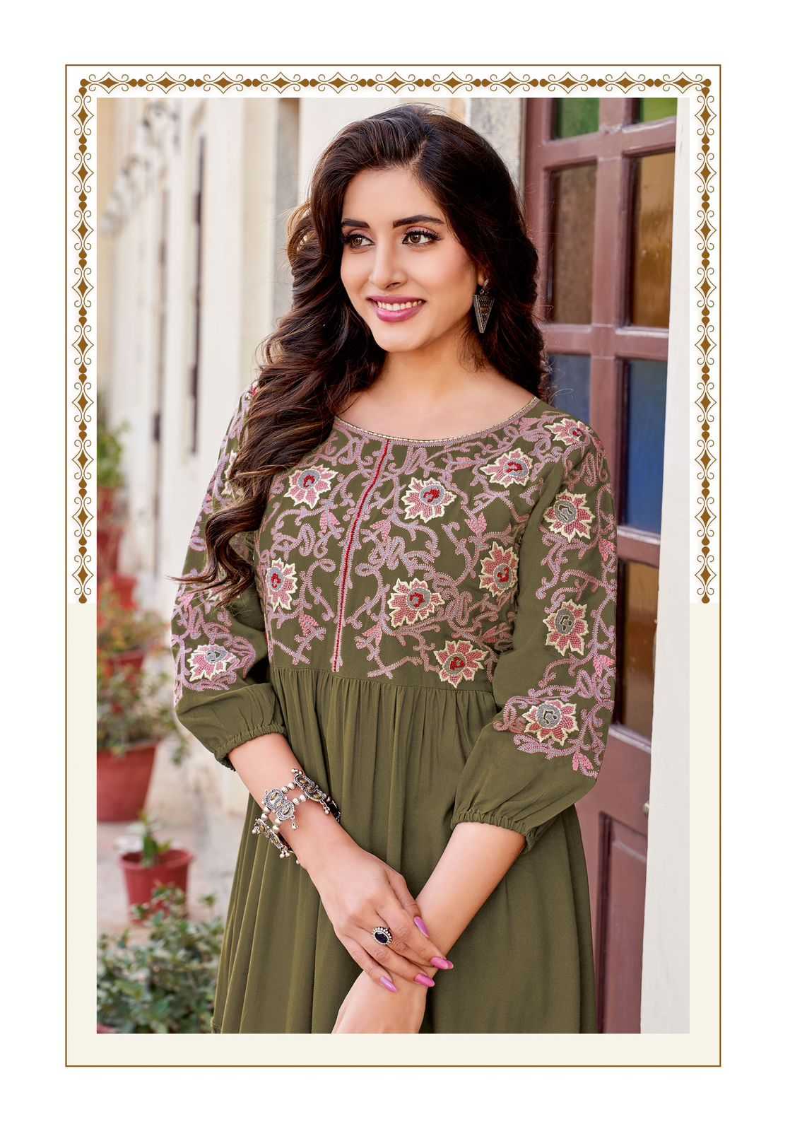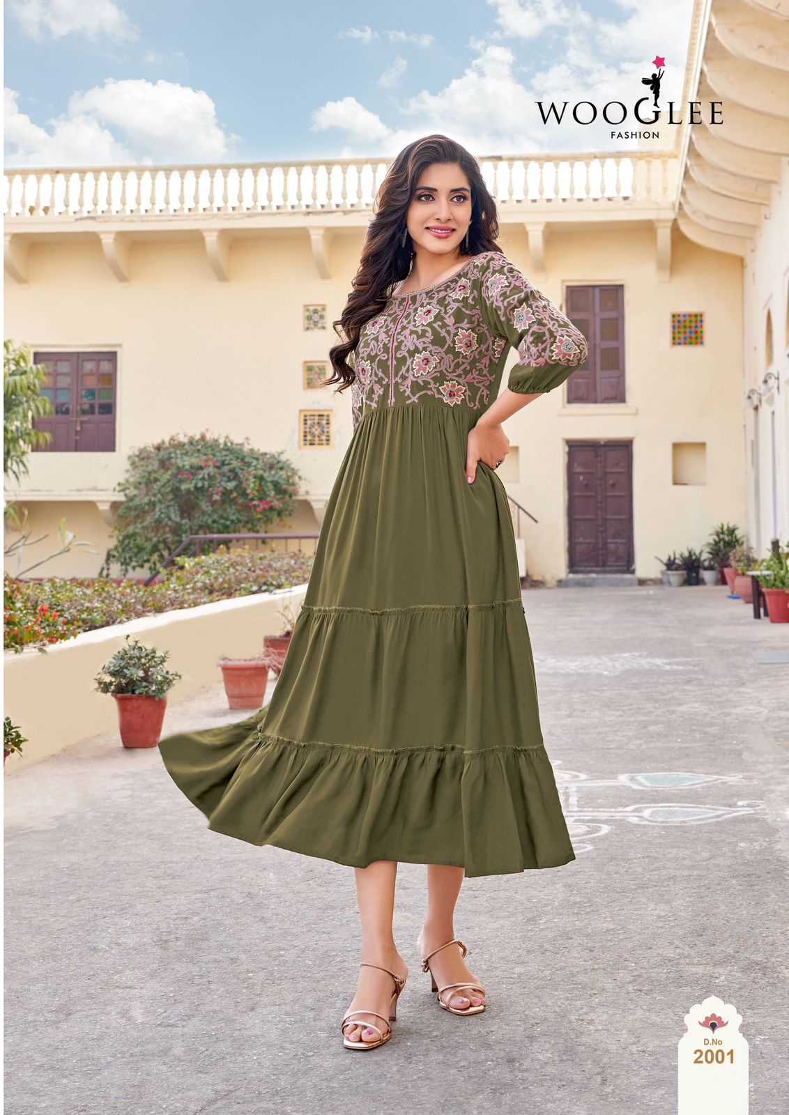anchal by wooglee fullstitch rayon trendy kurti collection