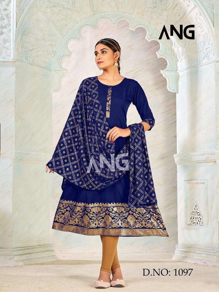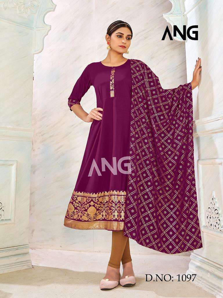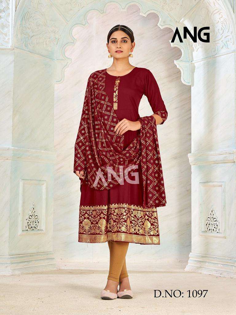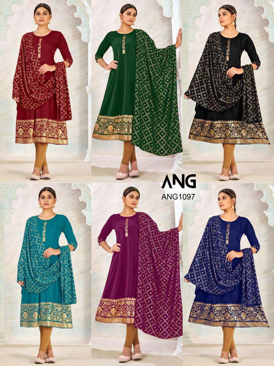 Top with Dupatta Catalog:ANG-1097 Design : 6 piece set Top : American malai crap Gold Print Size : S.M. L. Xl. XXL. 3XL Rate: 490/- |