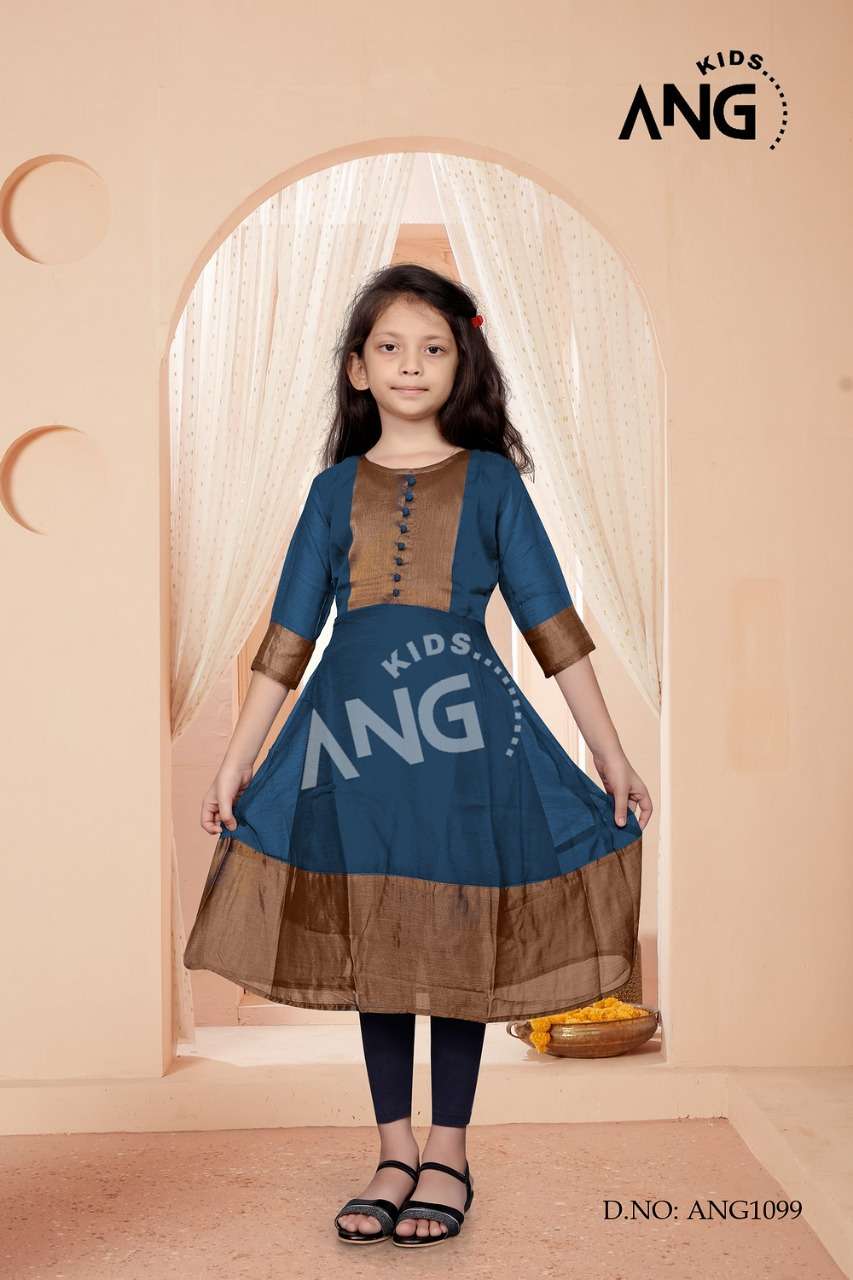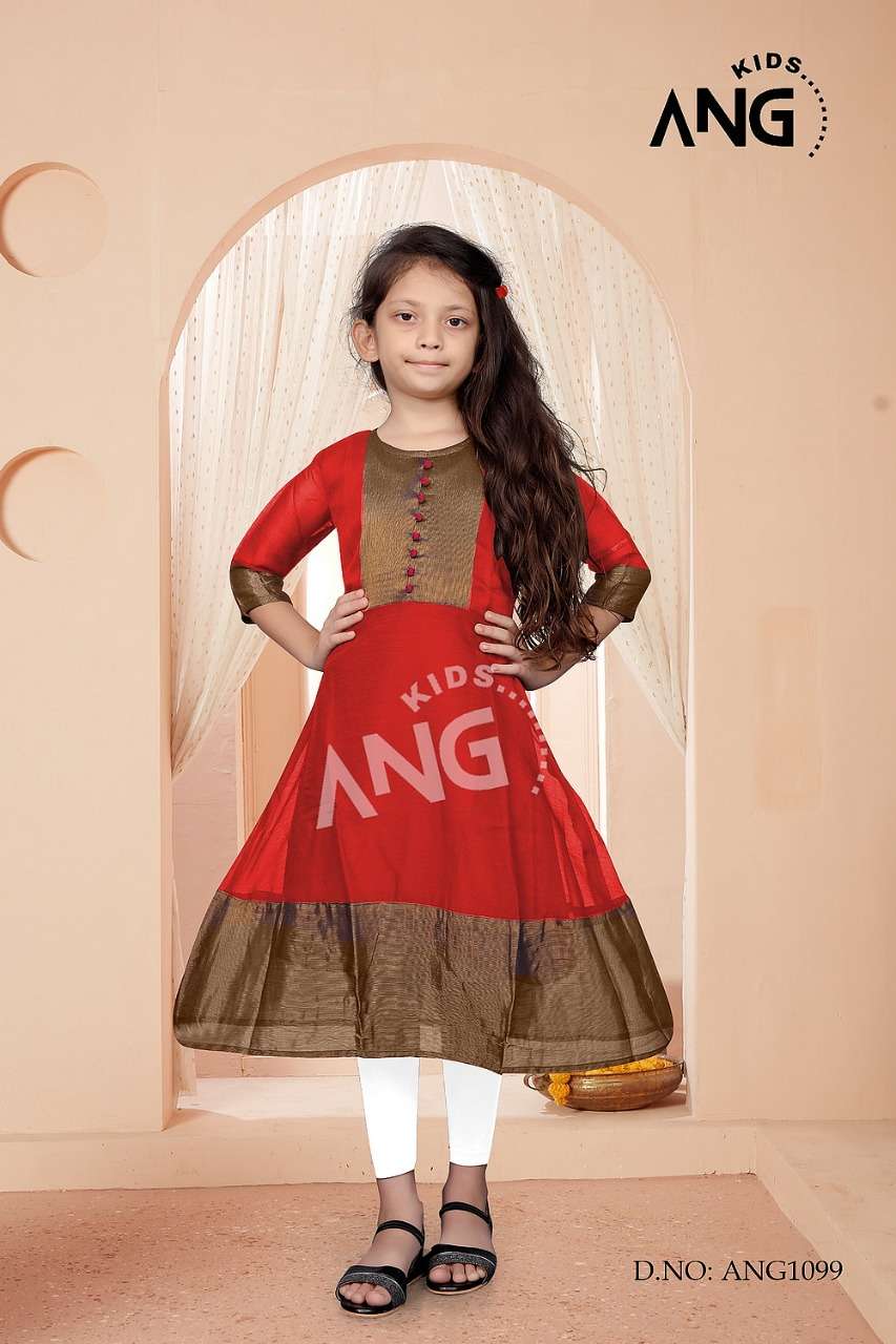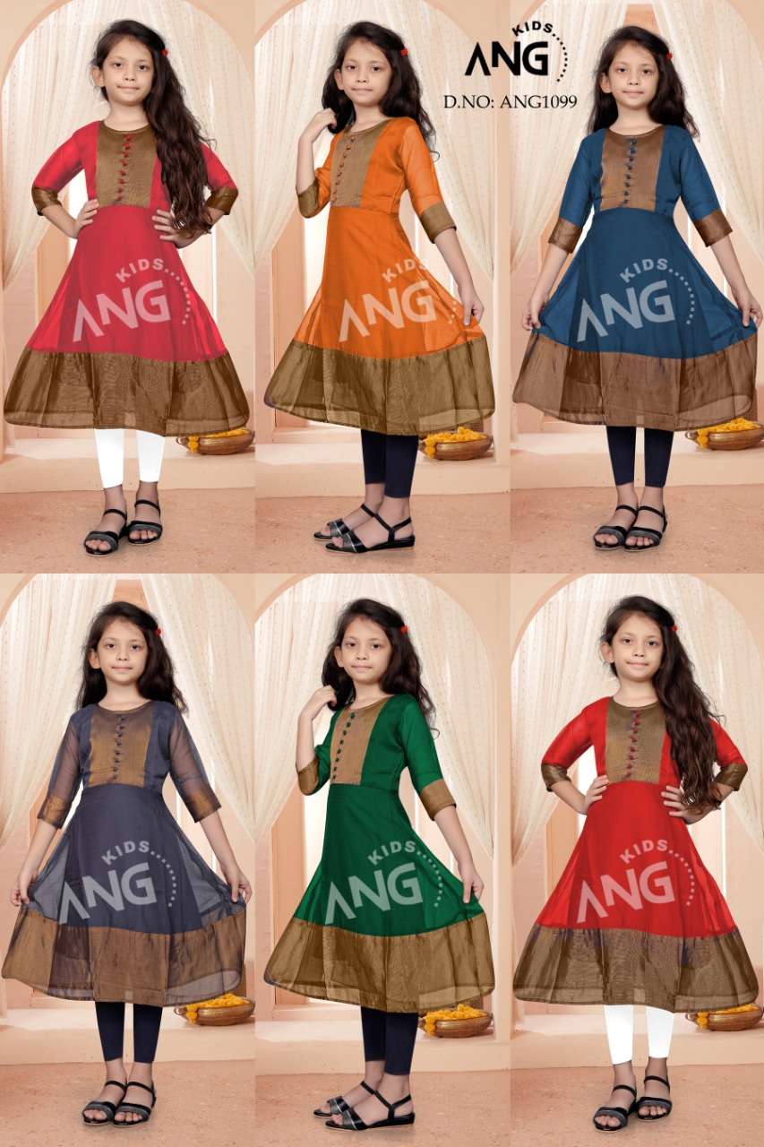 kids ANG Kurties Catalog:ANG-1099Kids Color : 6 Kurta : chiffon Gold Border with inner Size : 24. 26. 28. 30. 32. 34 Rate: 330 |