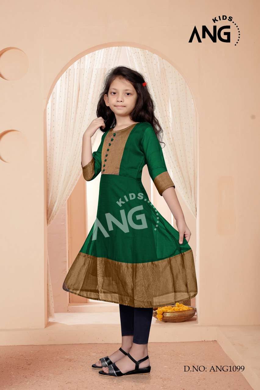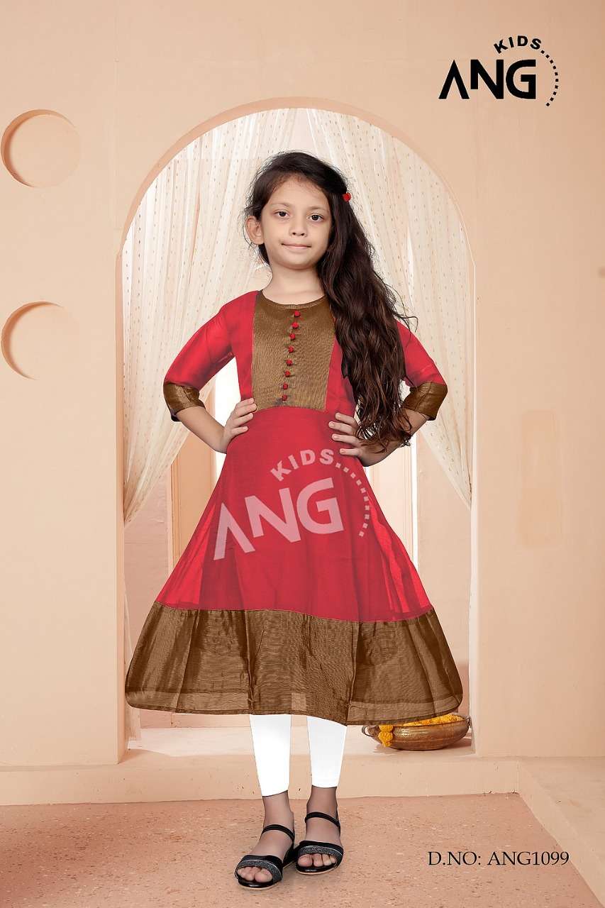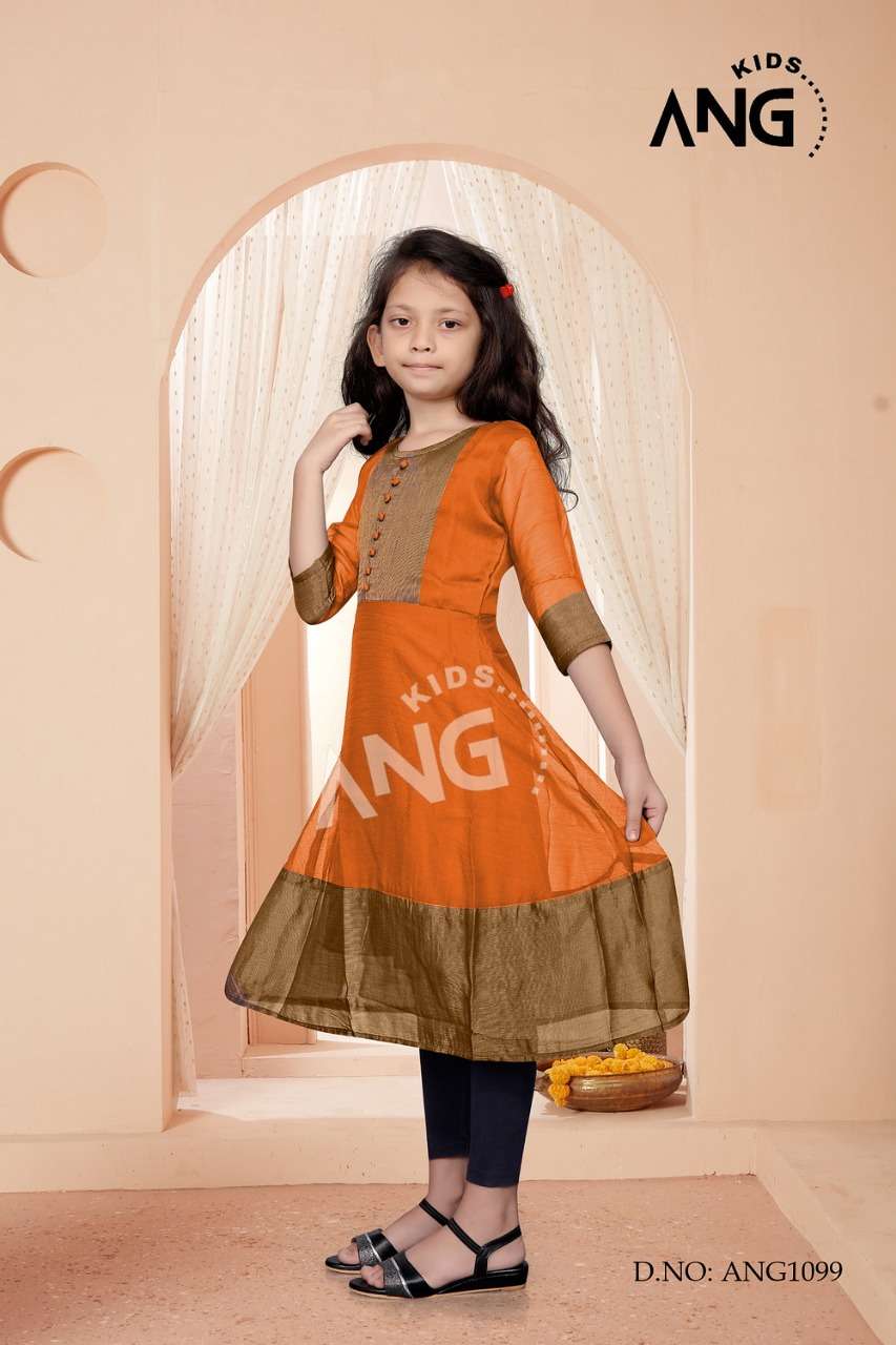 kids ANG Kurties Catalog:ANG-1099Kids Color : 6 Kurta : chiffon Gold Border with inner Size : 24. 26. 28. 30. 32. 34 Rate: 330 |
