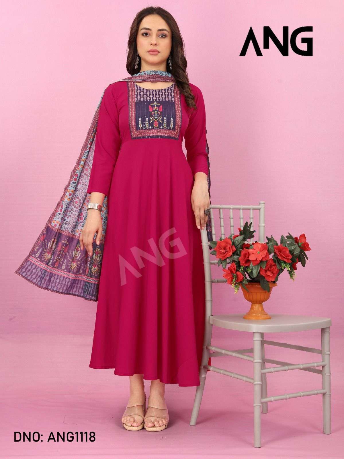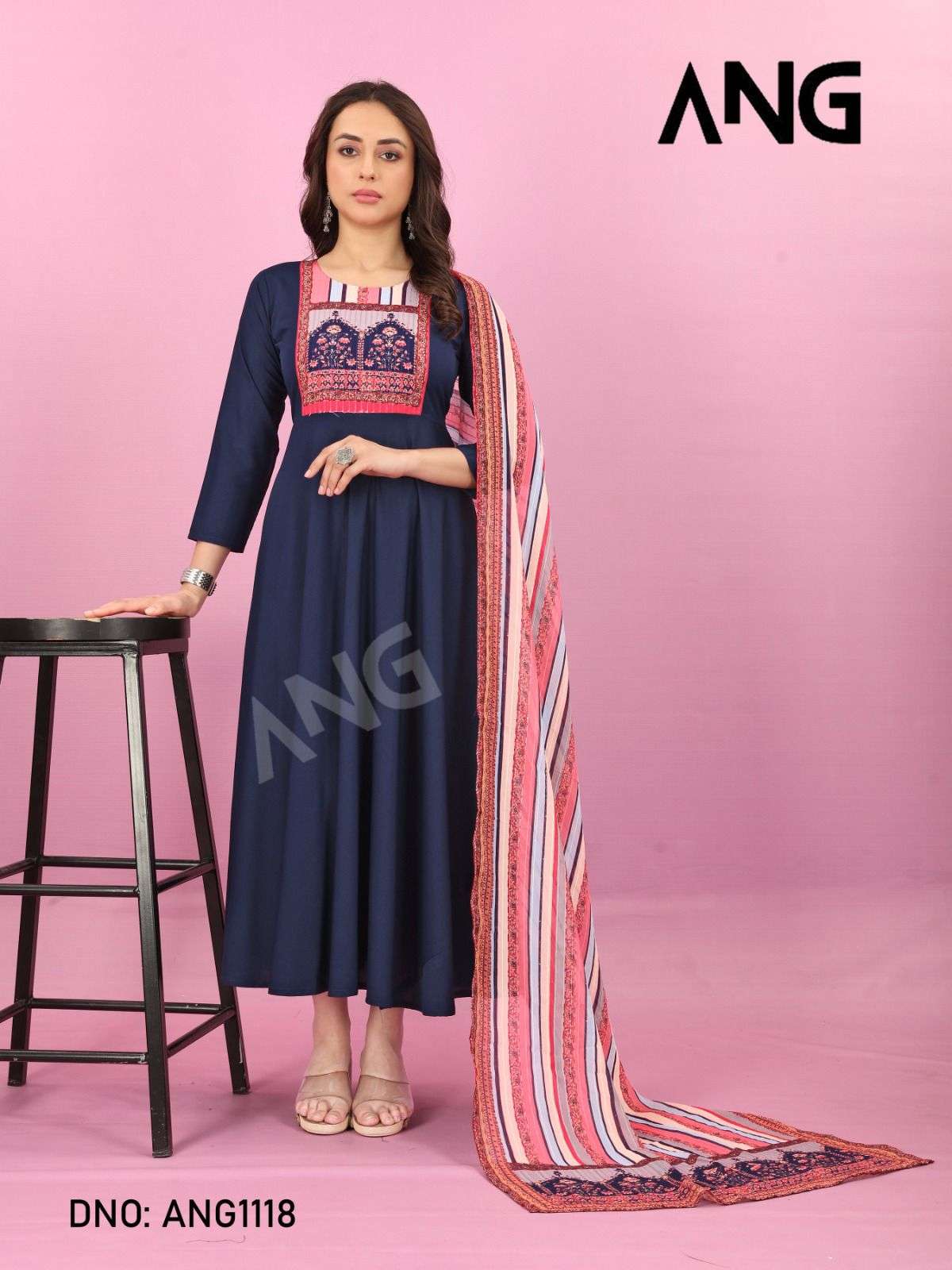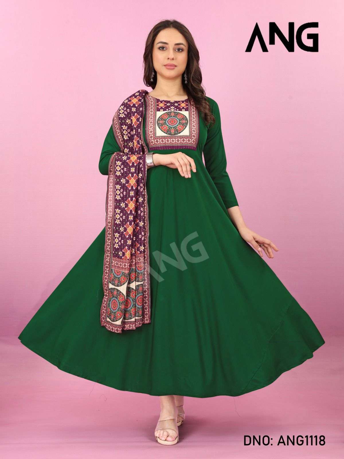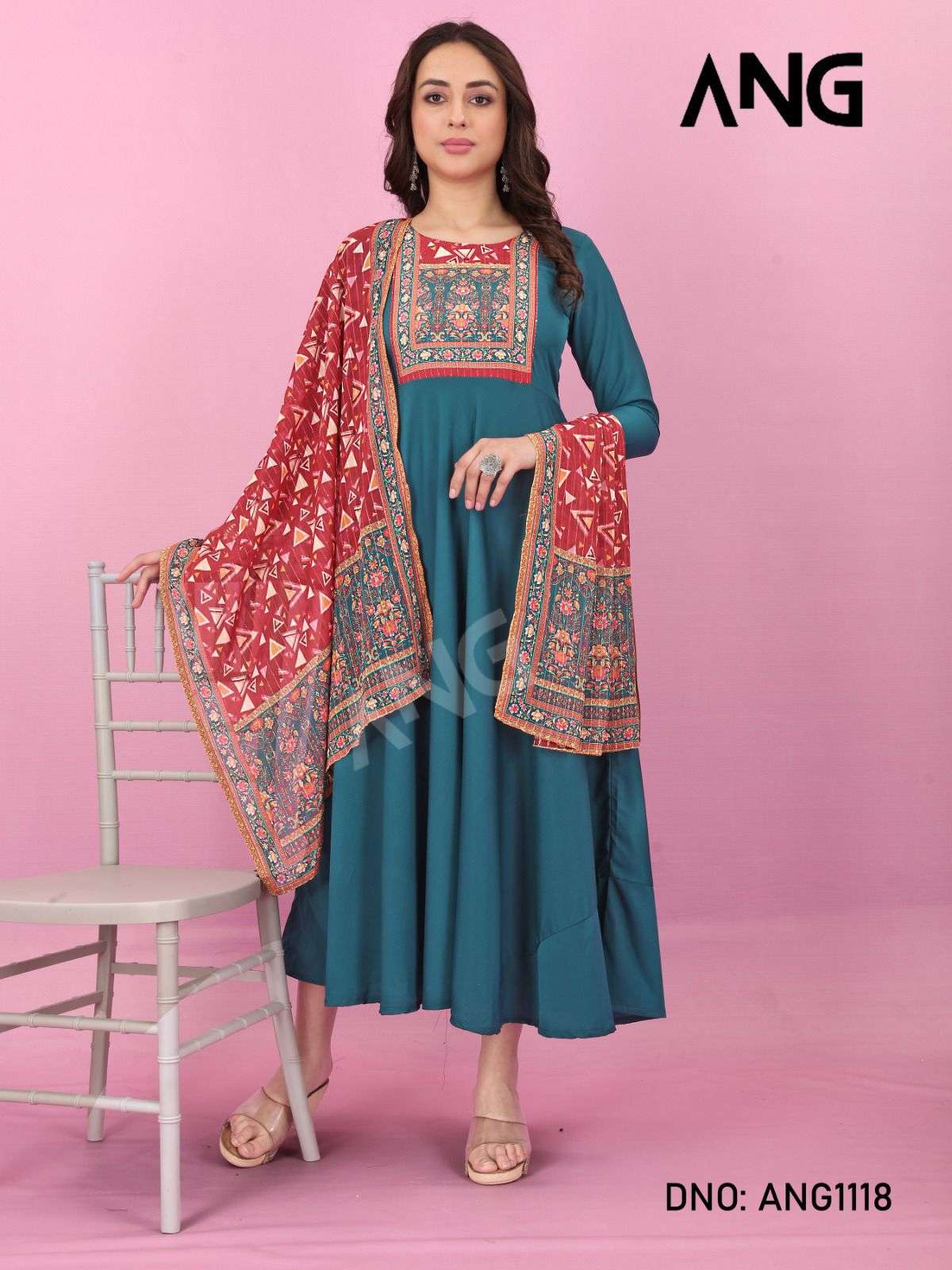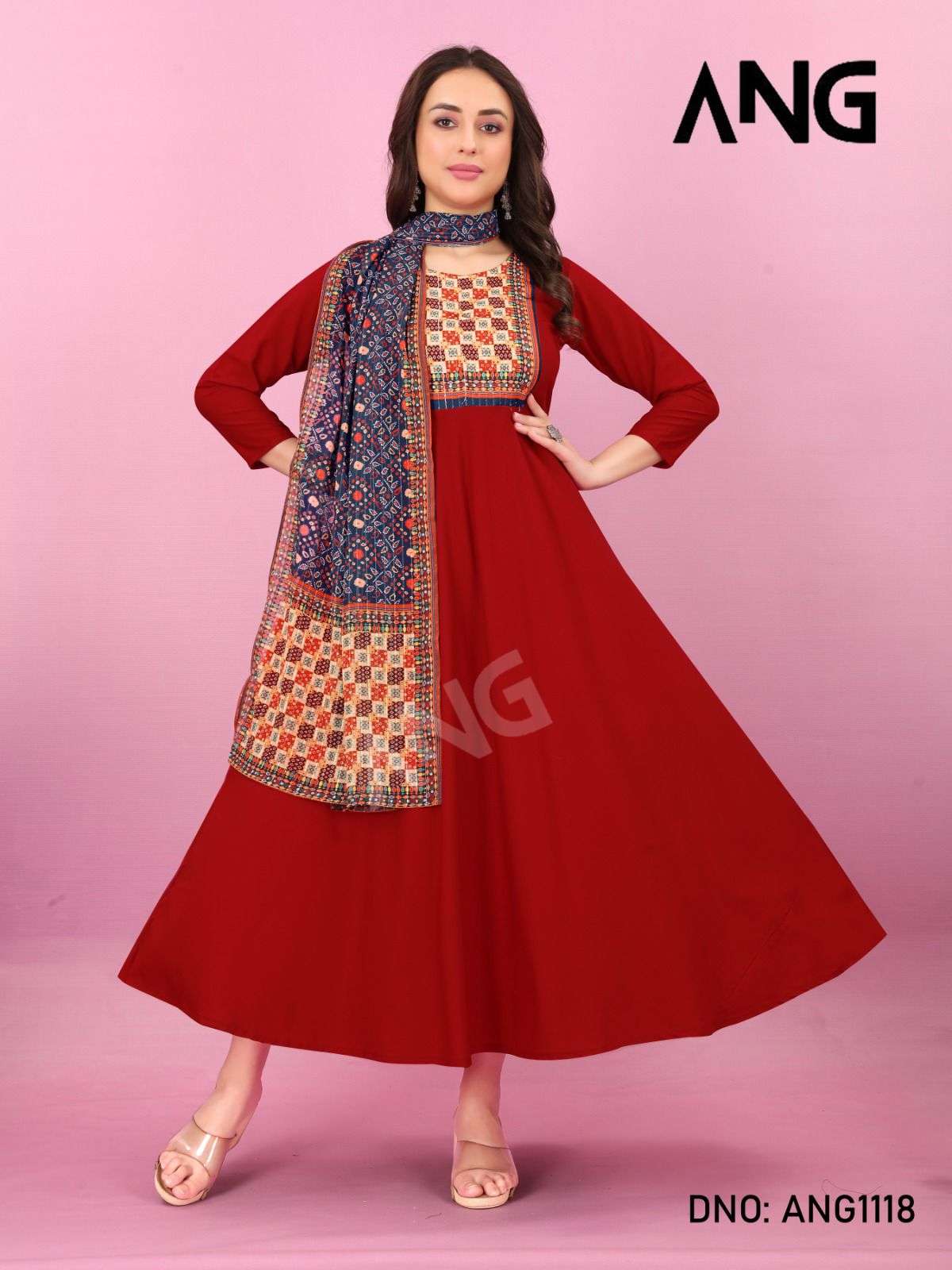 ang 1118 fancy american malai crape full stitch long gown with digital printed dupatta