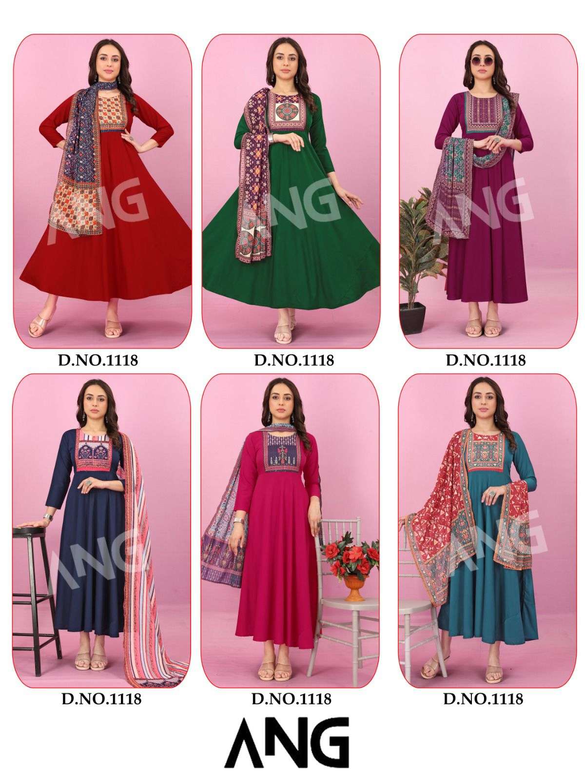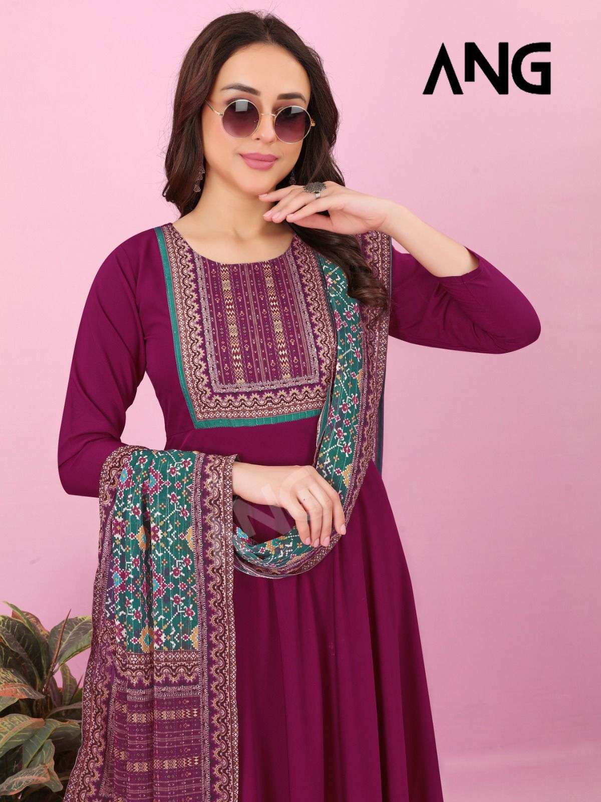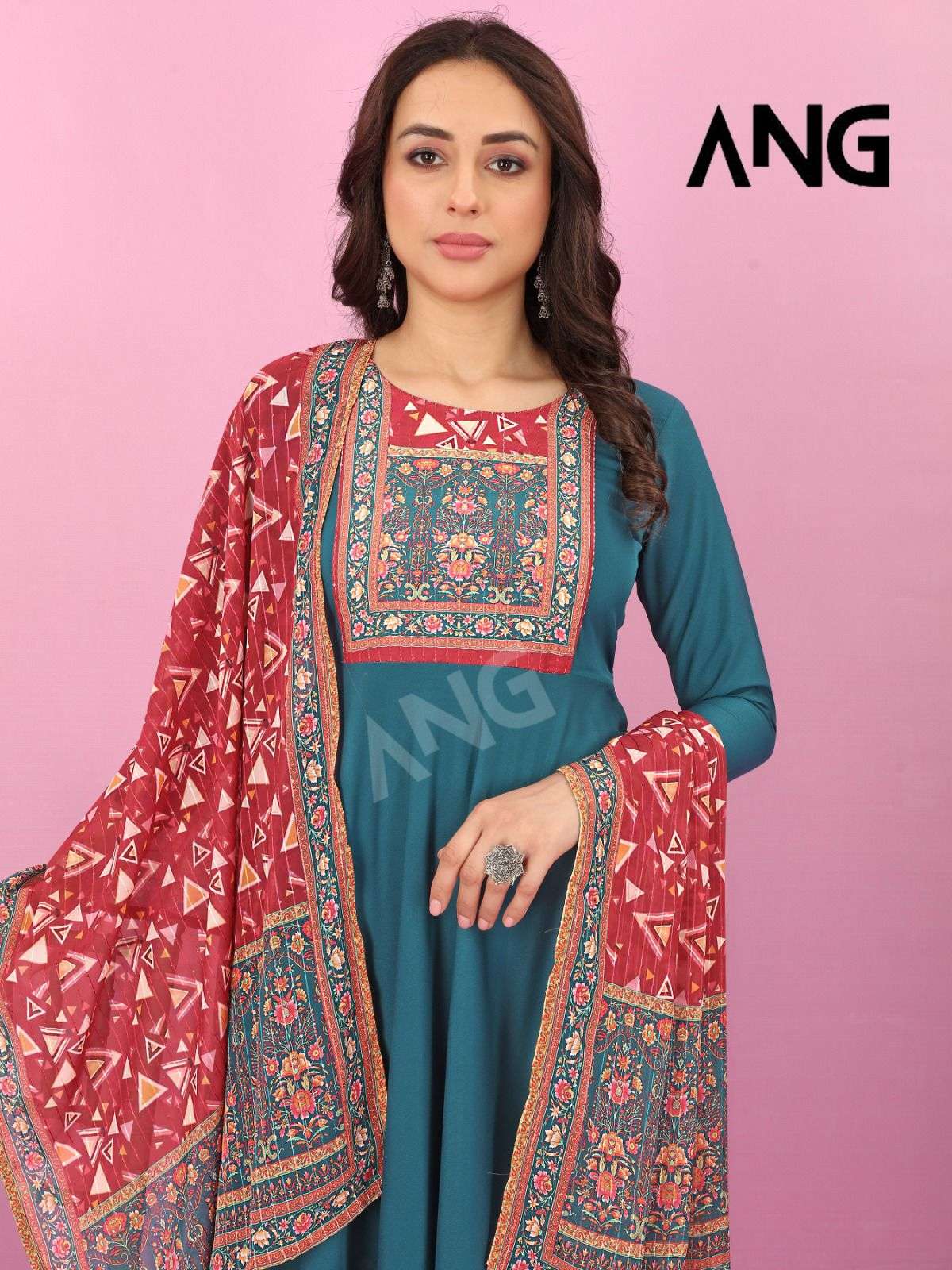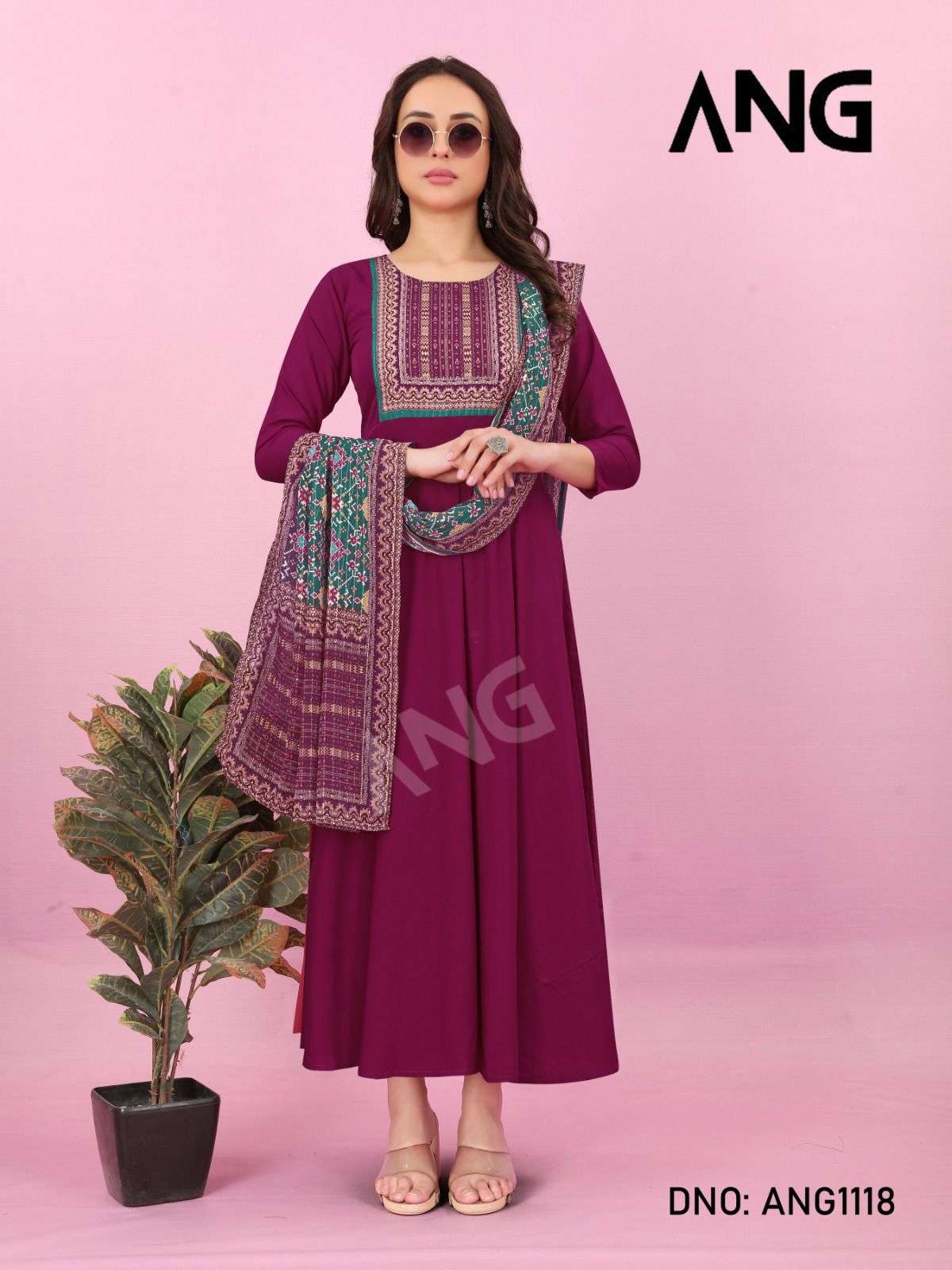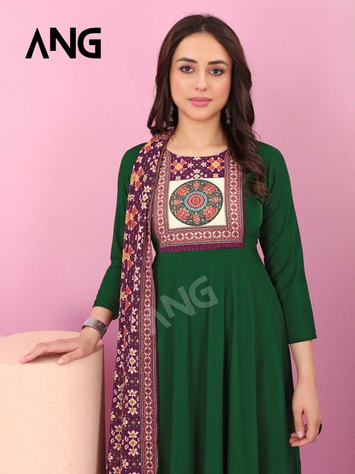 ang 1118 fancy american malai crape full stitch long gown with digital printed dupatta