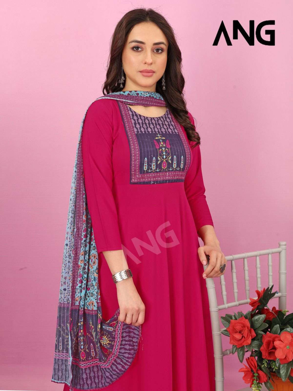 Gown- Dupatta - set Brand:-ANG Catalog:-1118 Design : 6 piece set Fabric :- American malai carpe Dupatta:- Georgette corrosect work with Digital print Length:- 52 ins Round:- 3.5 mtr Size : - S. M. L. Xl. XXL. 3XL. Rate: 615/- |