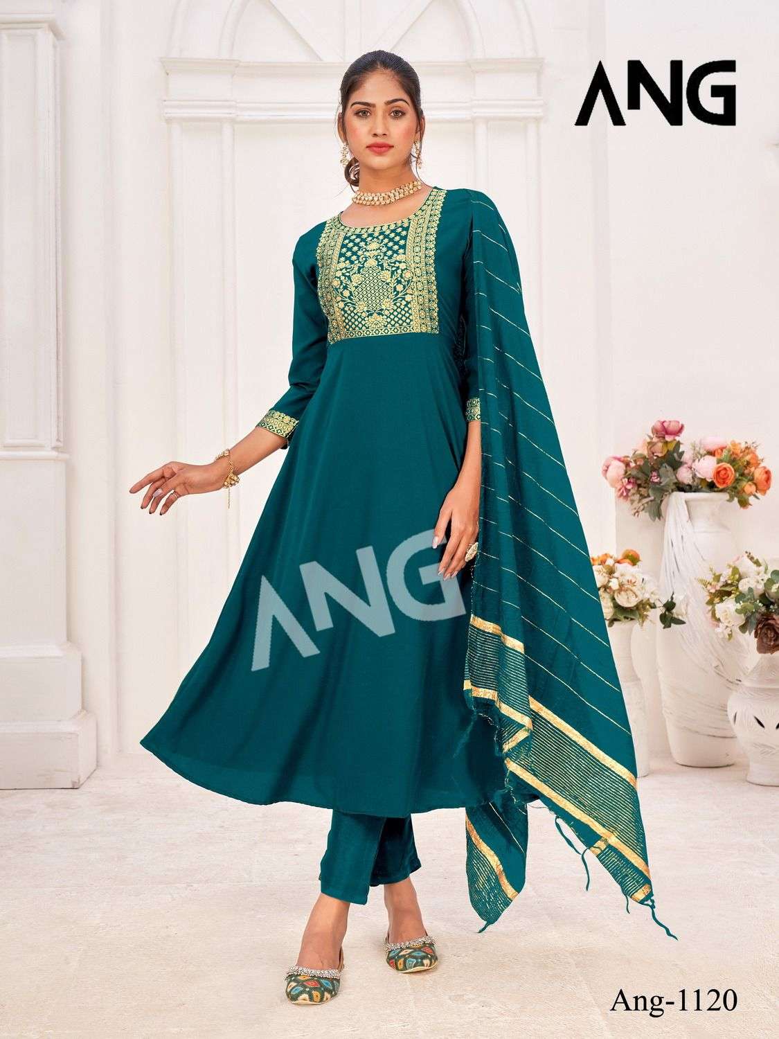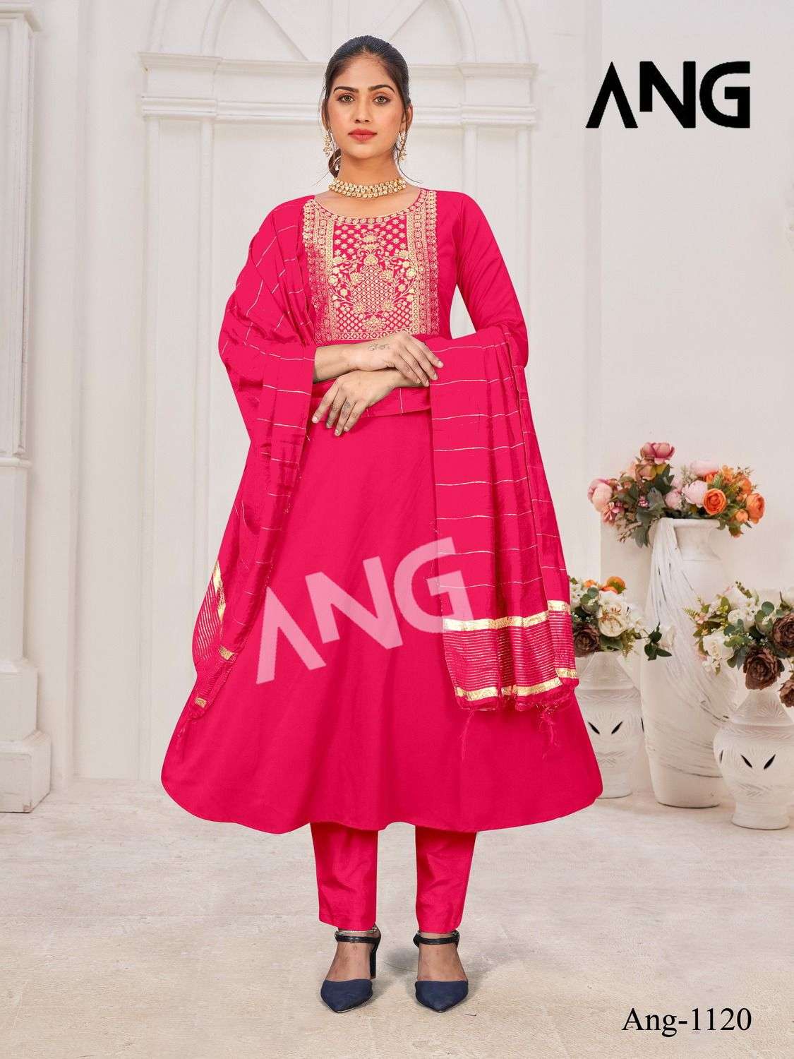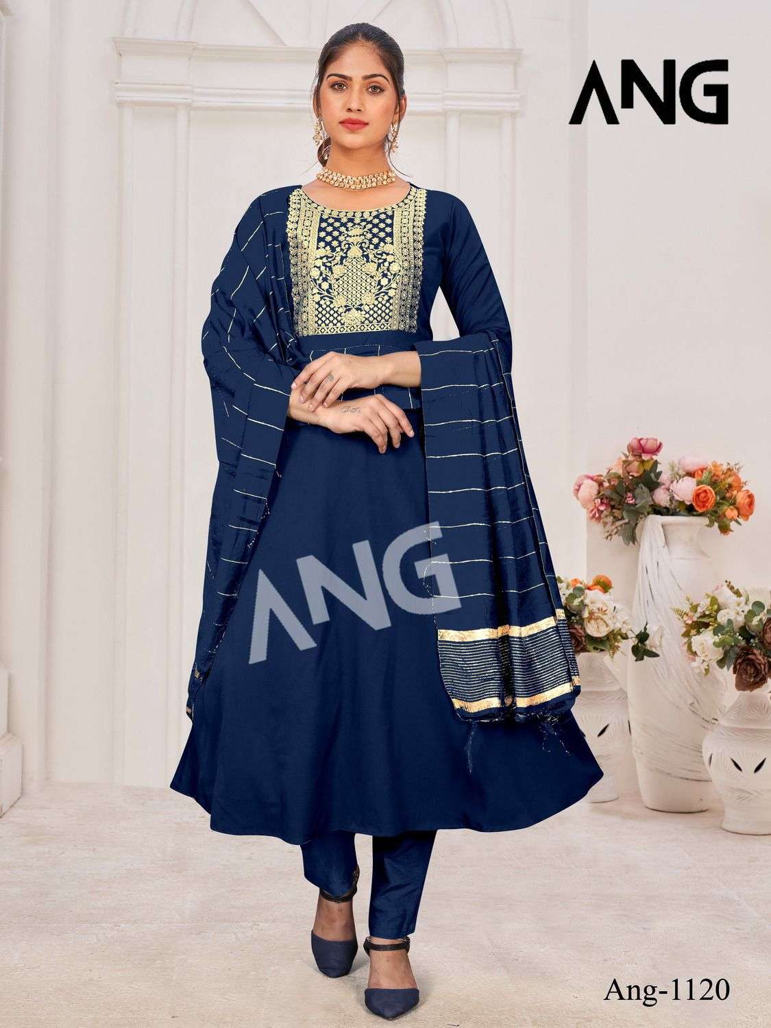 Brand Name : ANG Catalog:ANG-1120 Design : 5 piece set Top : Malai crape with jecard neck Dupatta:- Pure viscos jari Pant: Malai carepe Size : M. L. Xl. XXL. Rate: 715/- 3 piece Rate :- 555/- 2 piece |