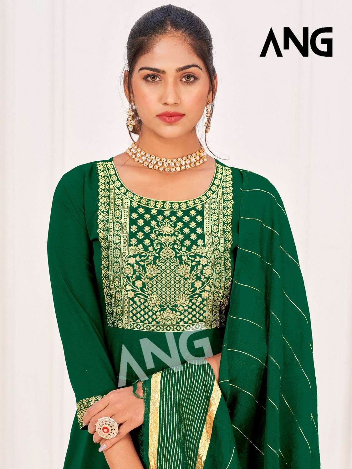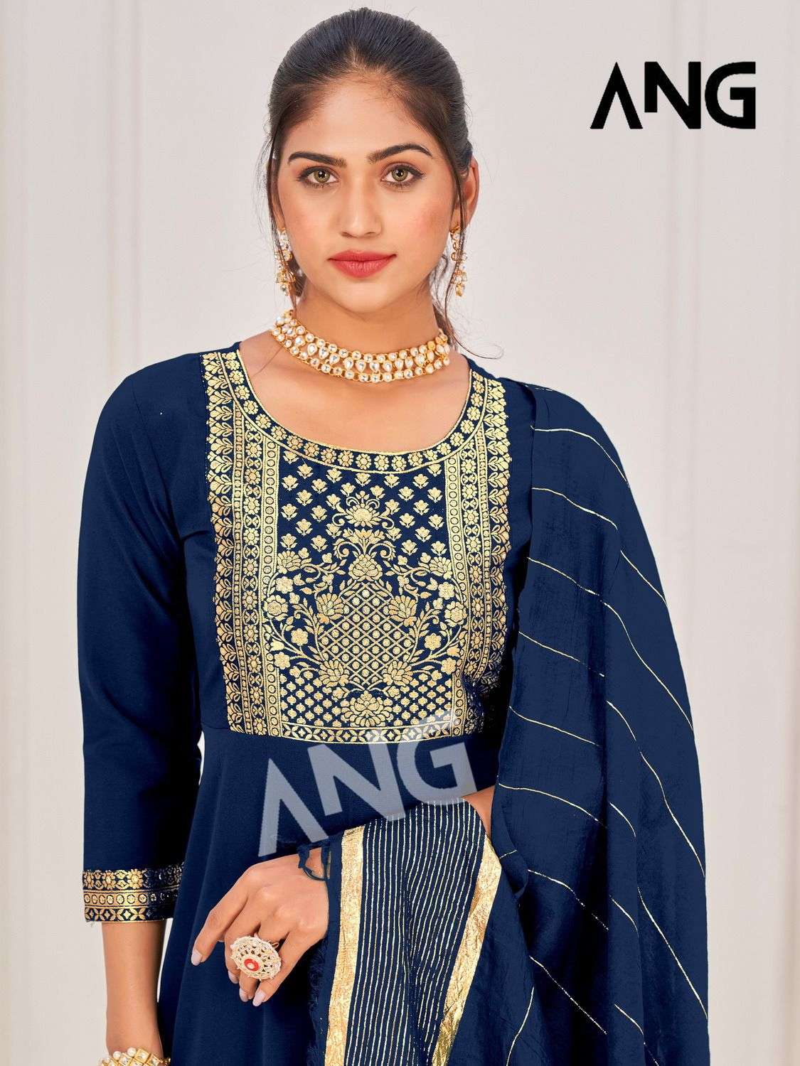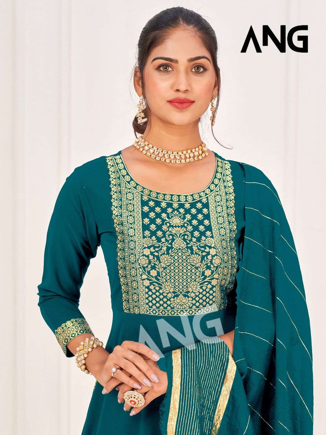 Brand Name : ANG Catalog:ANG-1120 Design : 5 piece set Top : Malai crape with jecard neck Dupatta:- Pure viscos jari Pant: Malai carepe Size : M. L. Xl. XXL. Rate: 715/- 3 piece Rate :- 555/- 2 piece |