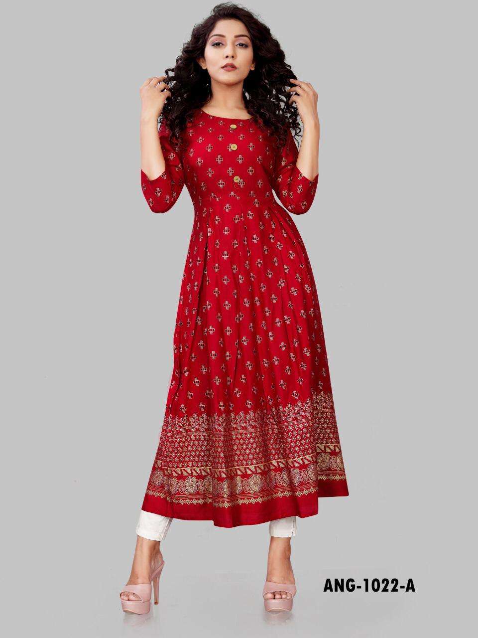 Ang1022 By 12 Angel Rayon Gold Printed Casual Gowns