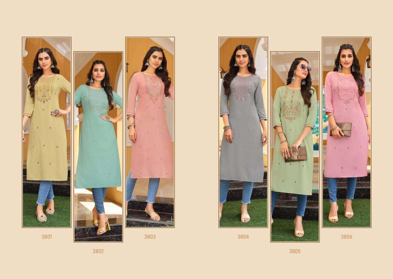 Rangoon ( Kessi Group ) hitting market with exclusively trending series of Catalogs 👗 Top:- Airjet Rayon With Fancy Embrodery Work Kurti 🔺Length:- 46'' 👜No. of Design:- 6 🔻Price : 💸 425/- + *GST 📏Size: M, L, XL, XXL, 3XL |