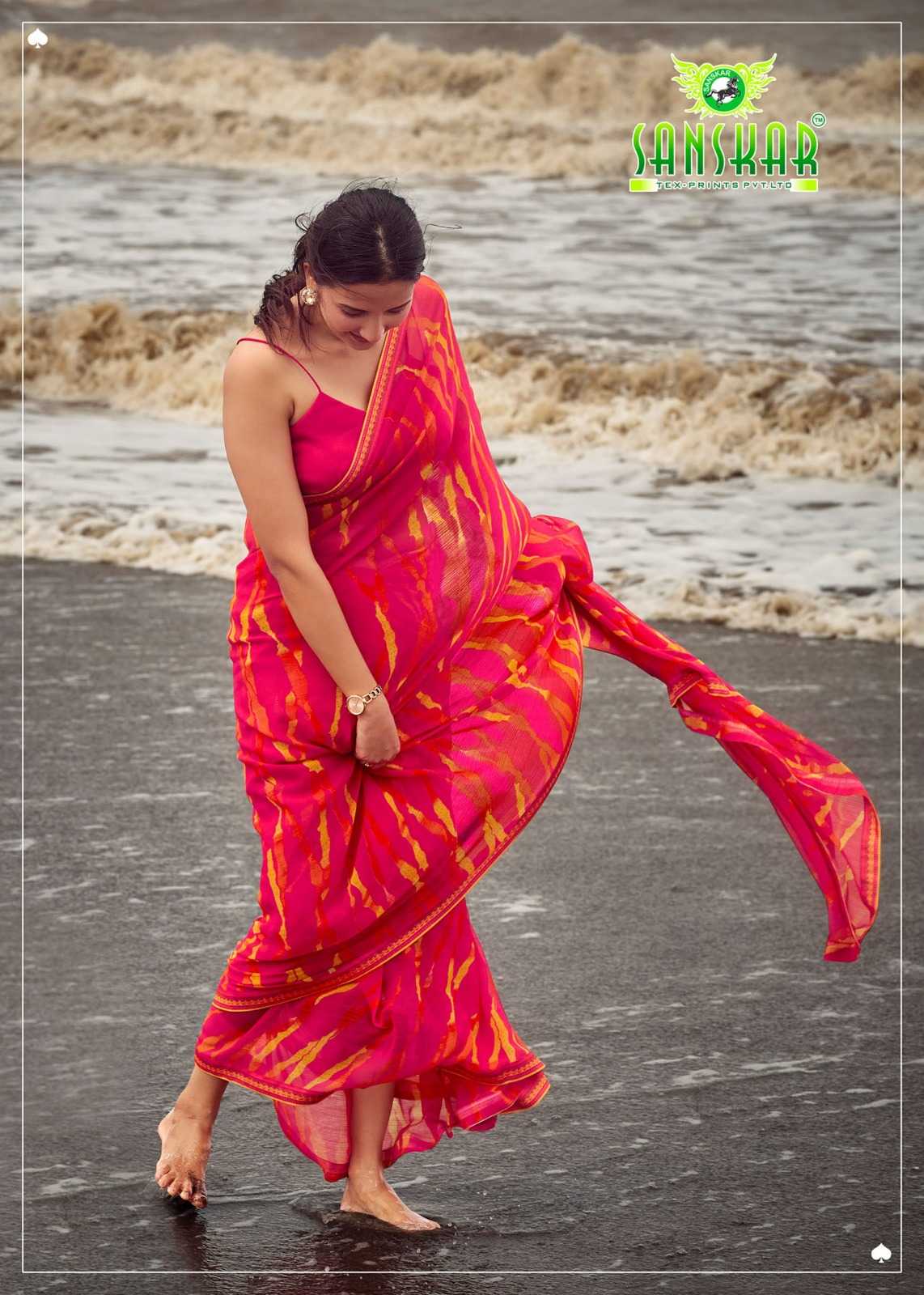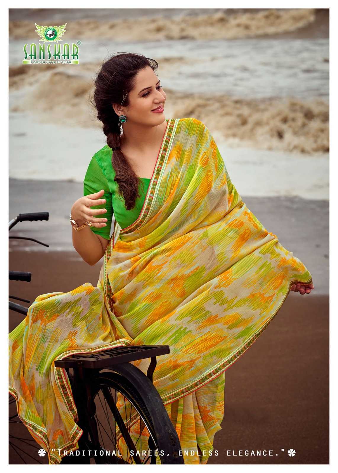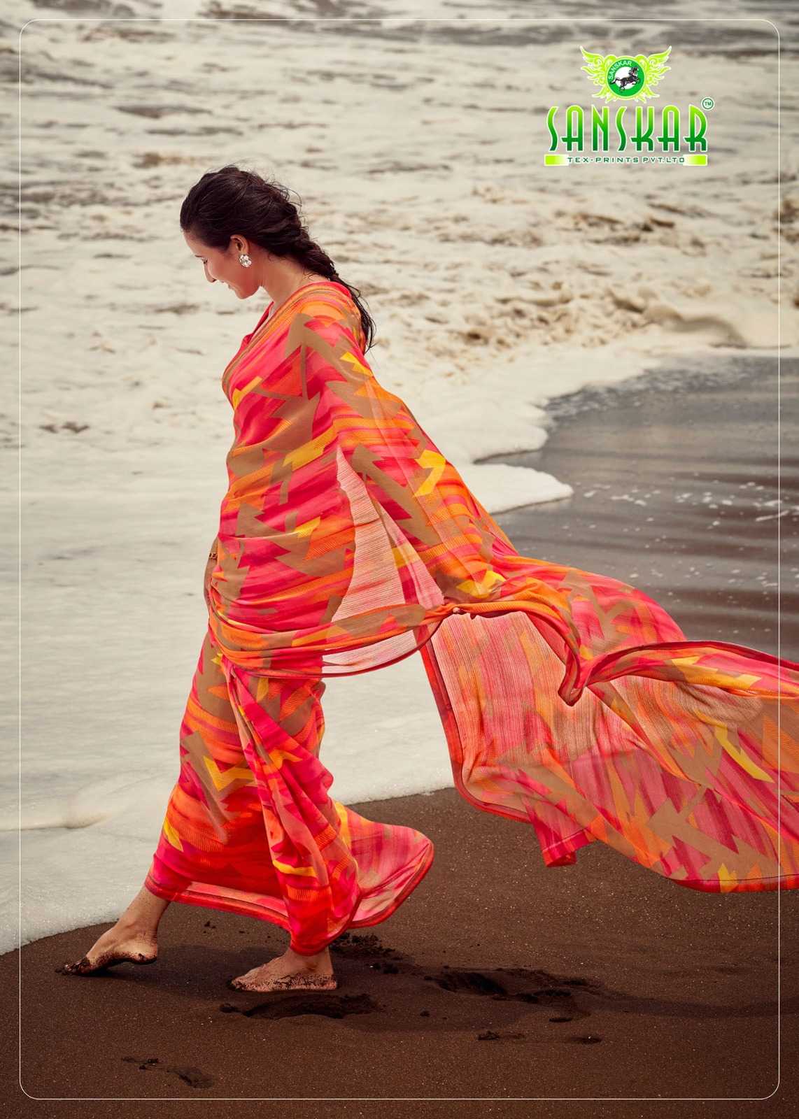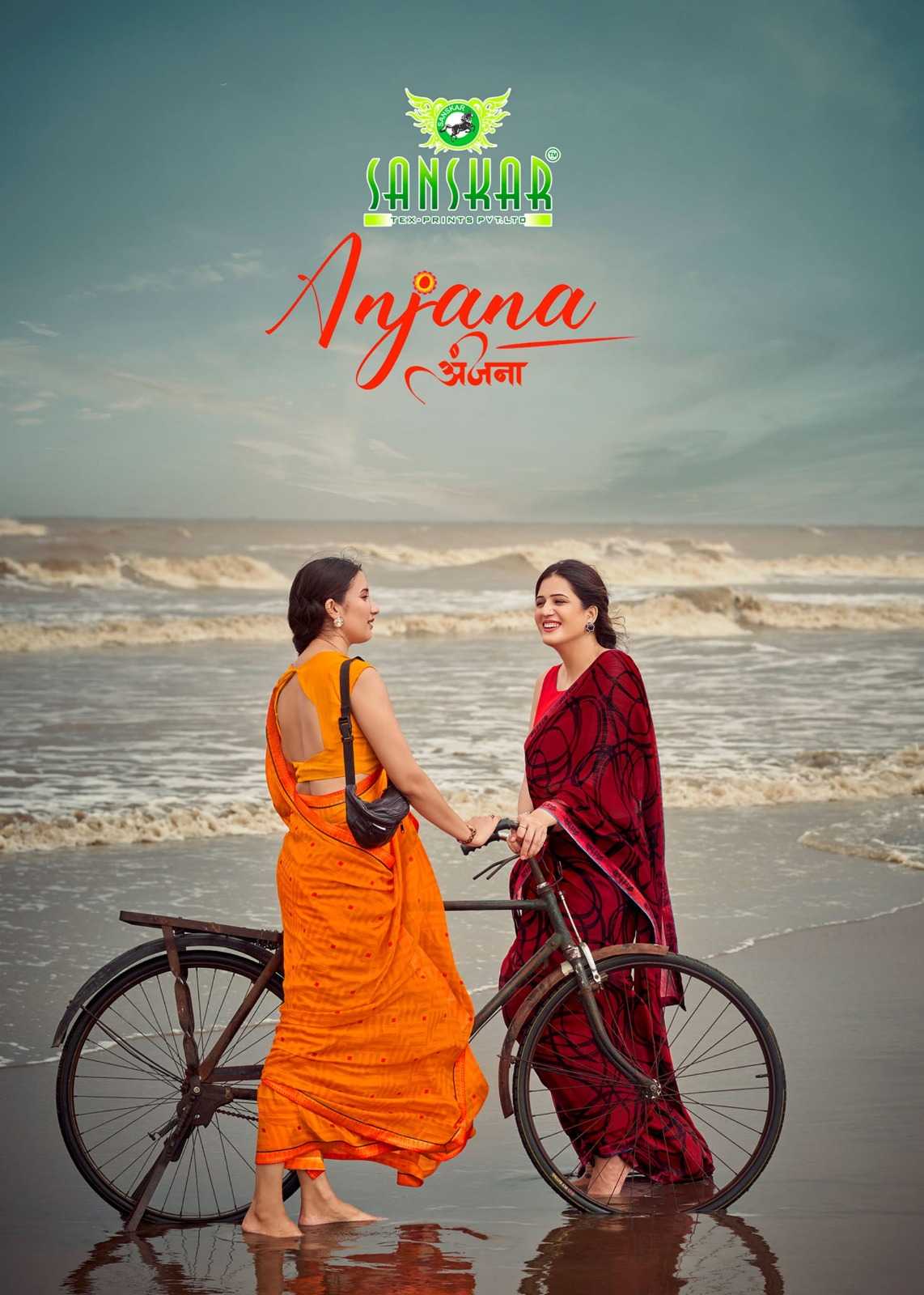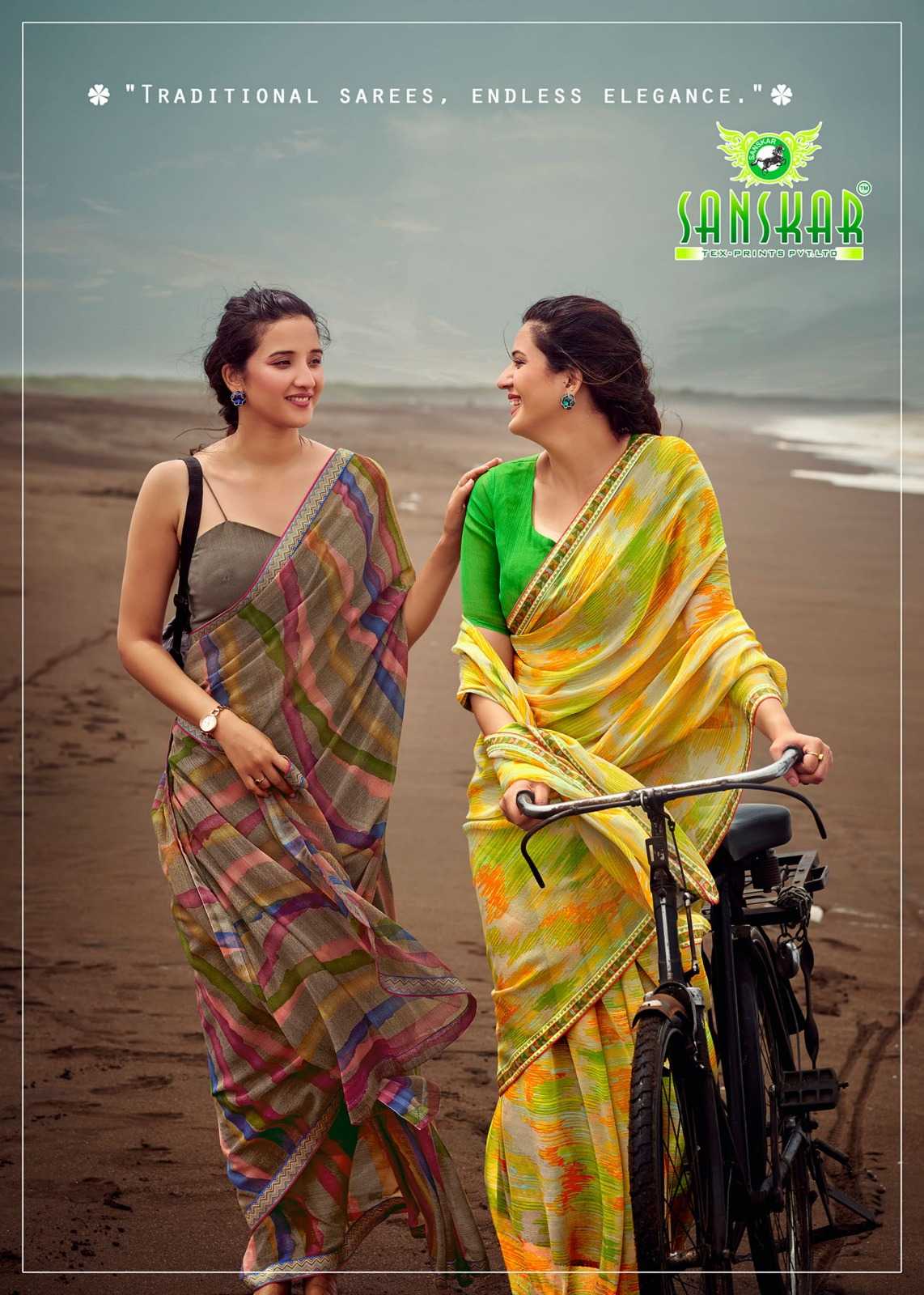 anjana by sanskar tex prints bember pattern georgette fancy saree supplier