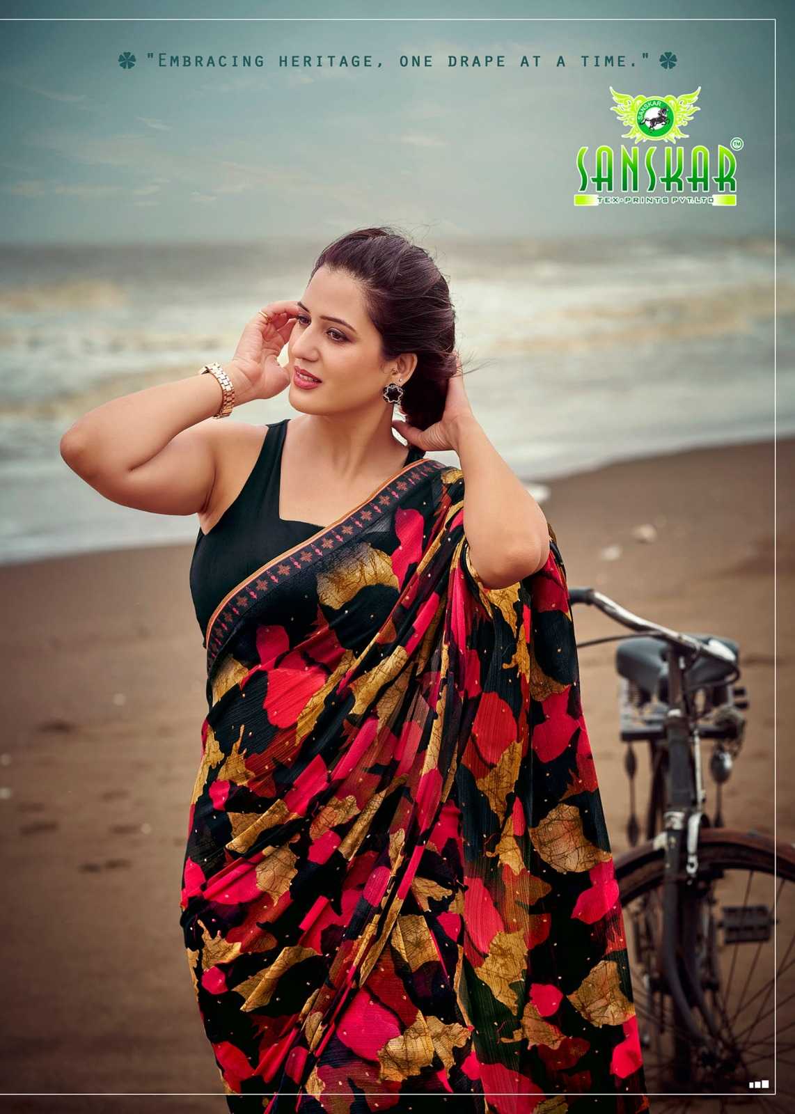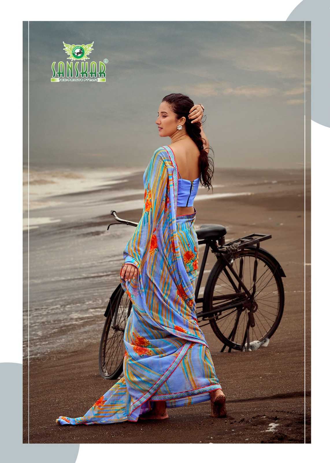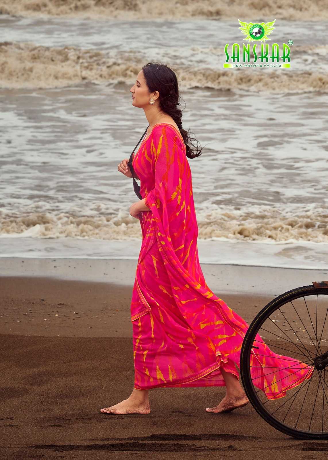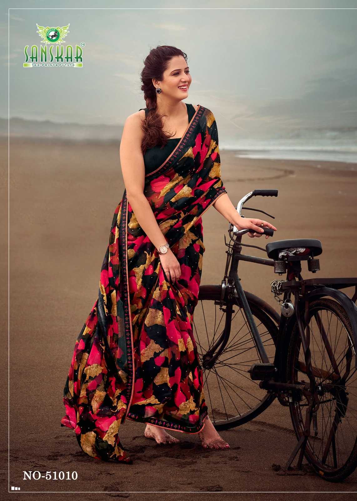 anjana by sanskar tex prints bember pattern georgette fancy saree supplier