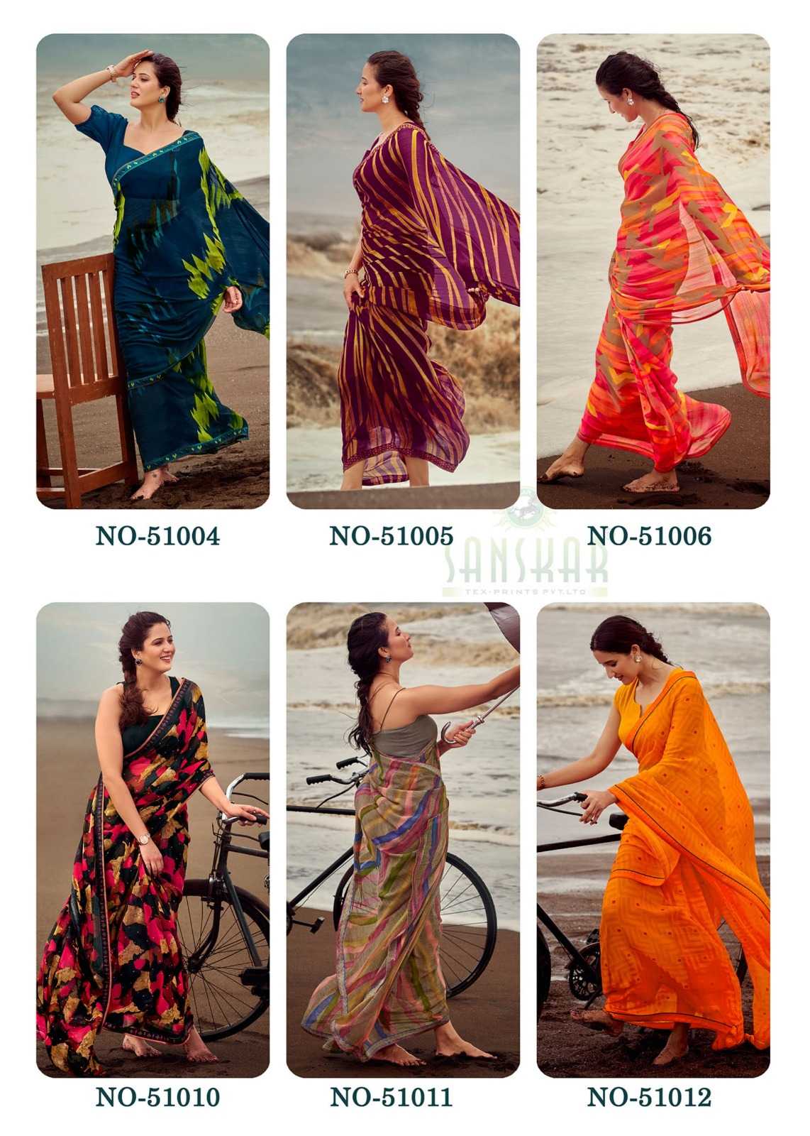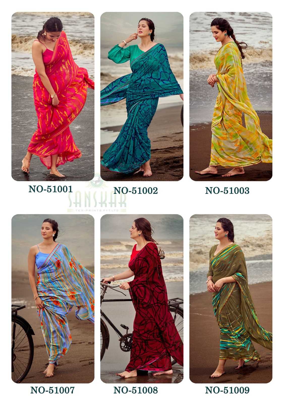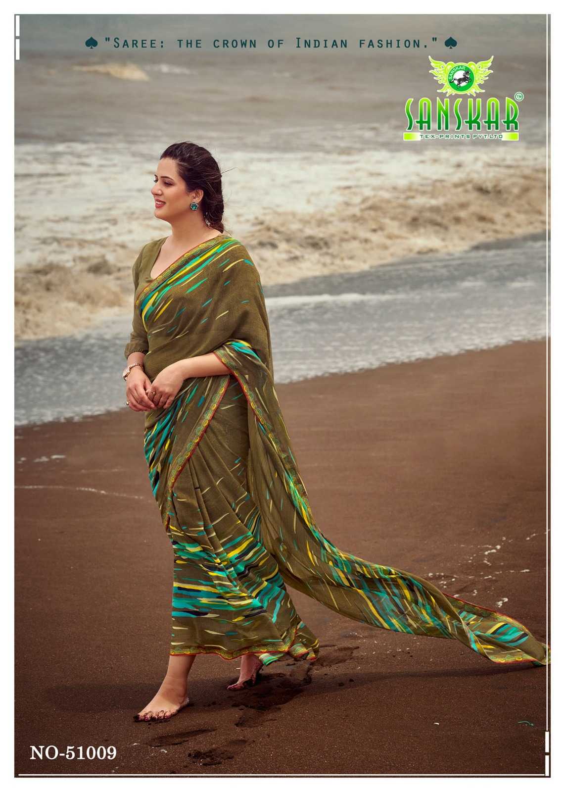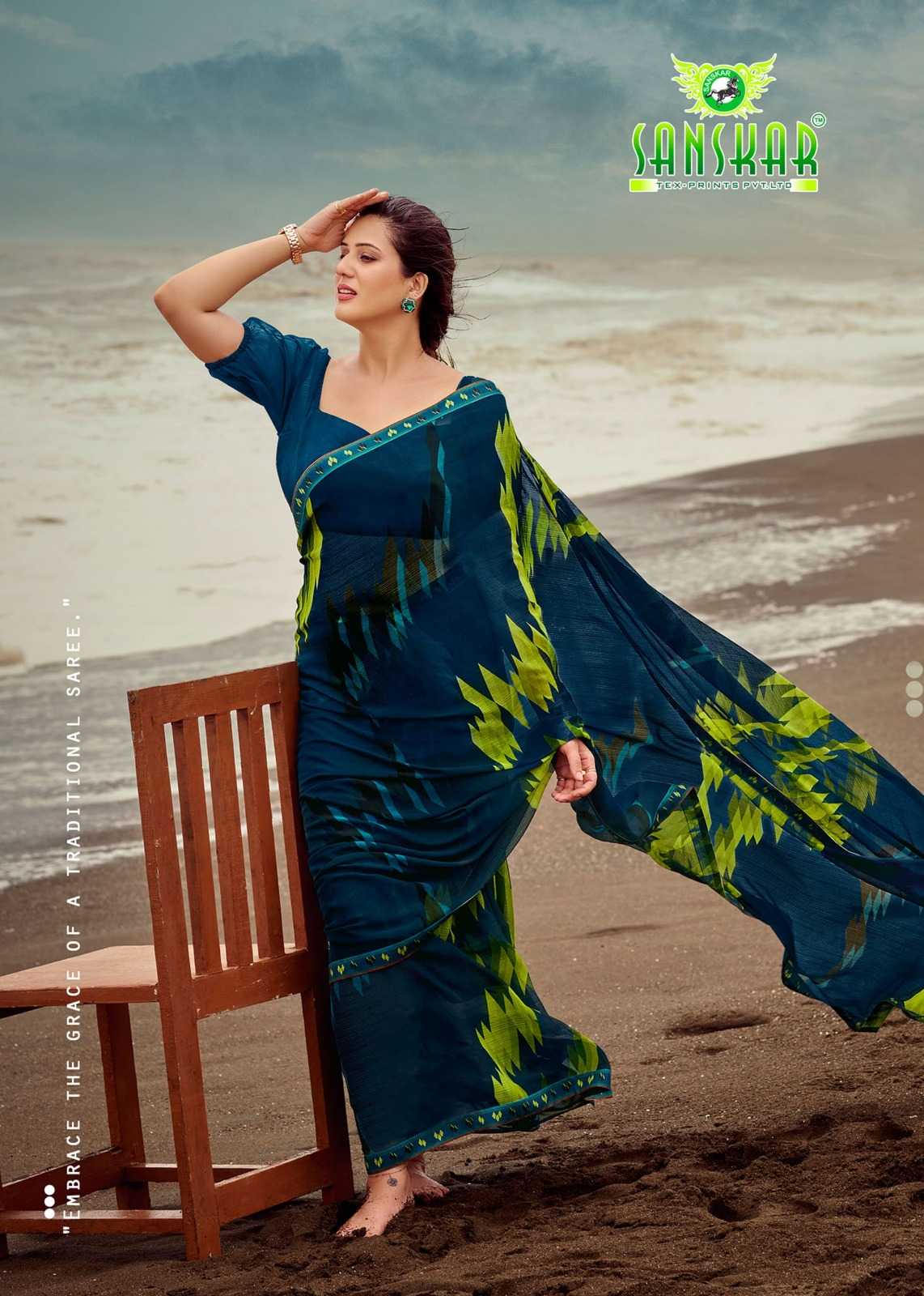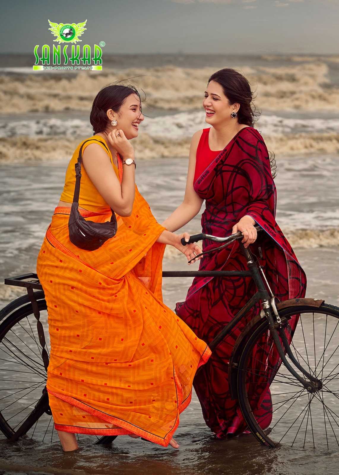anjana by sanskar tex prints bember pattern georgette fancy saree supplier