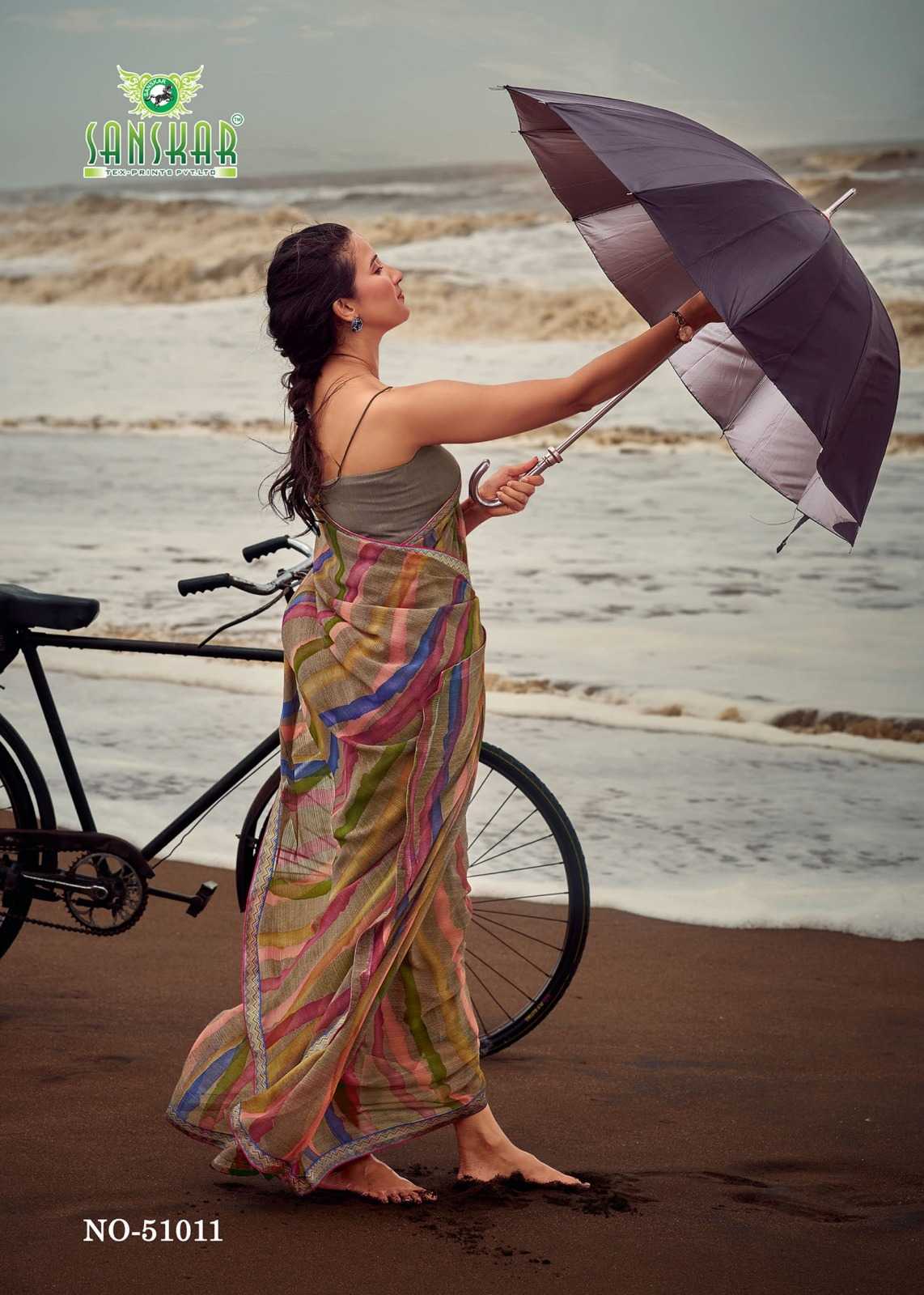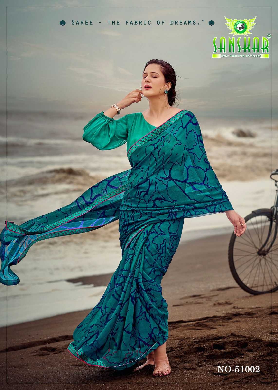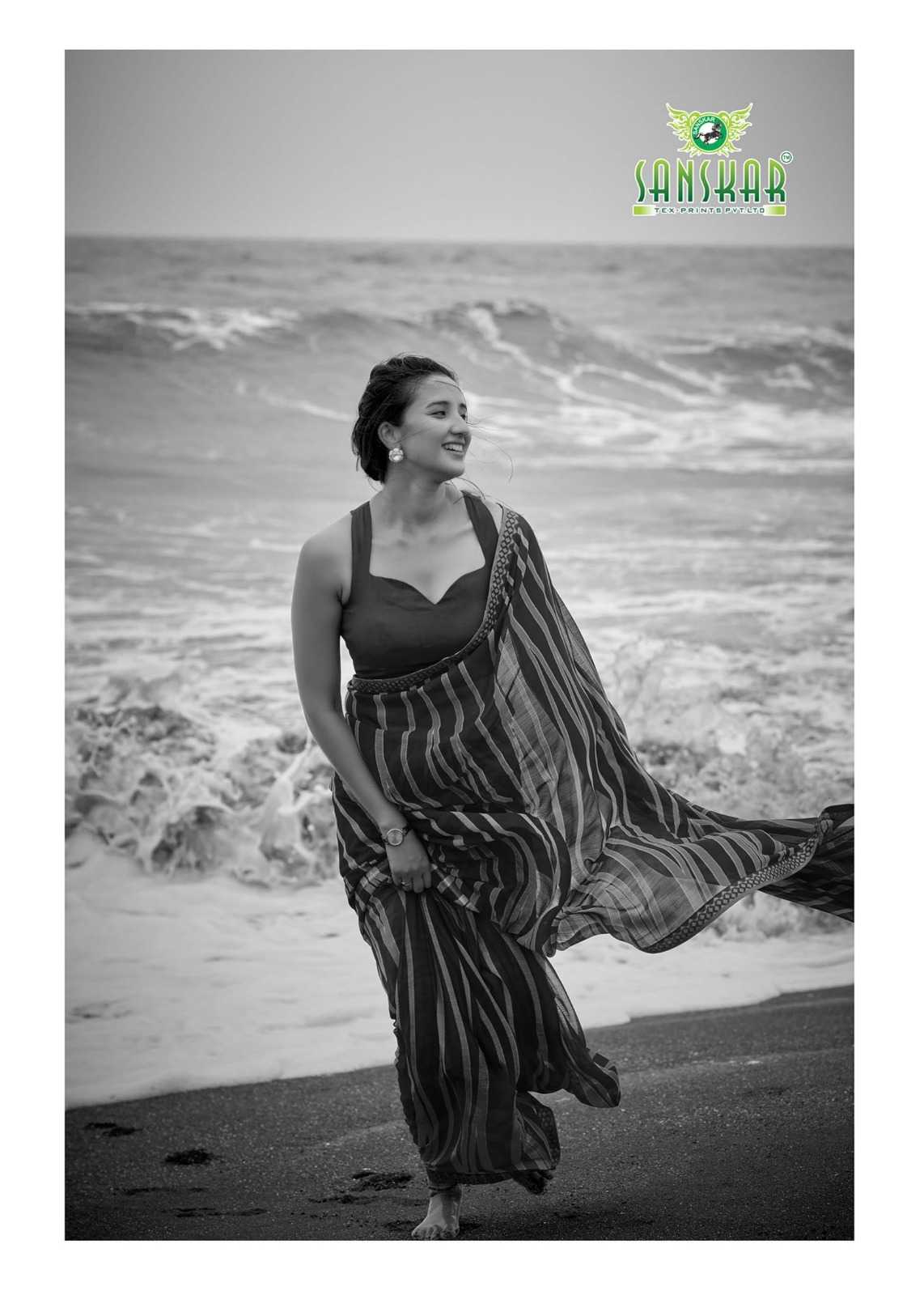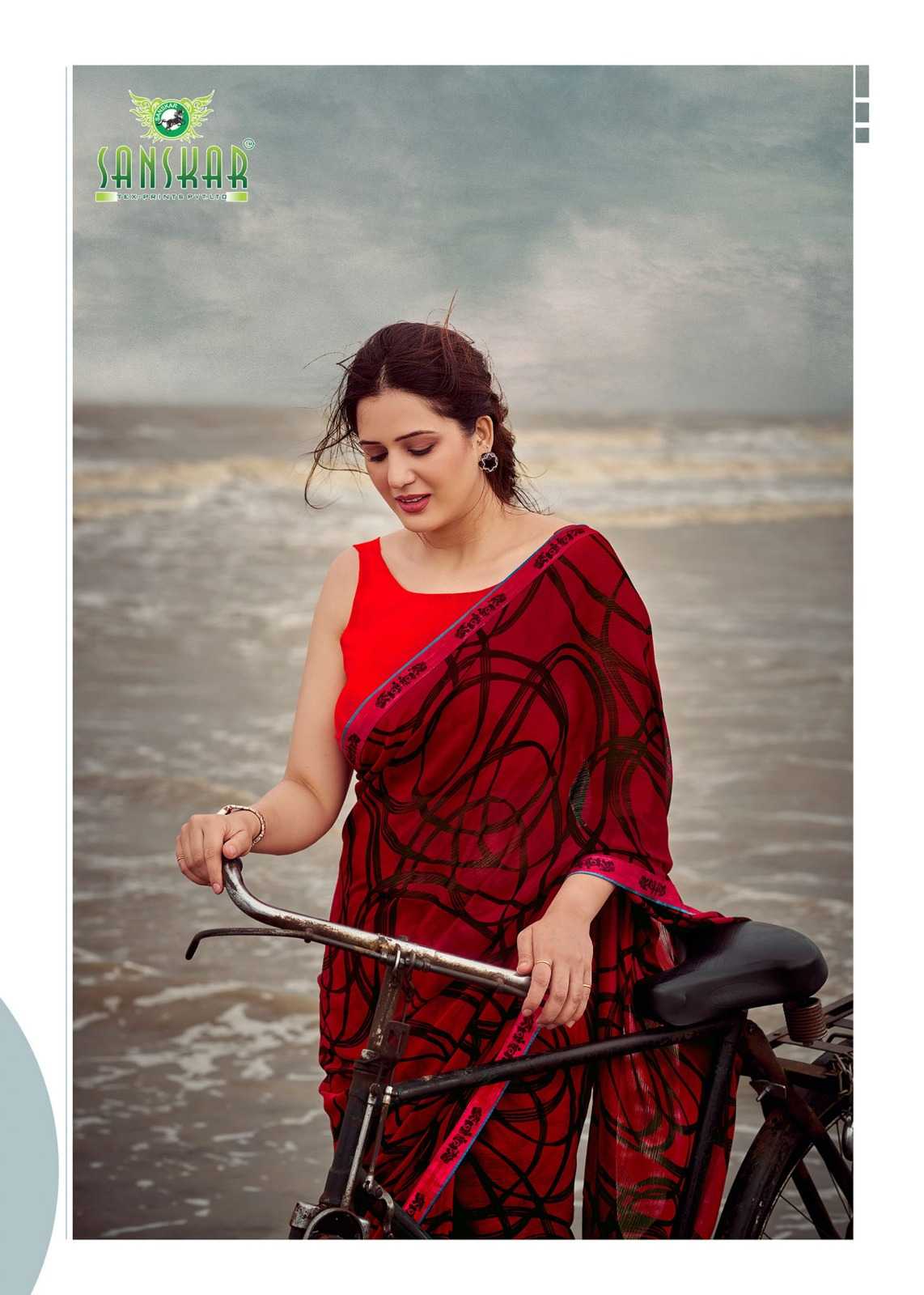 anjana by sanskar tex prints bember pattern georgette fancy saree supplier