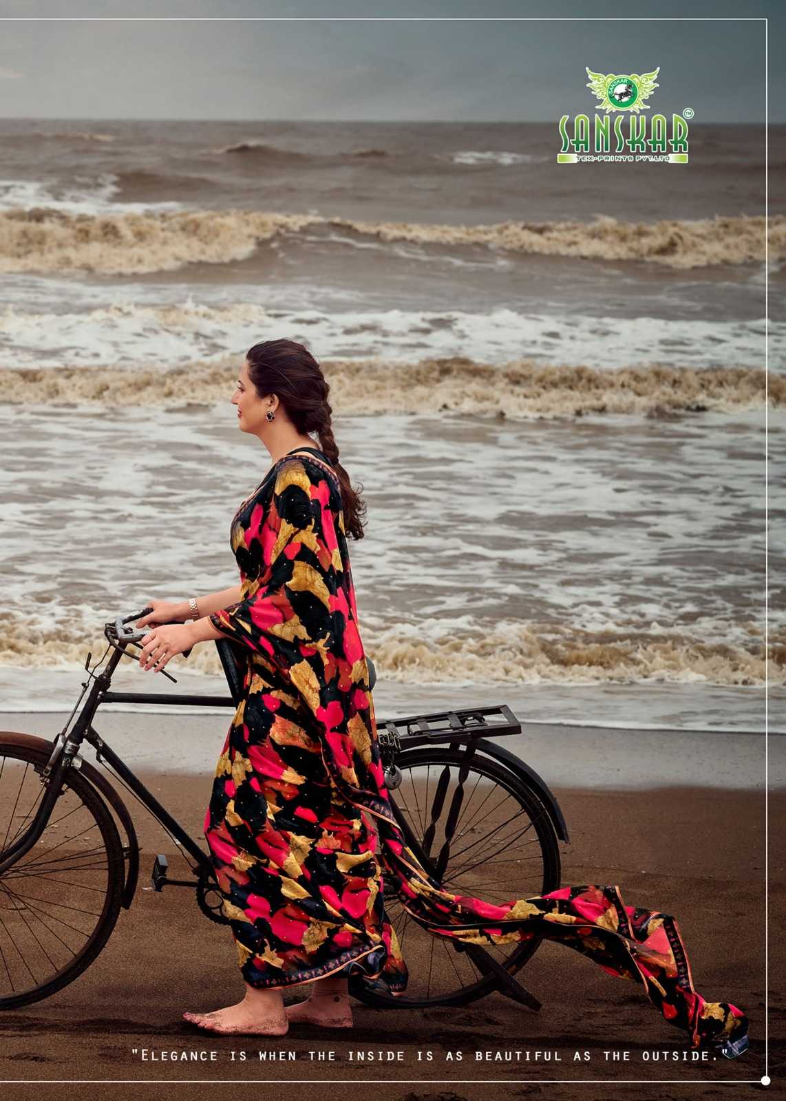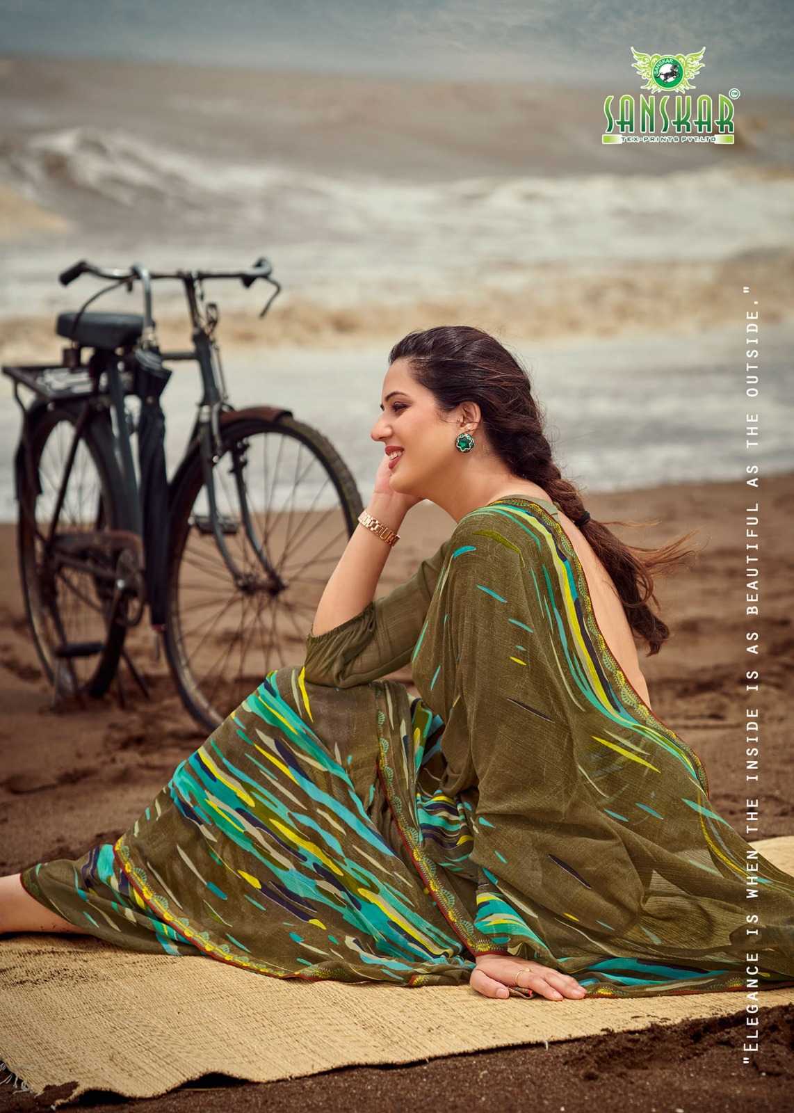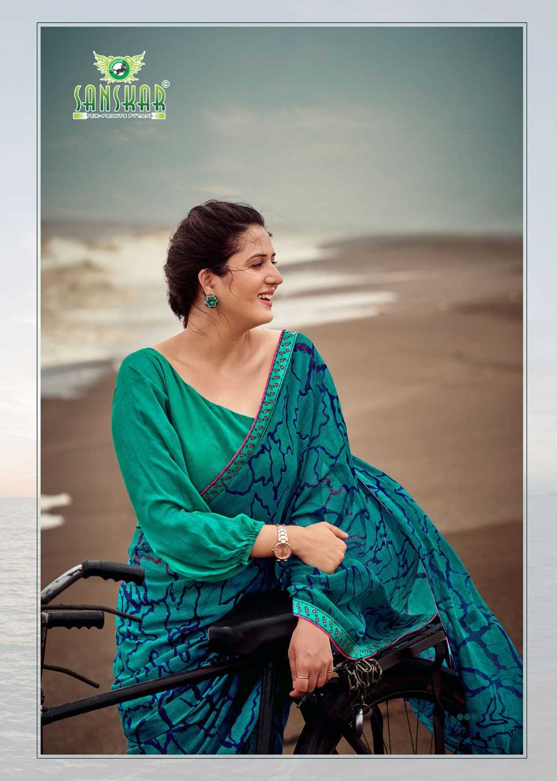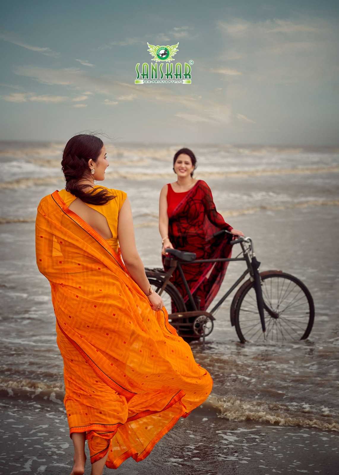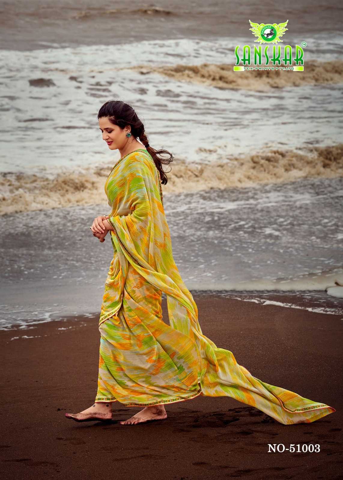 anjana by sanskar tex prints bember pattern georgette fancy saree supplier