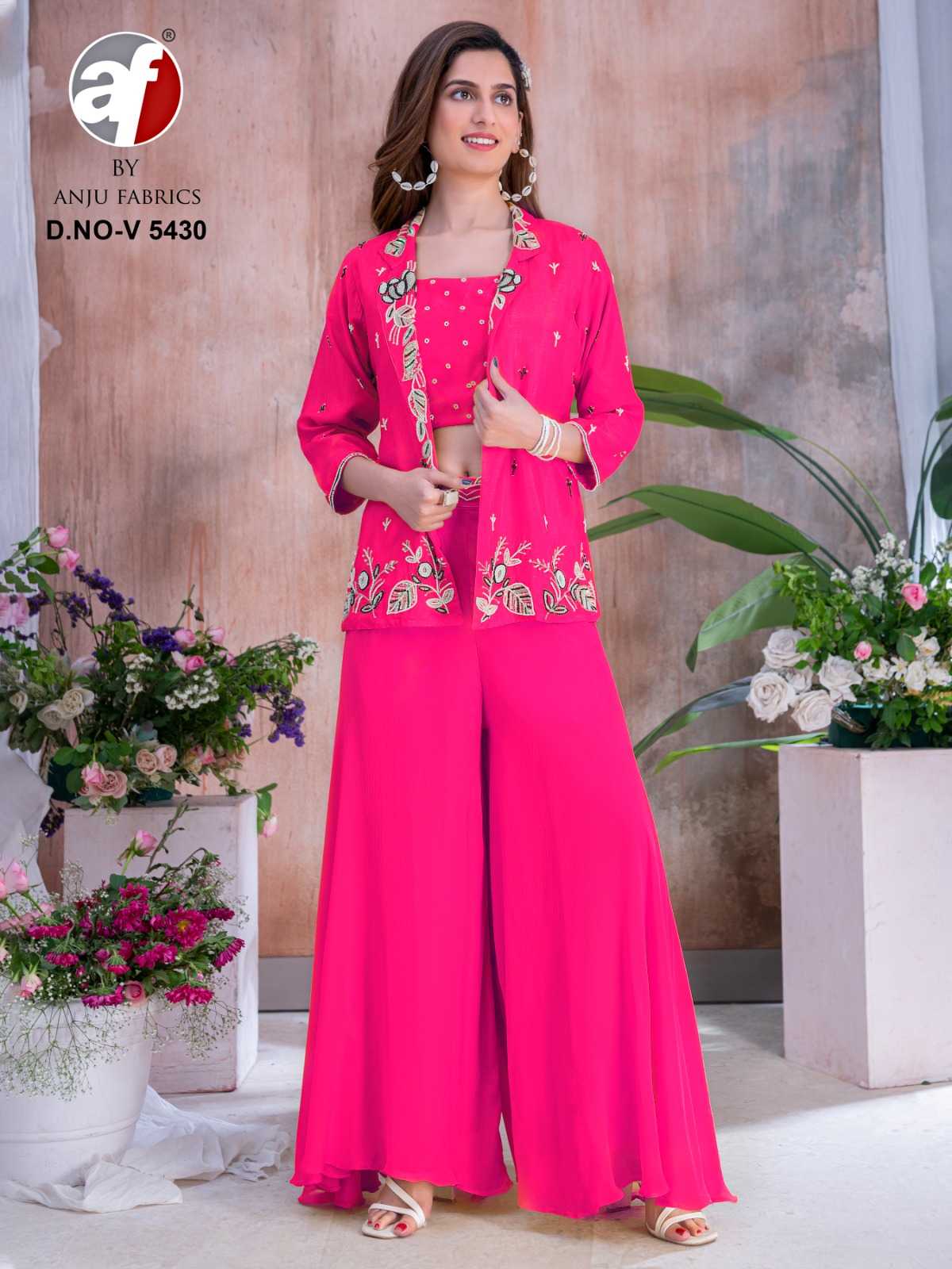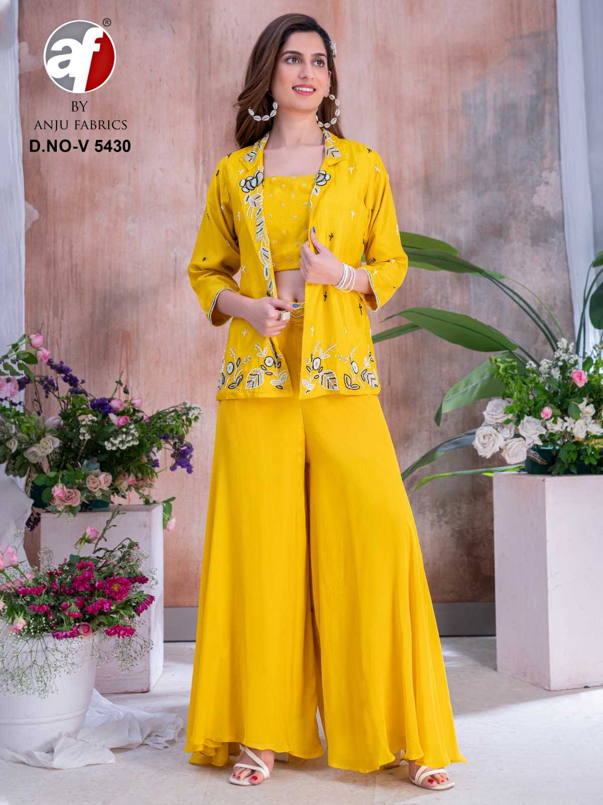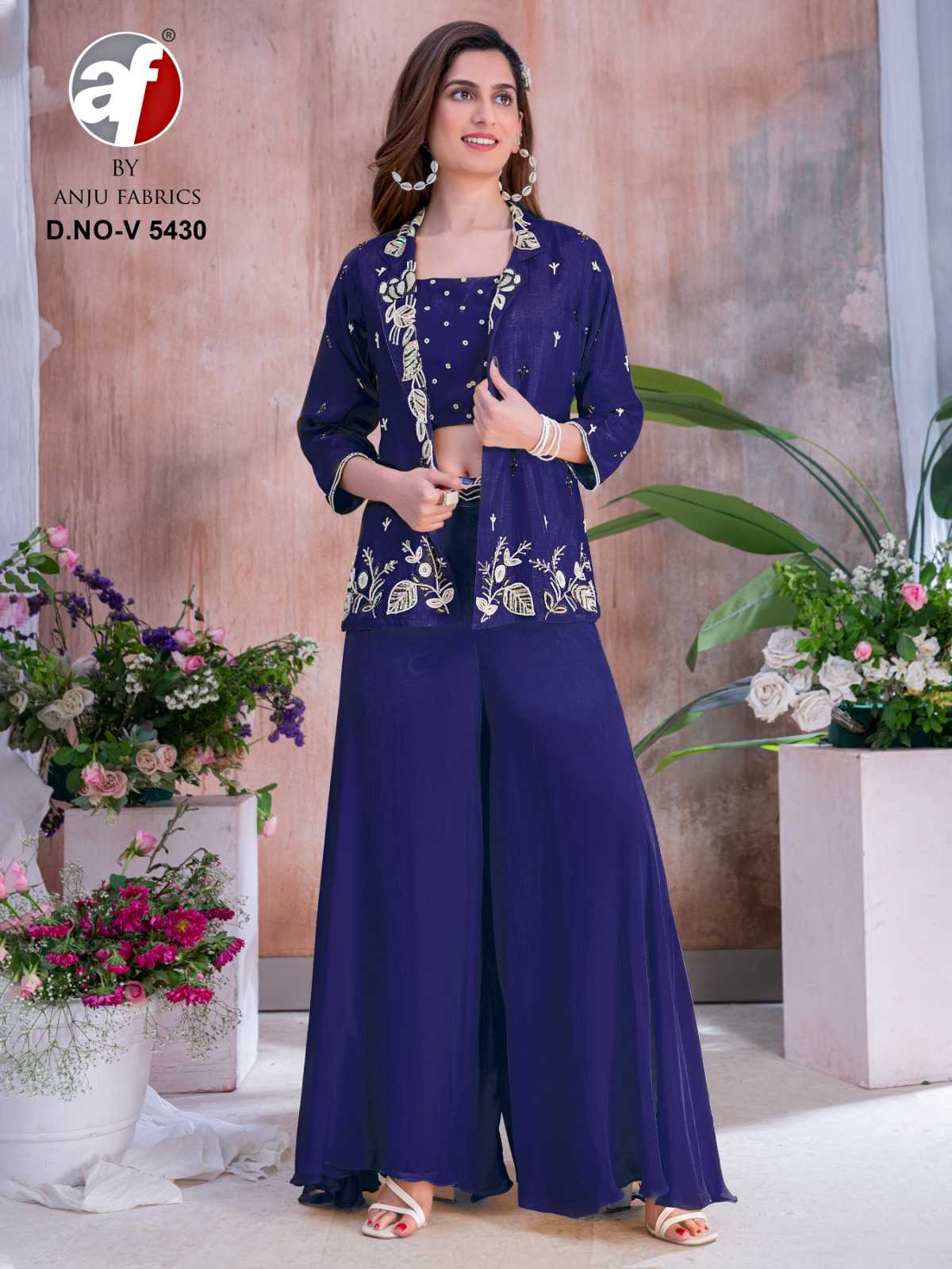 anju fab 5430 designer readymade flair plazo top with jacket combo set