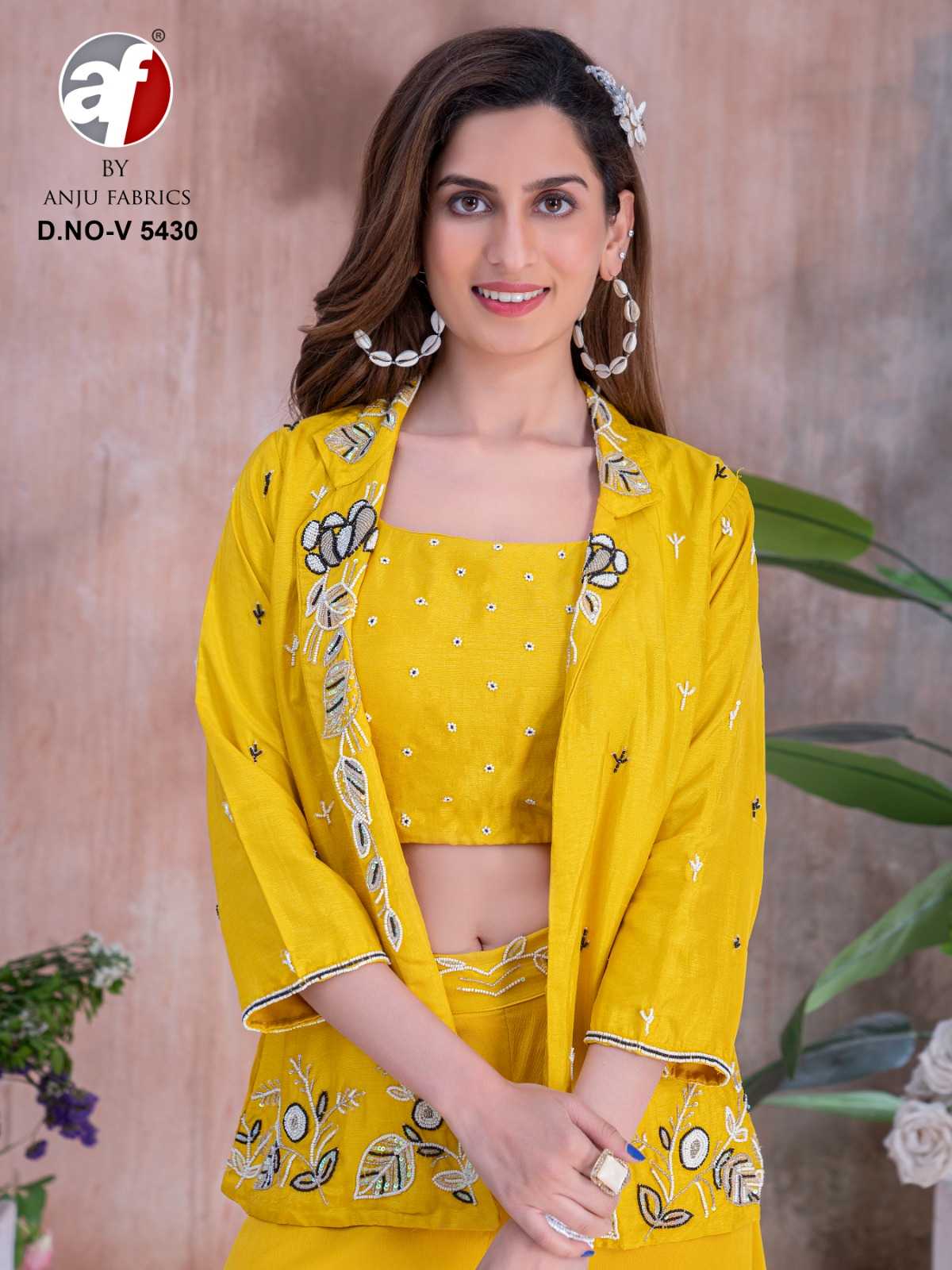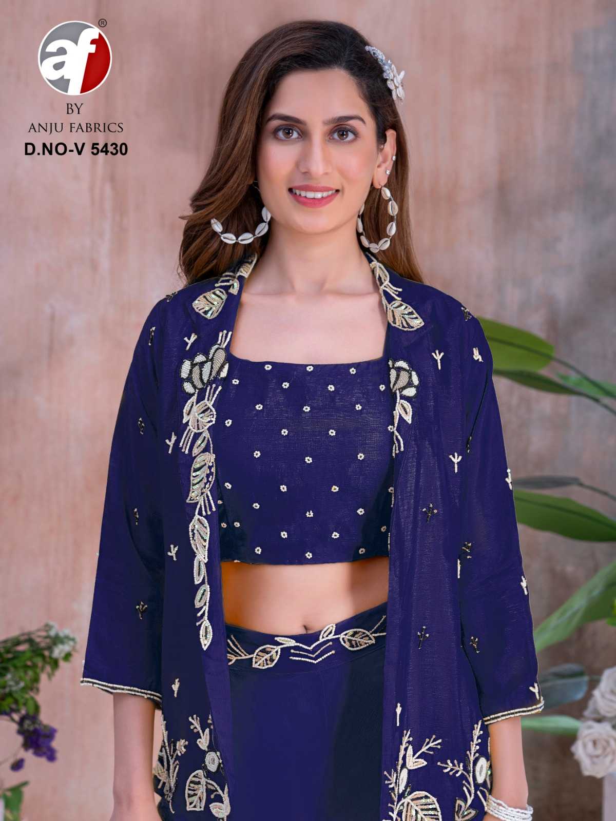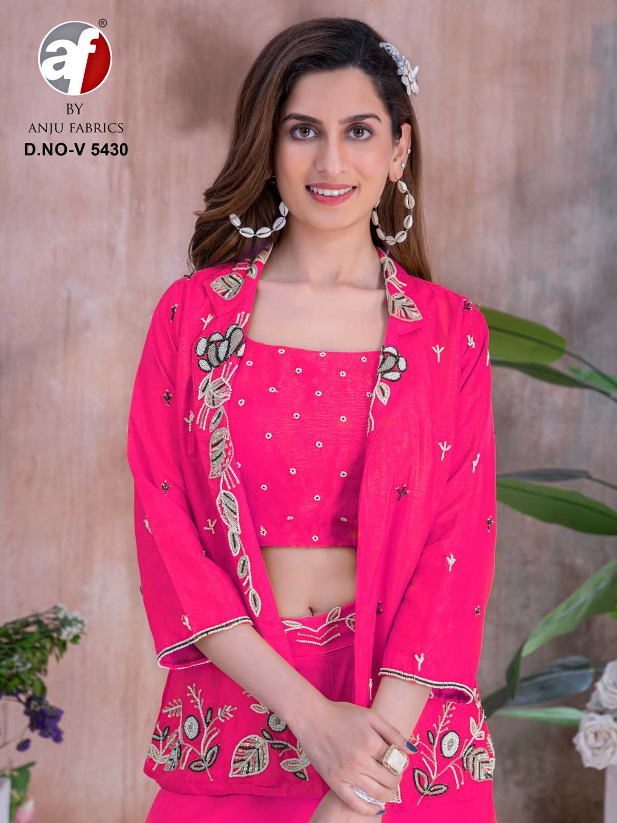 anju fab 5430 designer readymade flair plazo top with jacket combo set