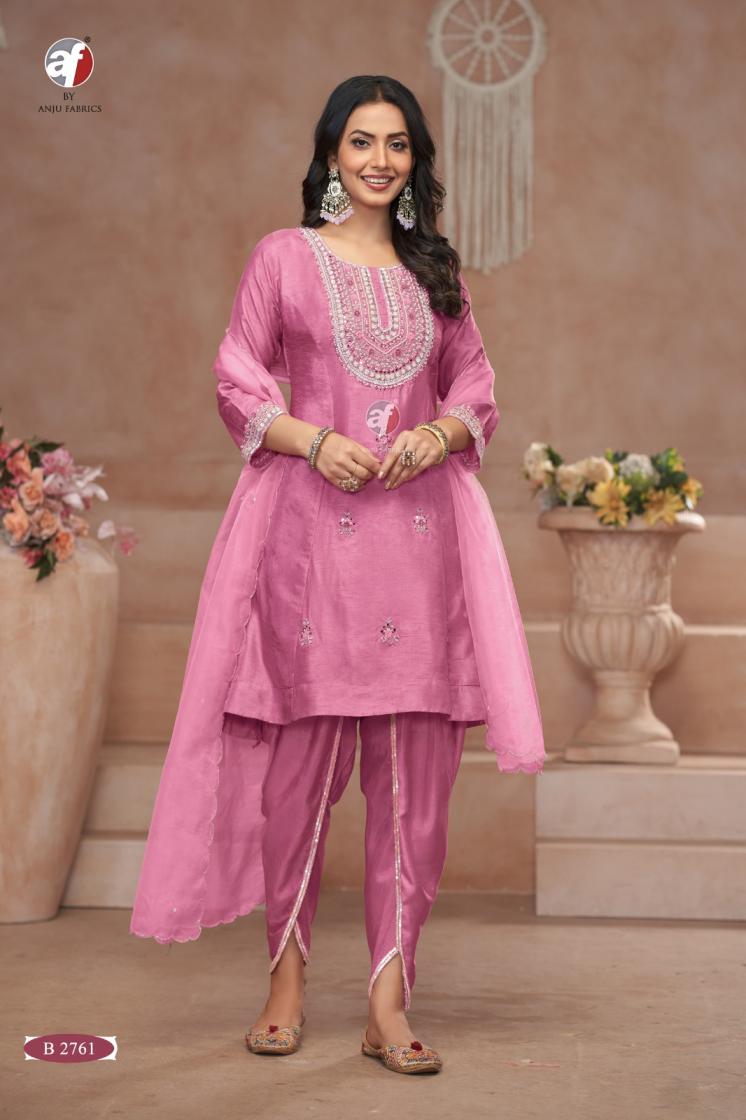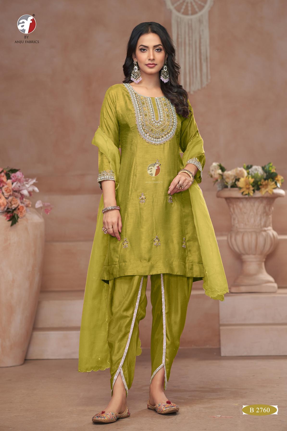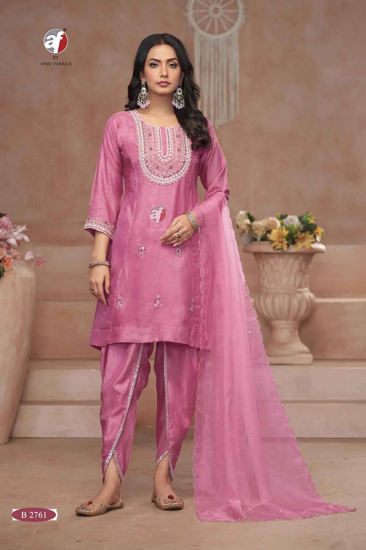 anju fab b 2760-2761 fully stitch dola silk combo elegance short anarkali tulip pant with dupatta
