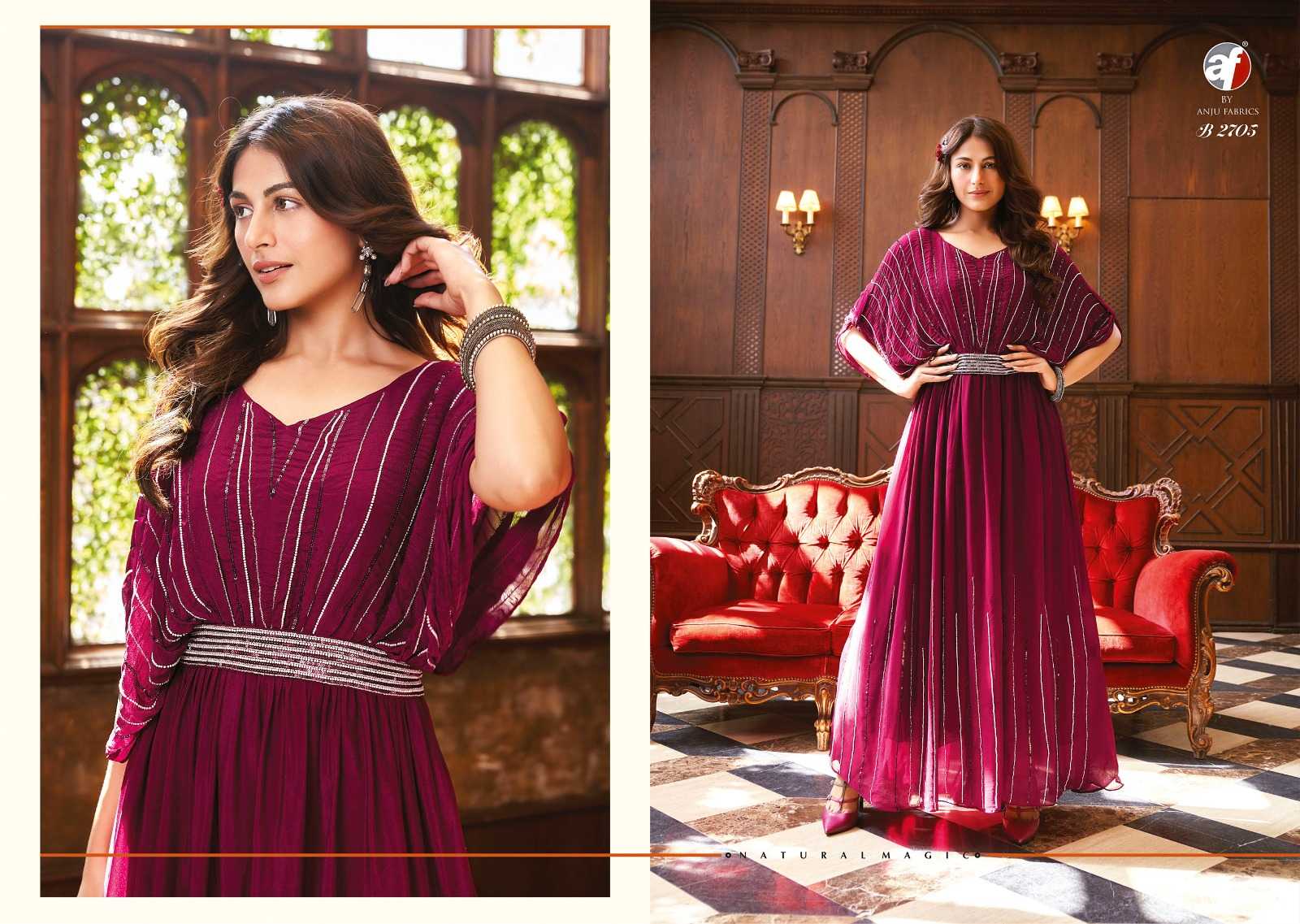 anju fab b2705 party wear readymade designer western gown with belt combo set