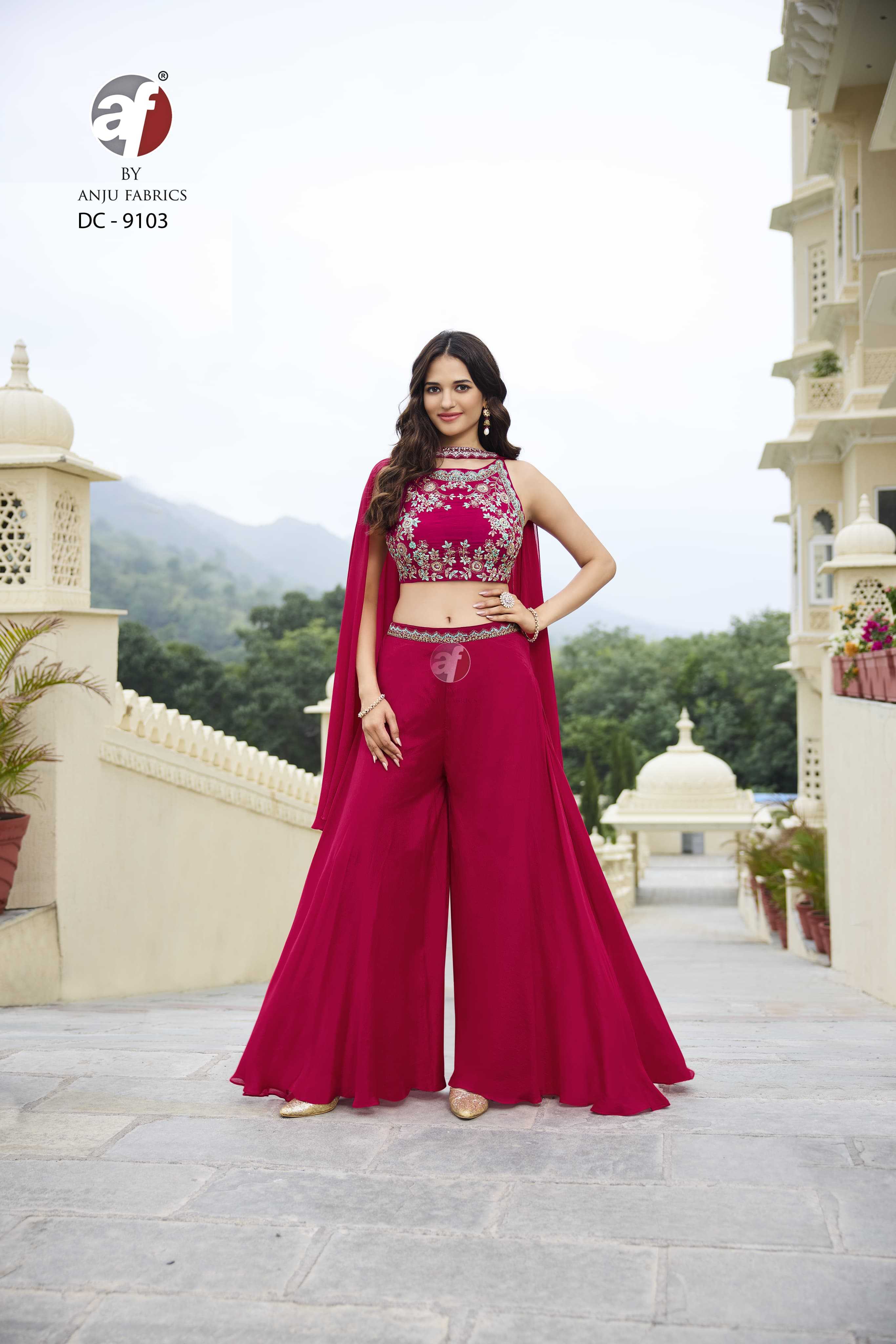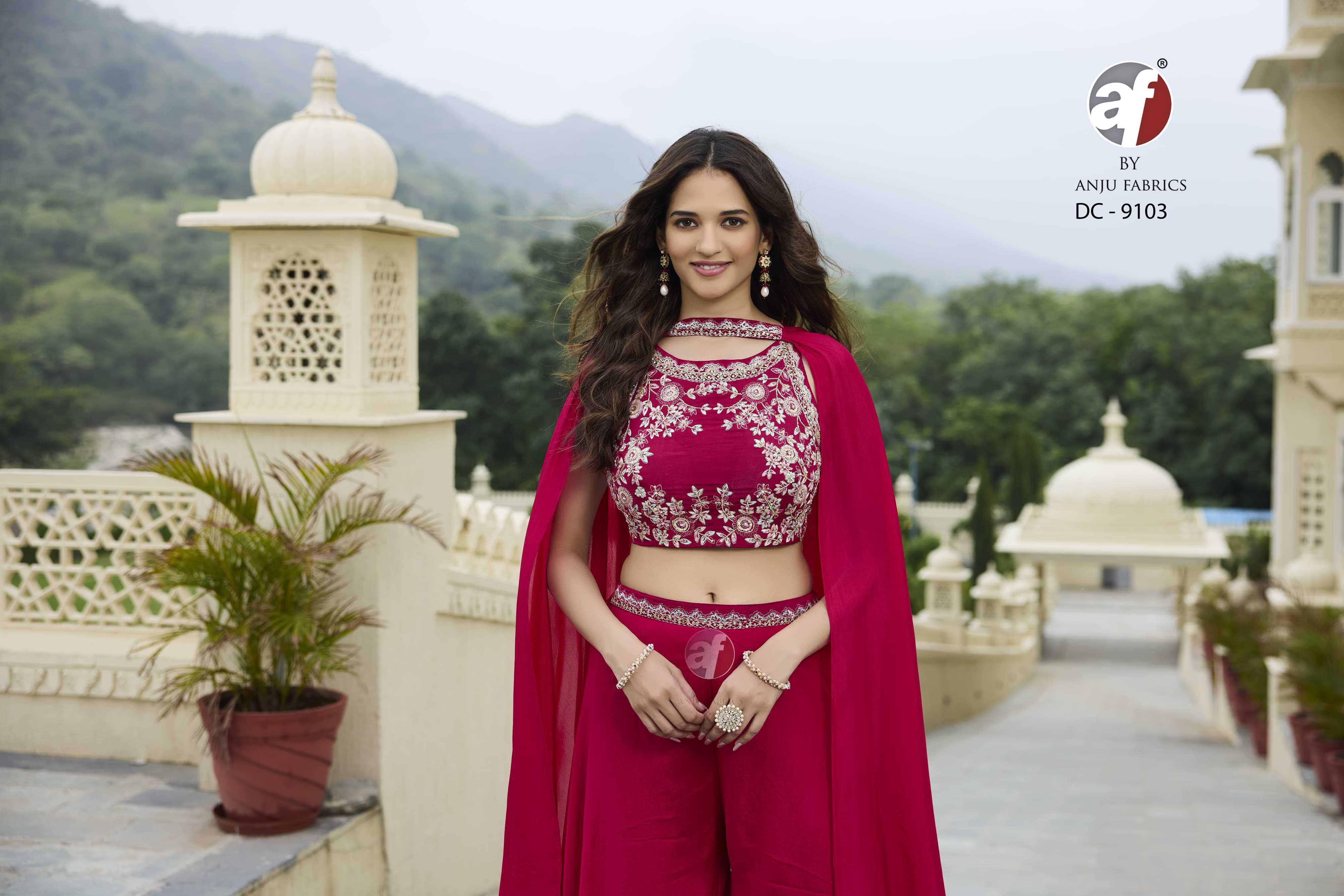 anju fab dc 9103 chinon readymade combo crop top drape skirt with dupatta