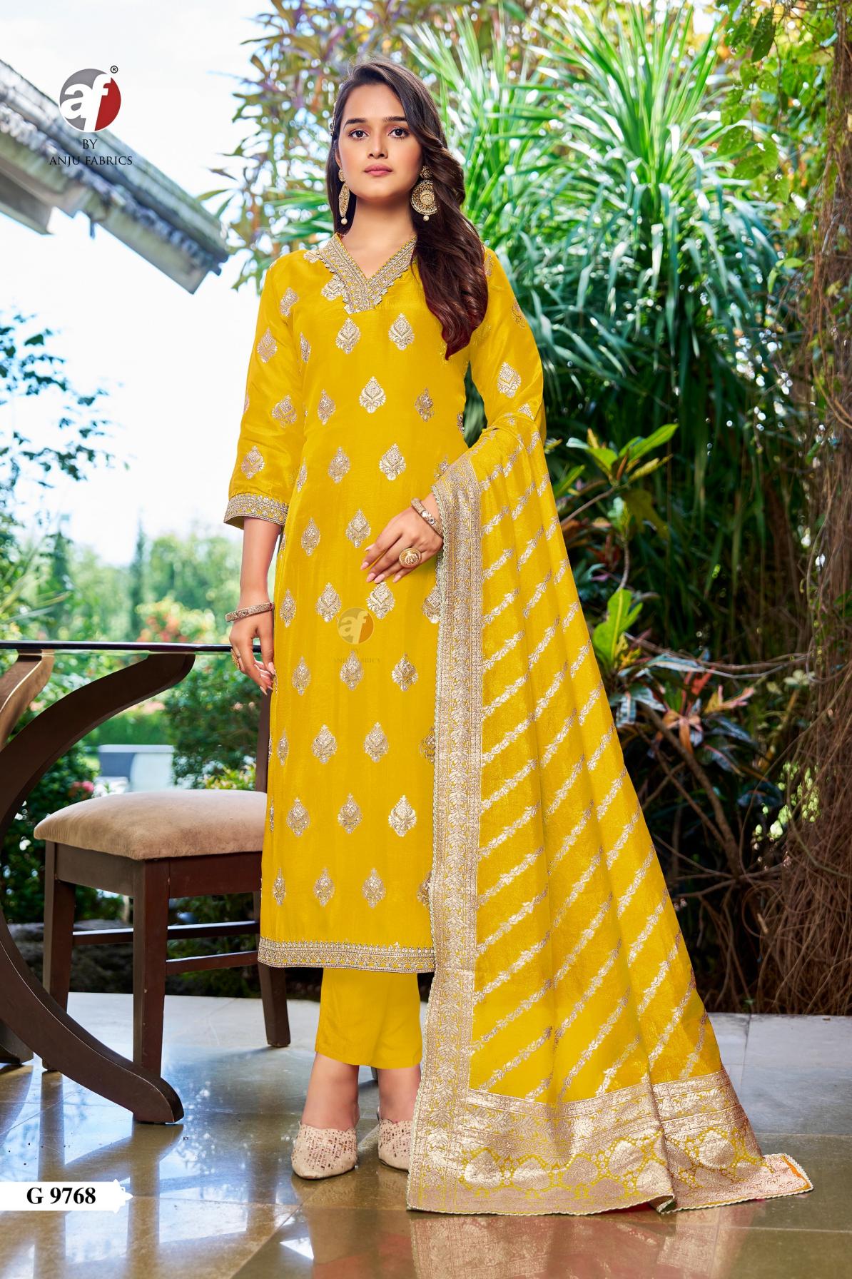 anju fab g 9768 dola silk fully stitch premium combo 3pcs dress