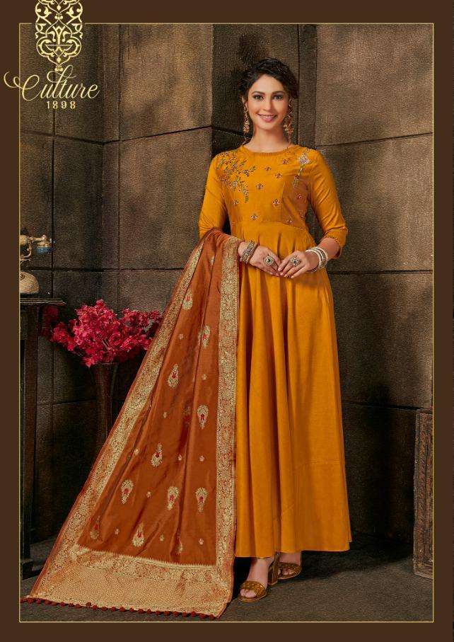 Anju Fab Haseen Pal Vol 7 Banarasi Silk Long Gown With Dupatta