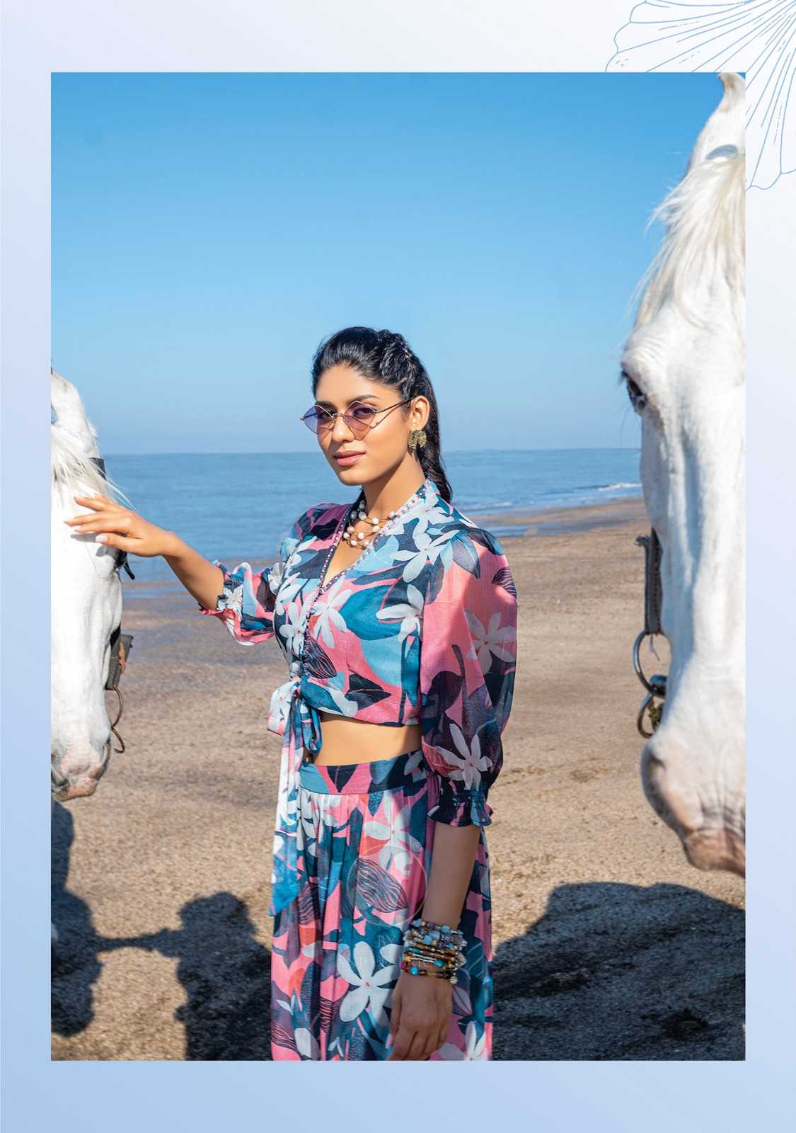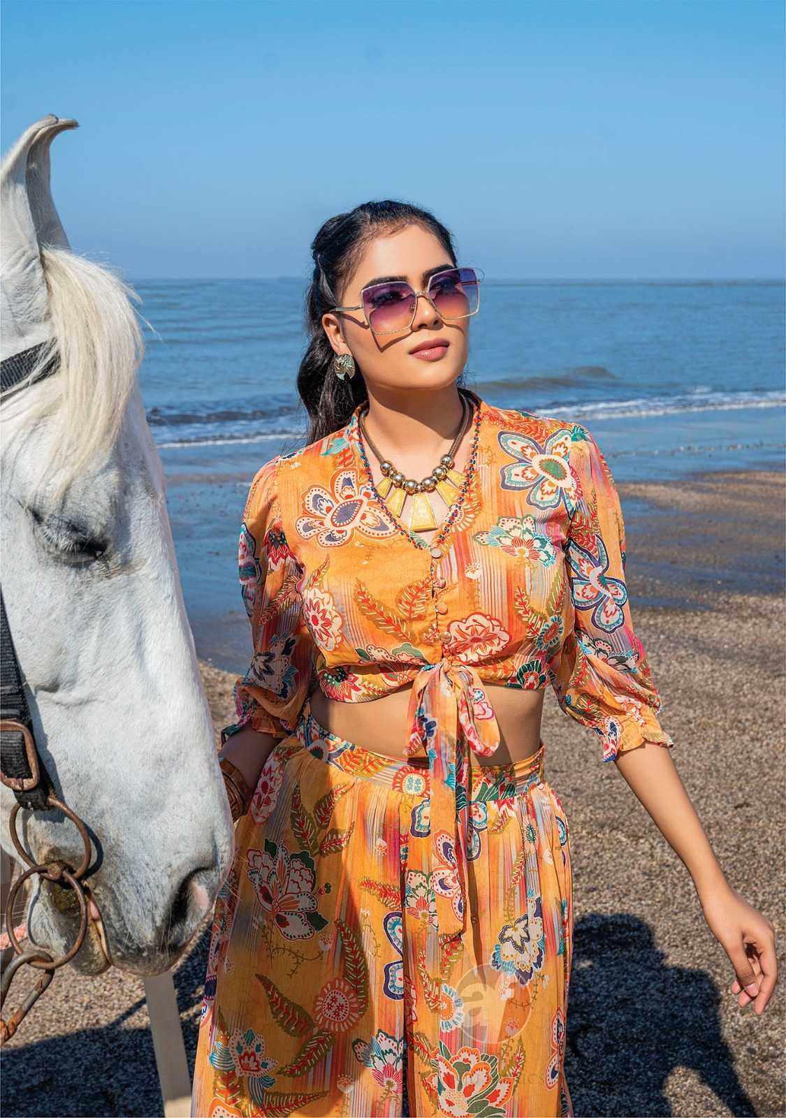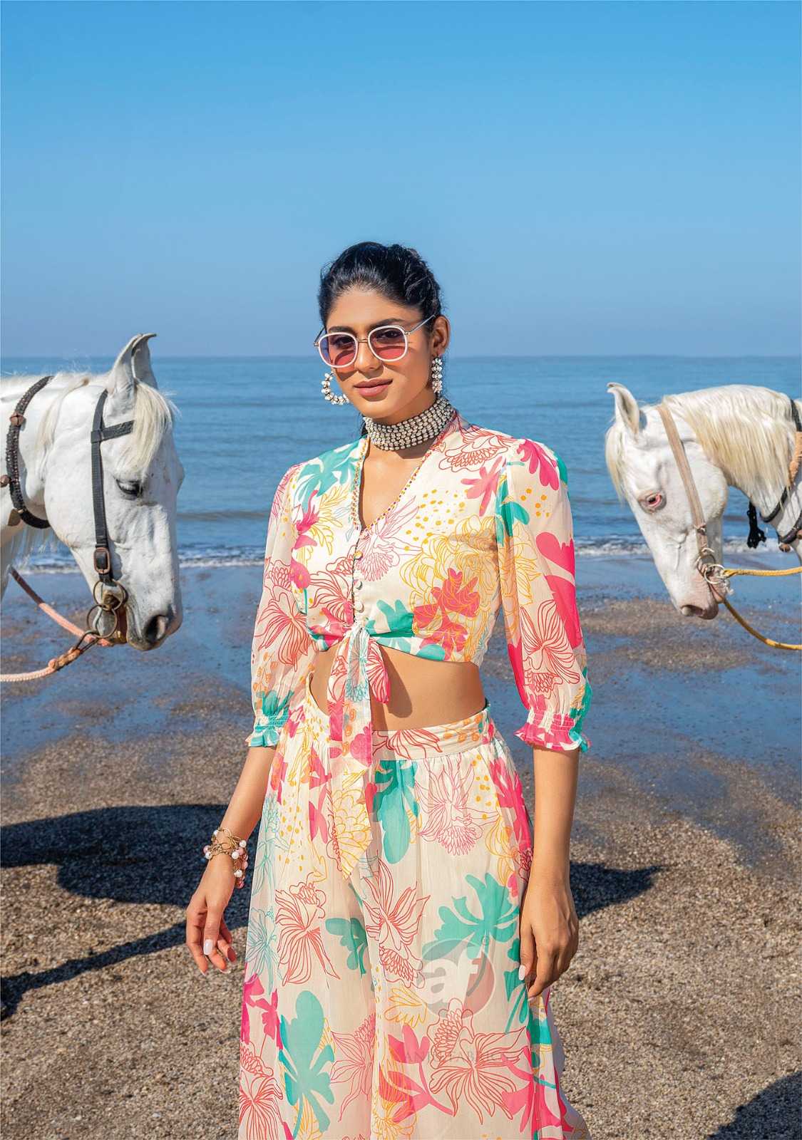 anju fab hello summer readymade travelling wear crop top with plazzo