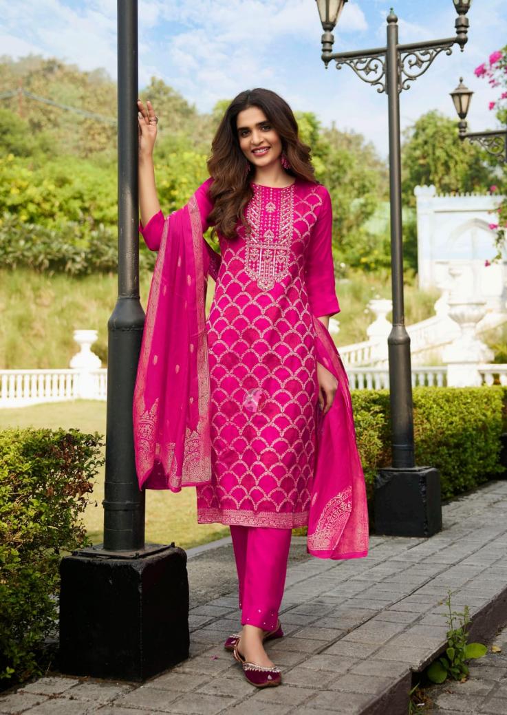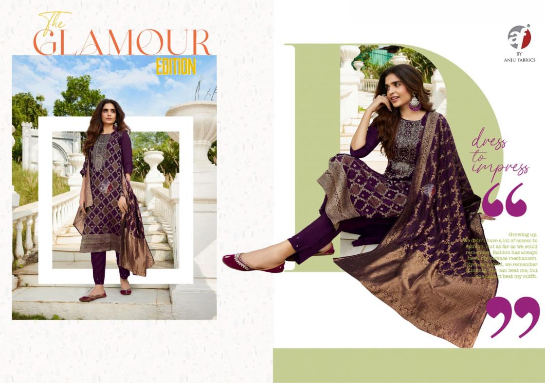 anju fab launch zari dola silk with jacquard exclusive readymade 3pcs dress