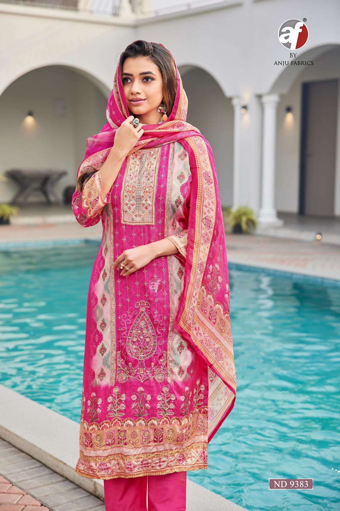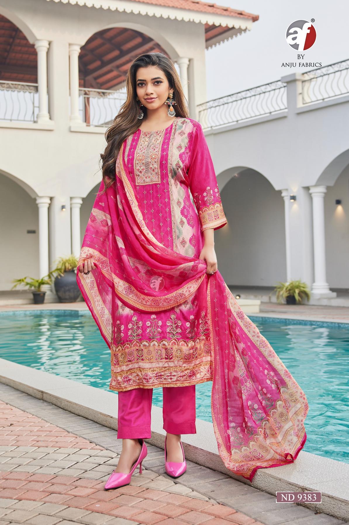 anju fab nd 9383 viscose silk full stitch stylish combo 3pcs dress