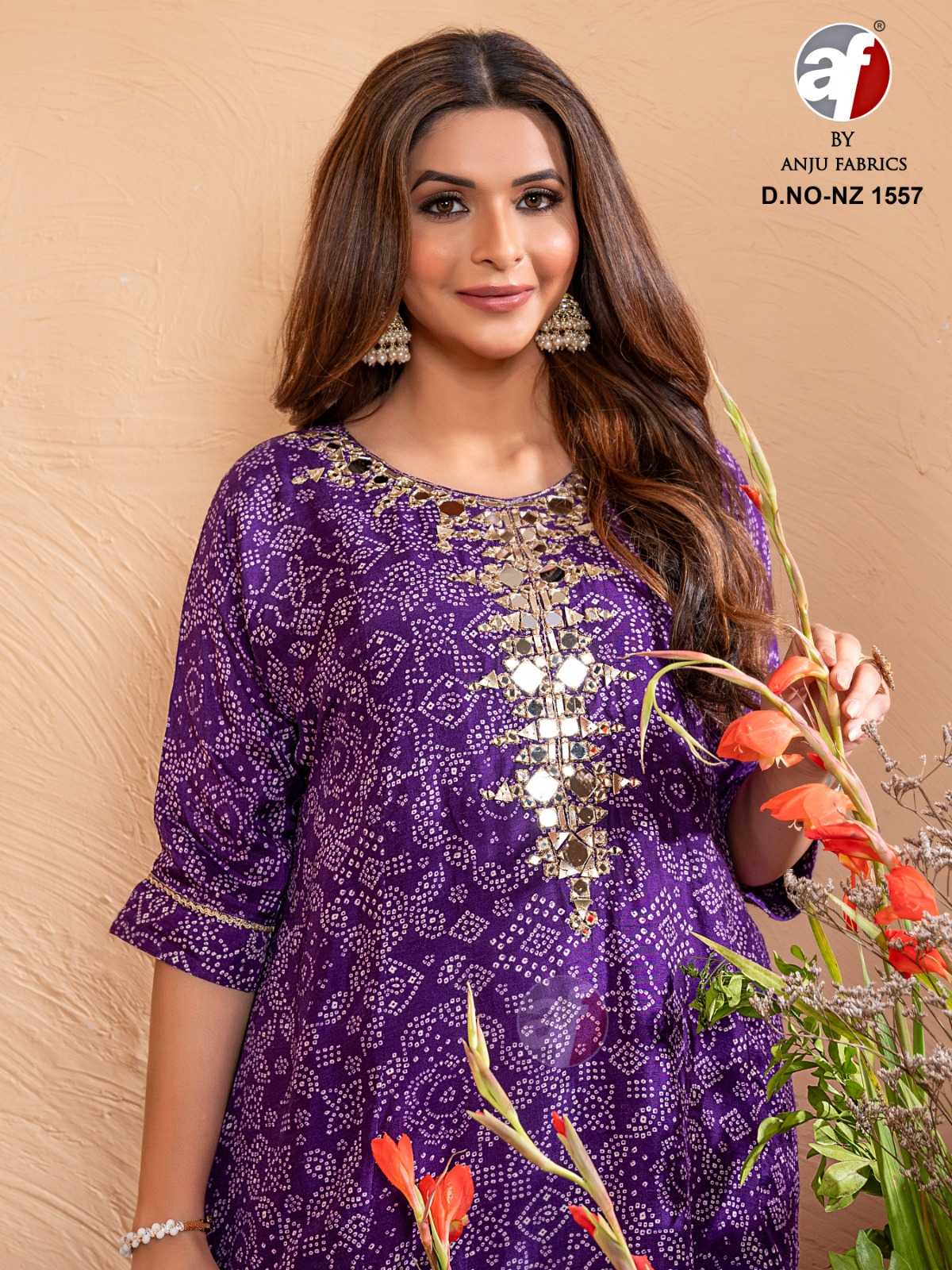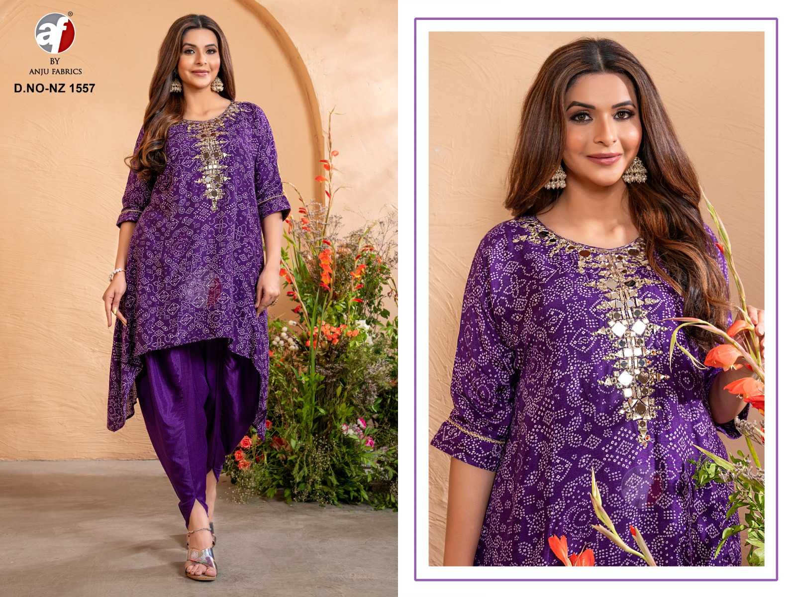 anju fab nz 1557 dola silk readymade combo kaftan kurti with tulip pant