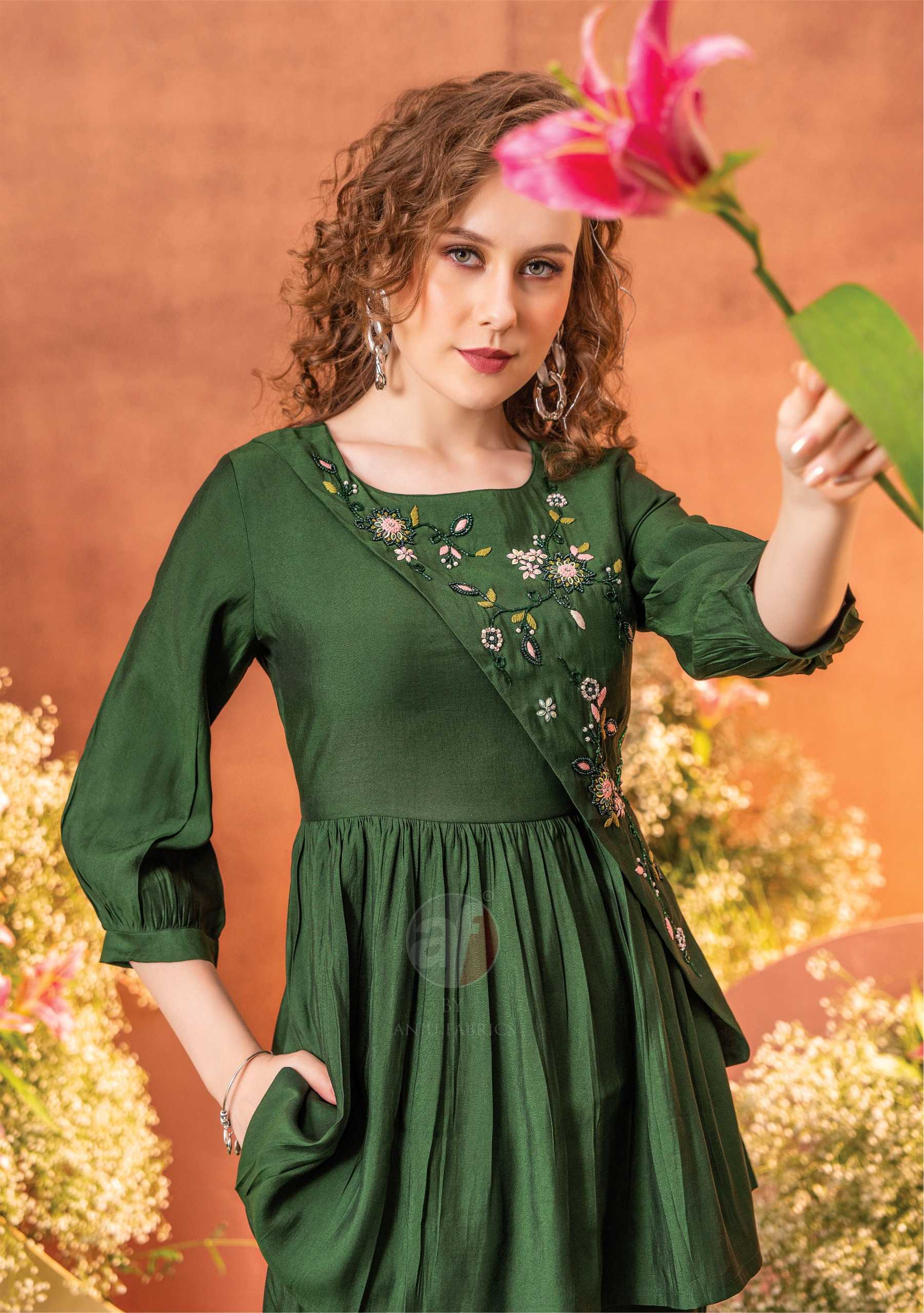 anju fab presents fusion vol 4 full stitch big size stylish outfit viscose indo western dress
