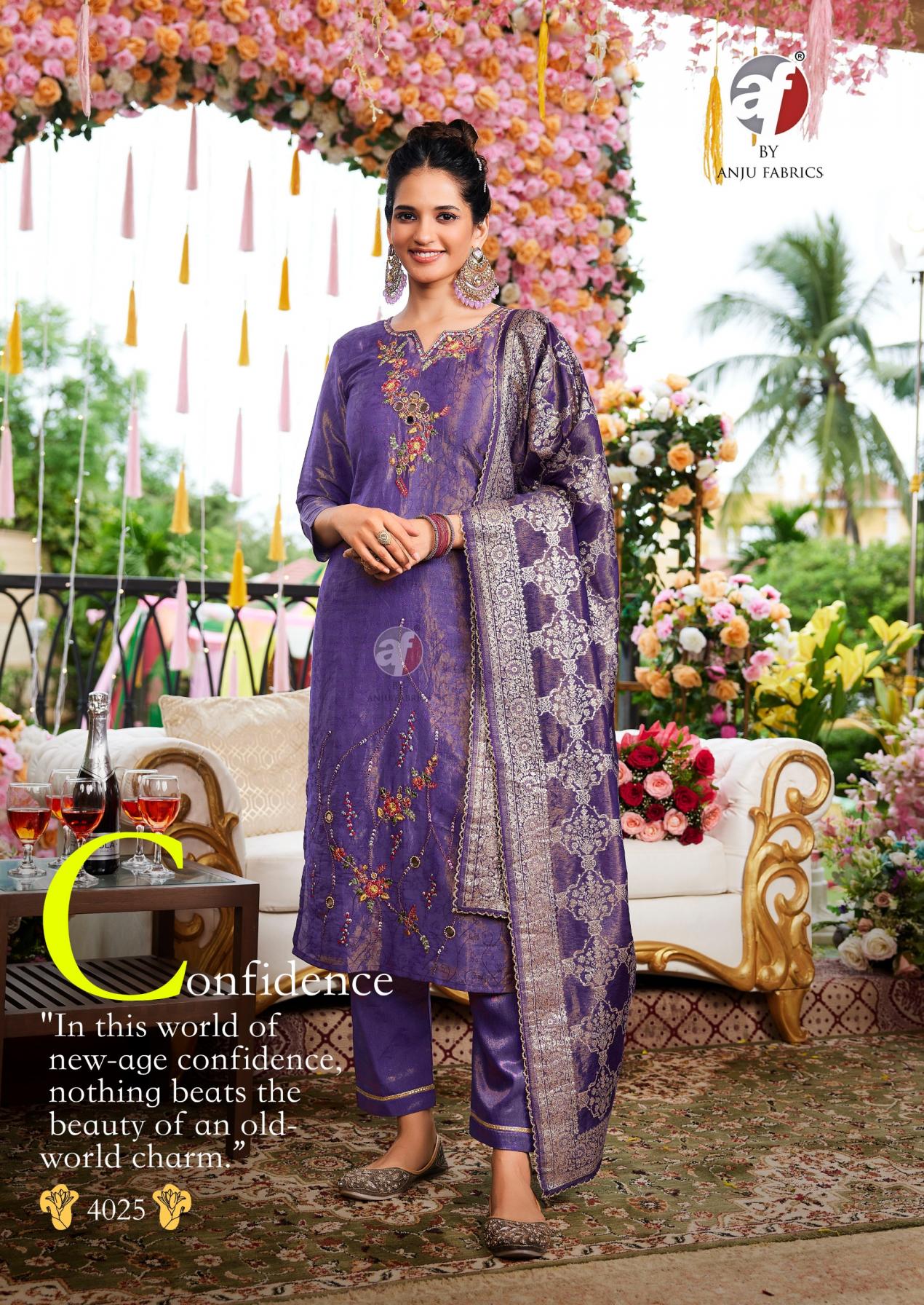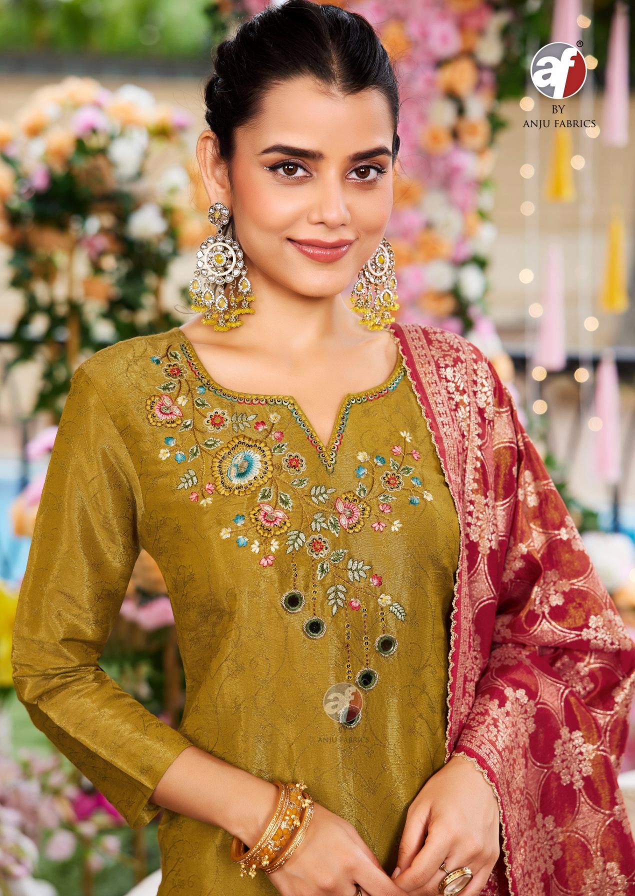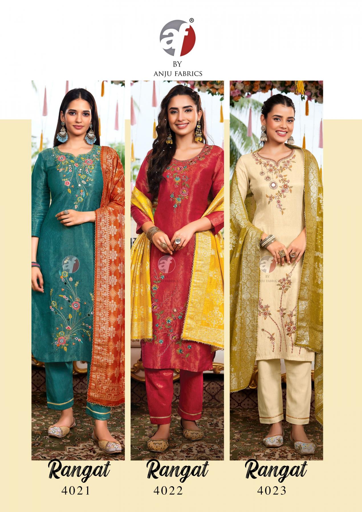 anju fab rangat tissue shimmer fully stitch pretty look 3pcs dress