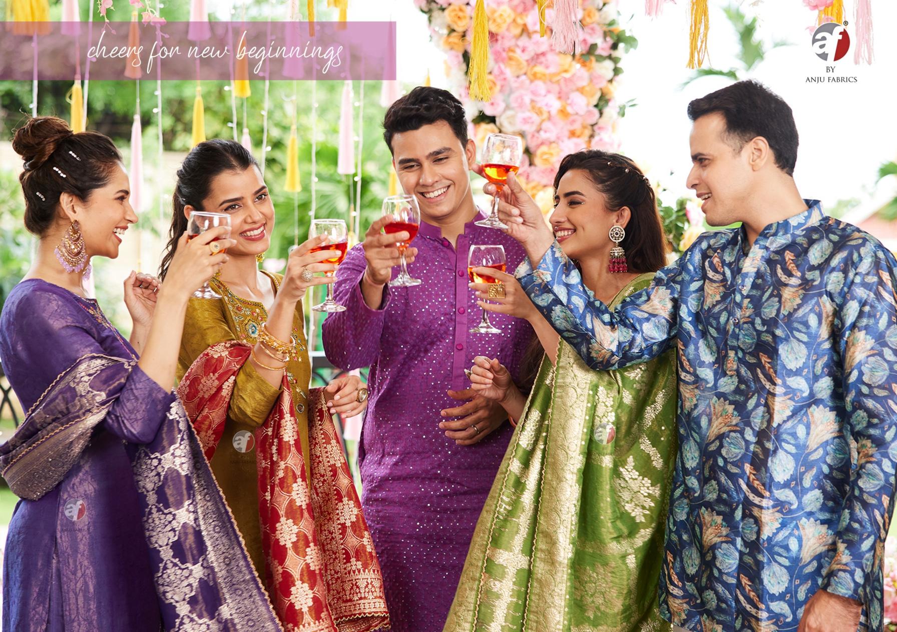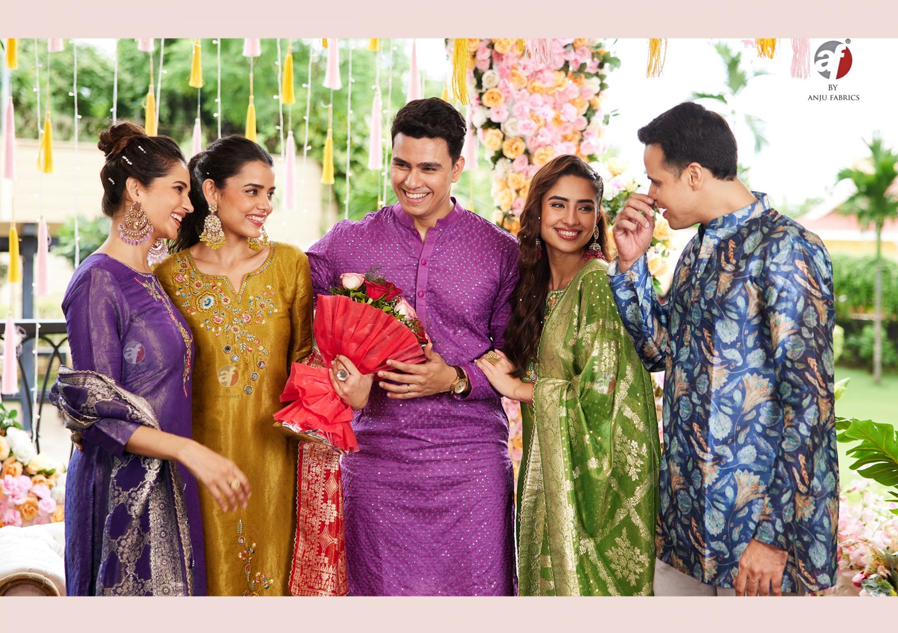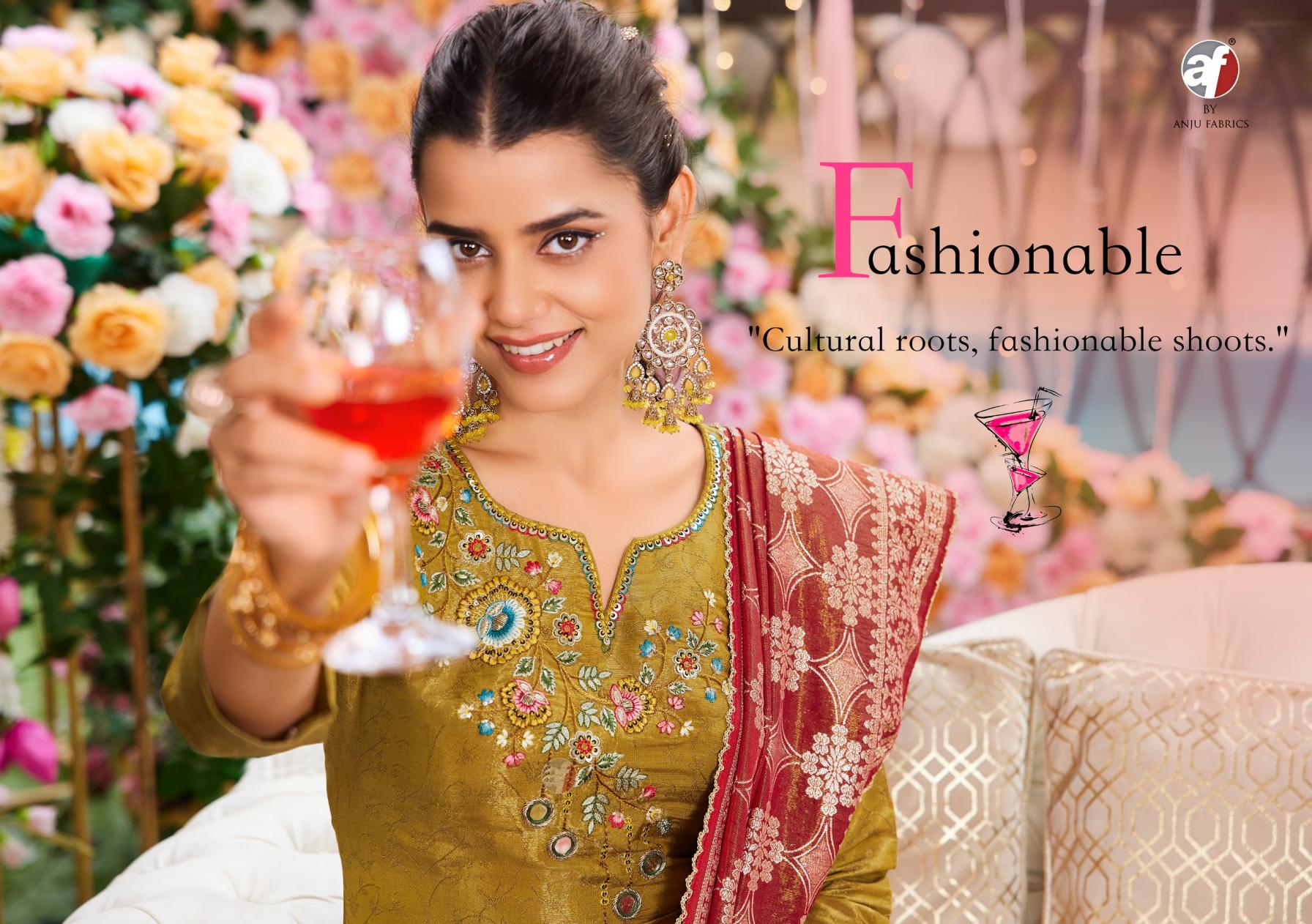 anju fab rangat tissue shimmer fully stitch pretty look 3pcs dress