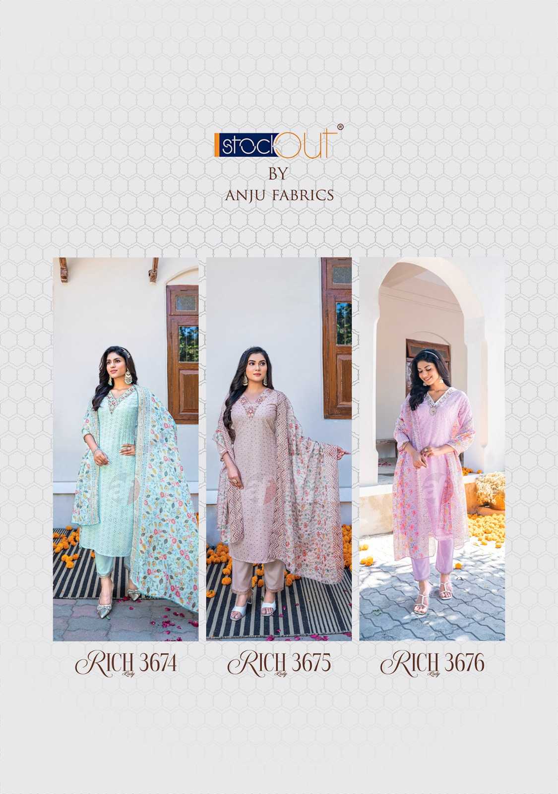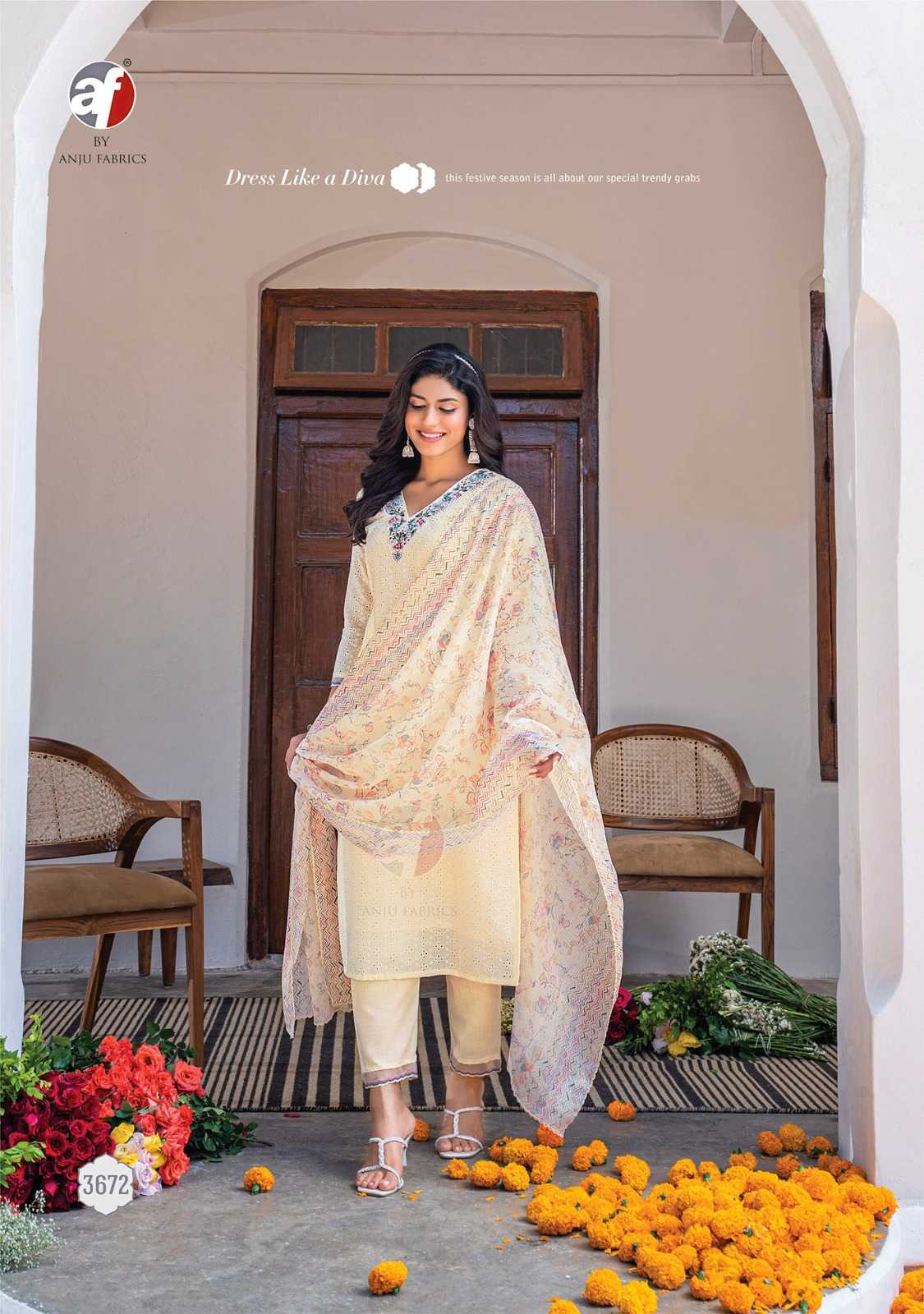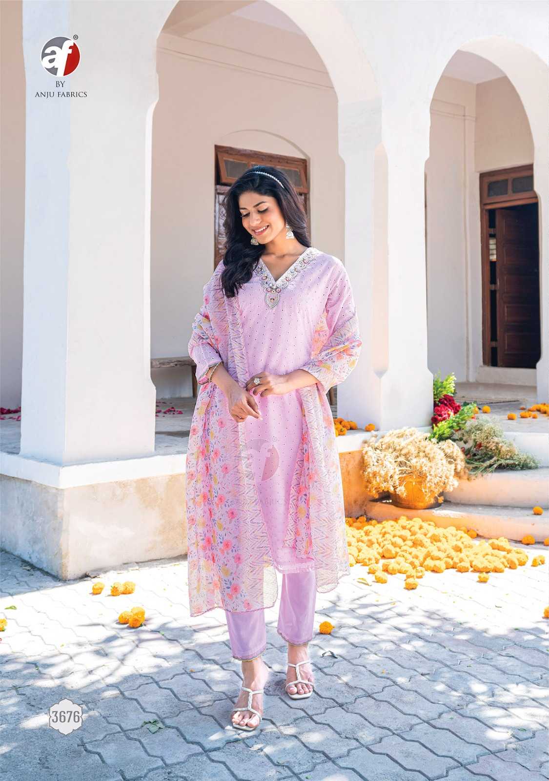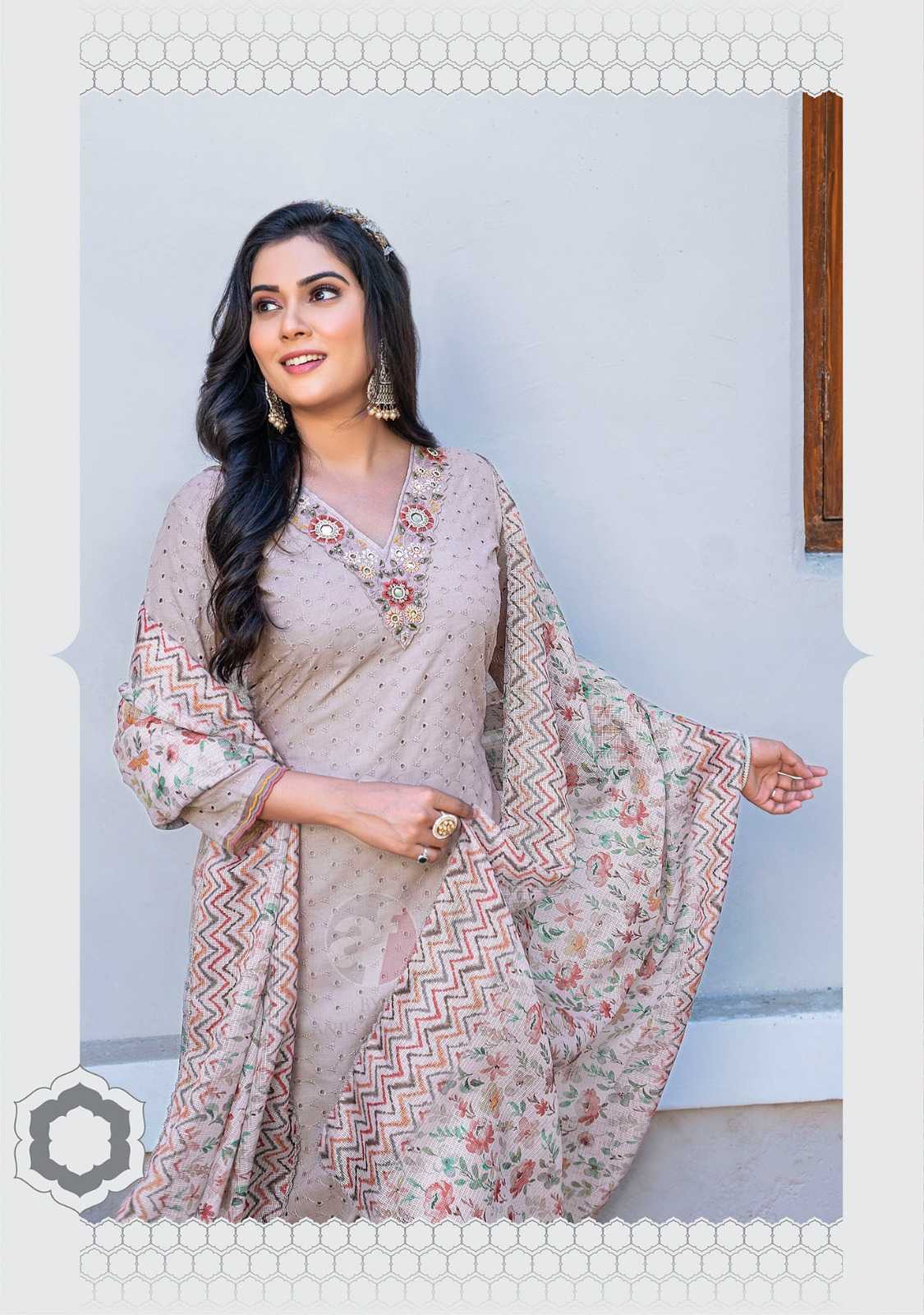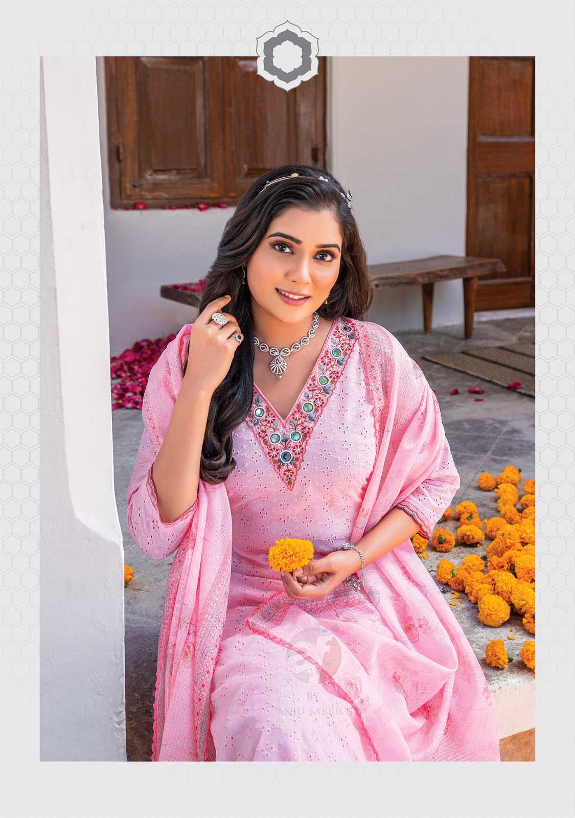 anju fab rich lady designer readymade occasion wear schiffli work top pant with digital print dupatta