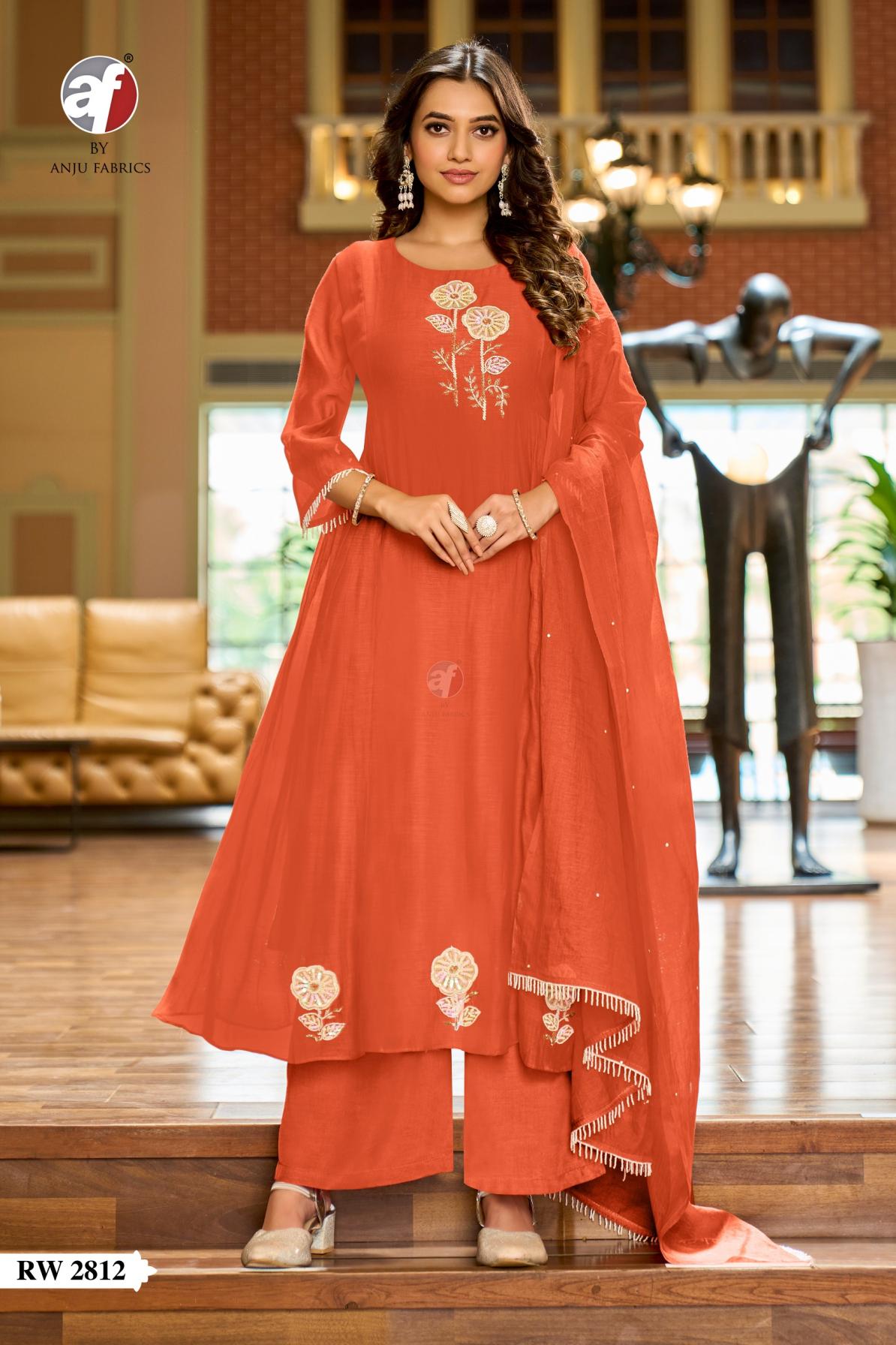 anju fab rw 2812 mul chanderi readymade classic combo suit for womens