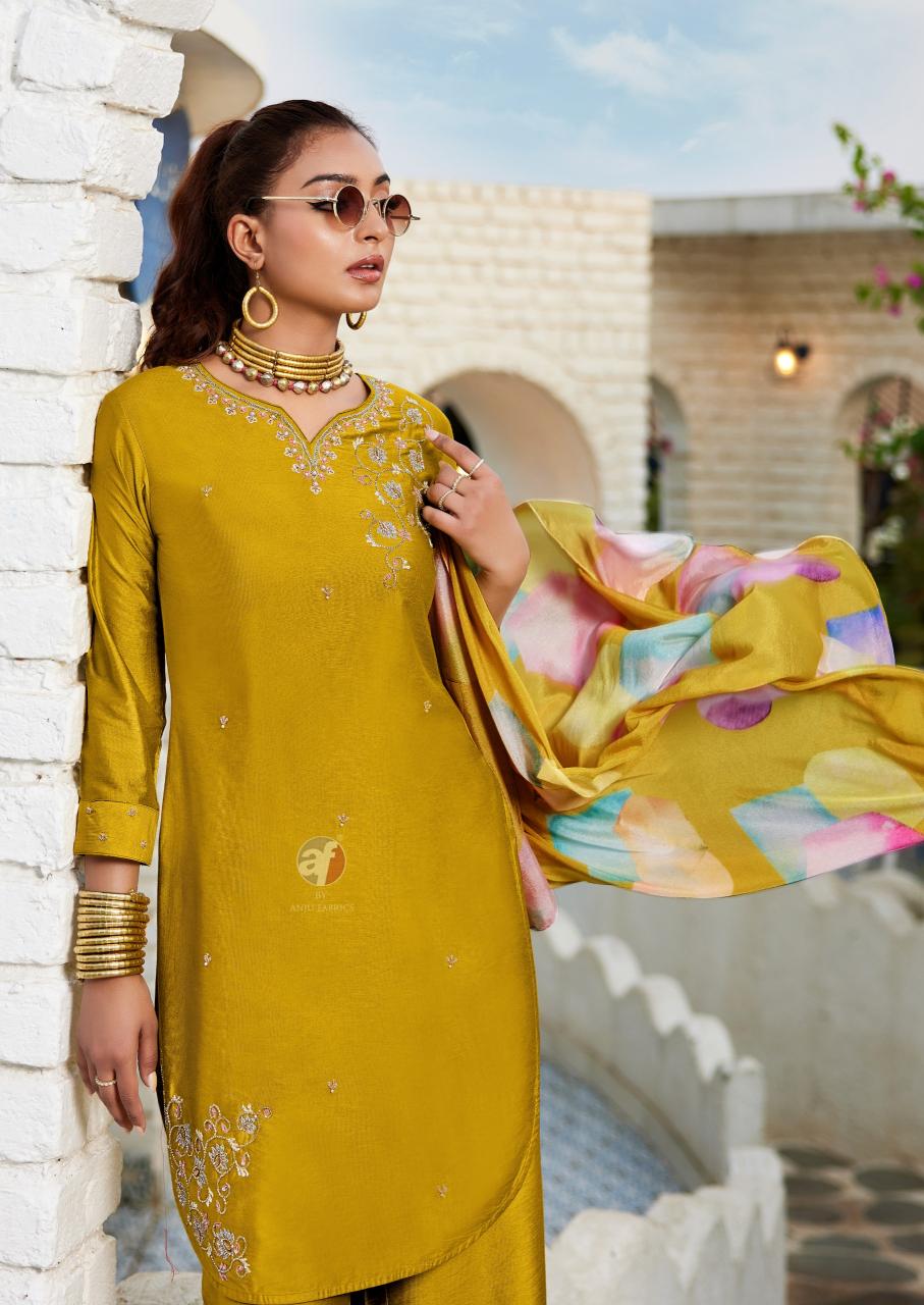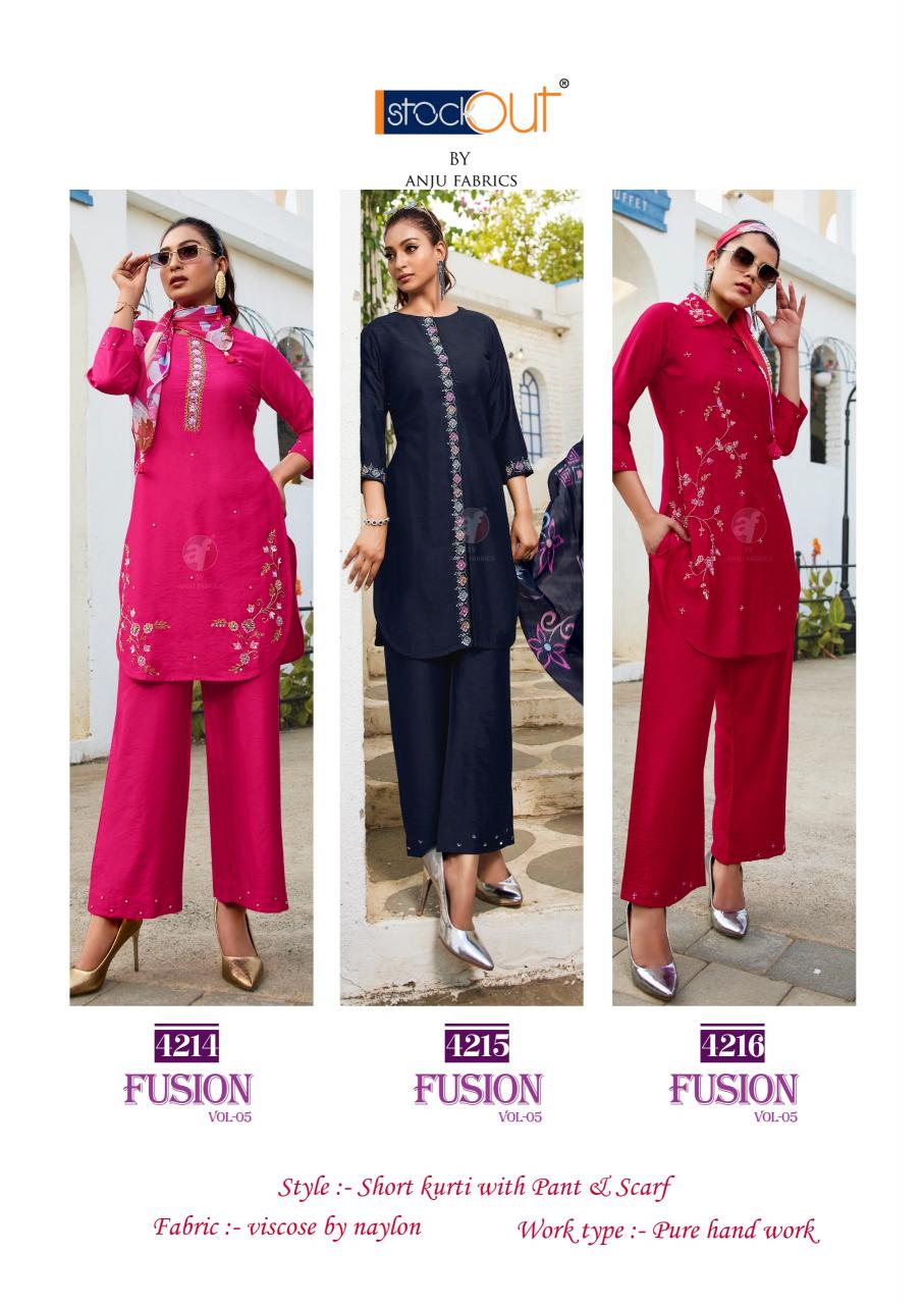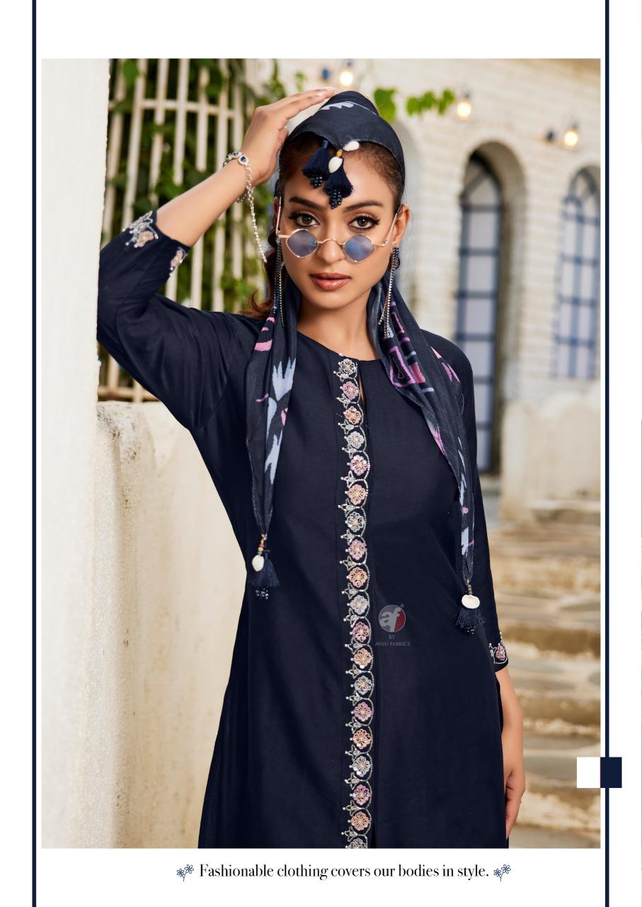 anju fusion vol 5 readymade exclusive viscose nylon big size kurti plazzo with scarf
