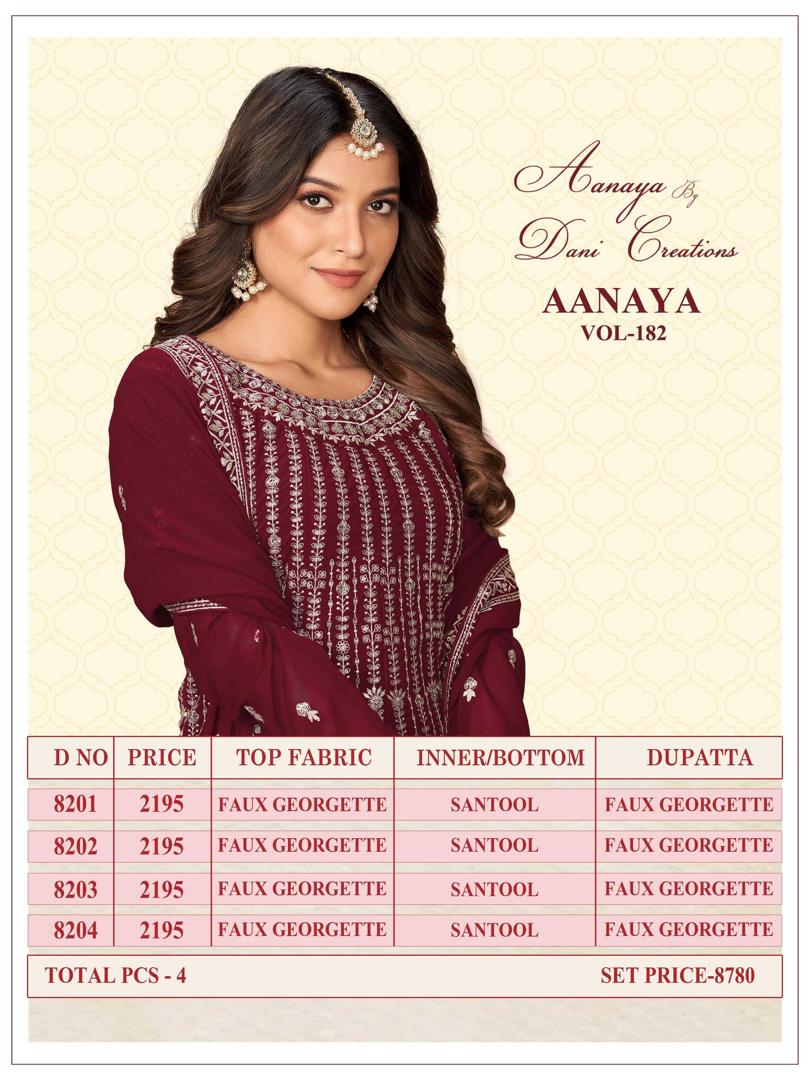 Hello Sir, Twisha 🌹 AANAYA VOL 182 🌹 👗Top. – FAUX GEORGETTE 🇬🇲inner- SANTOOL 🇫🇲 Dupatta – FAUX GEORGETTE Price :- 2195/- RS per pcs