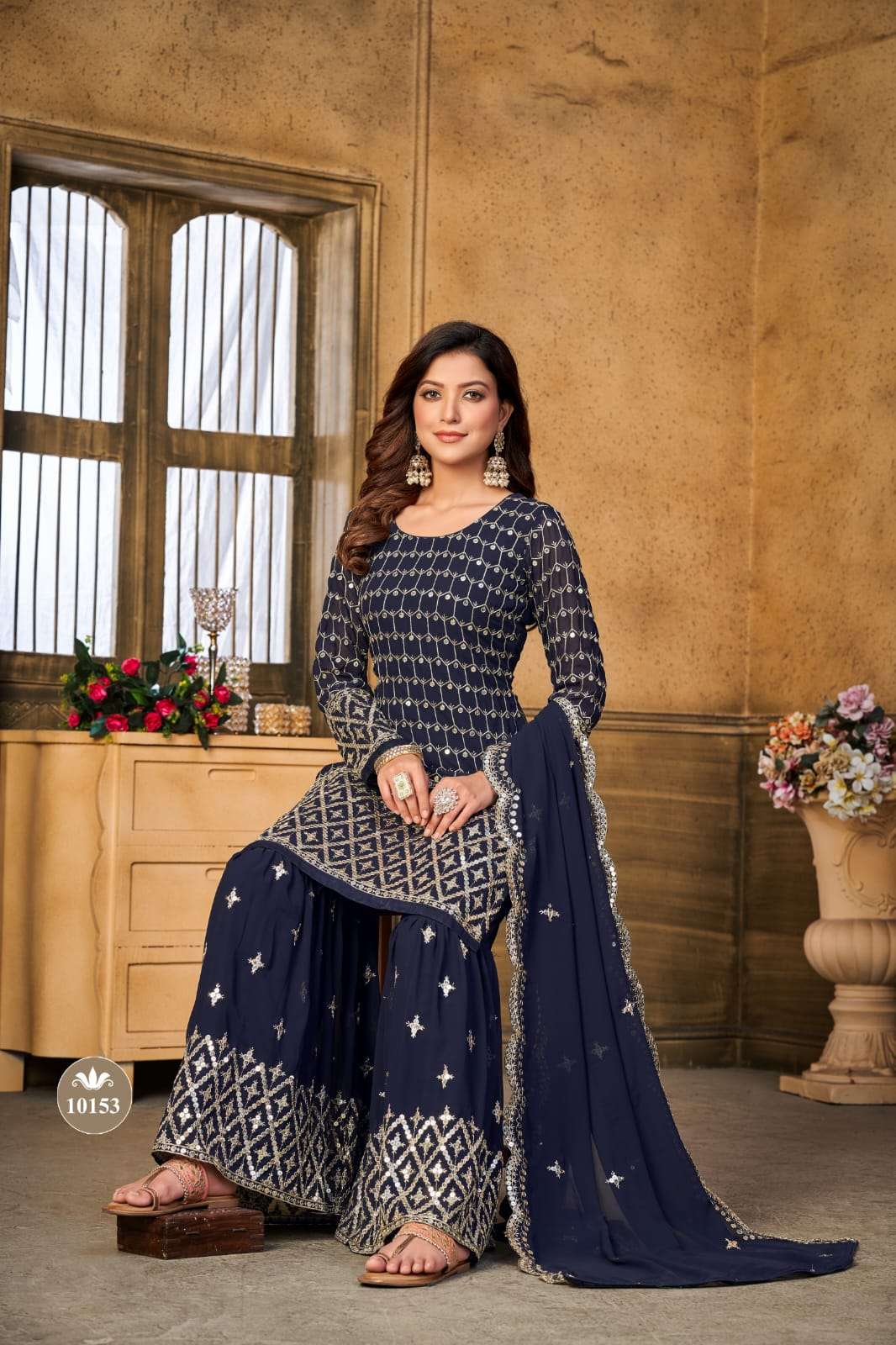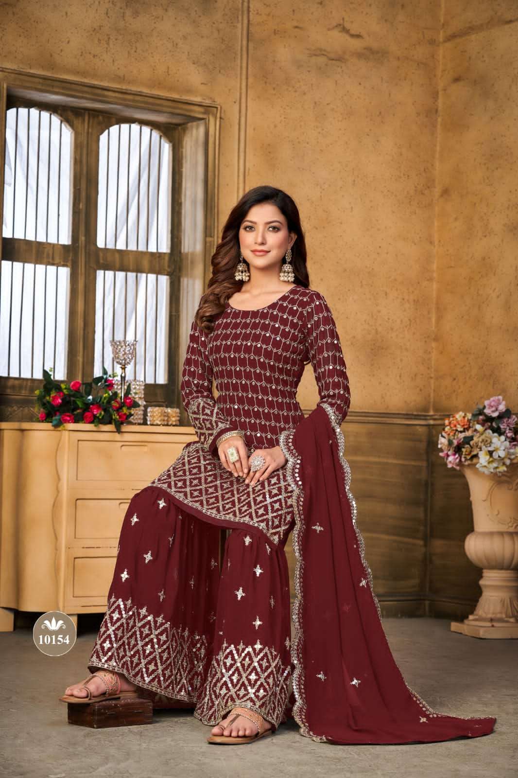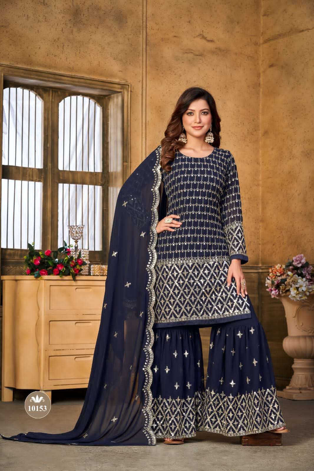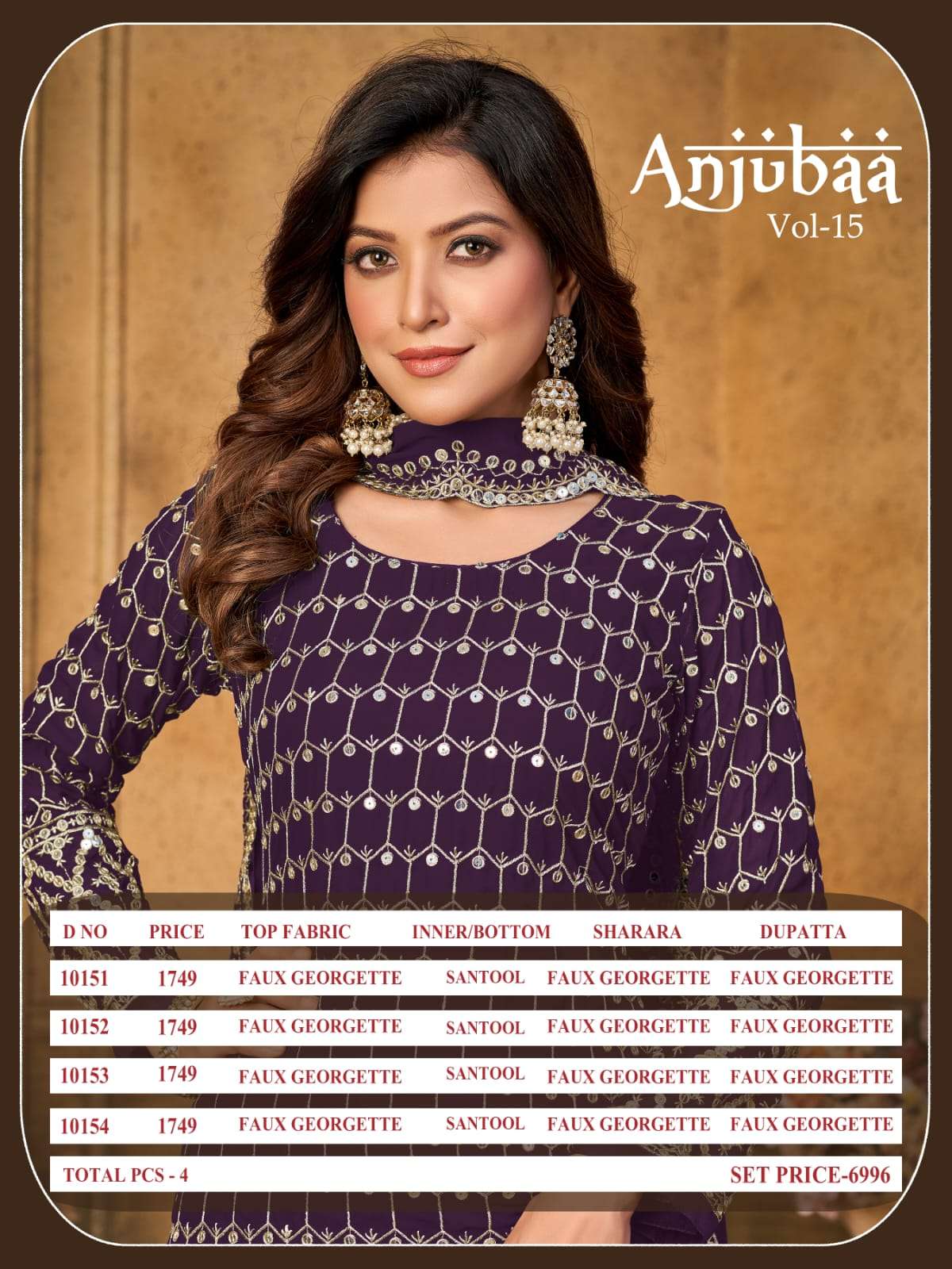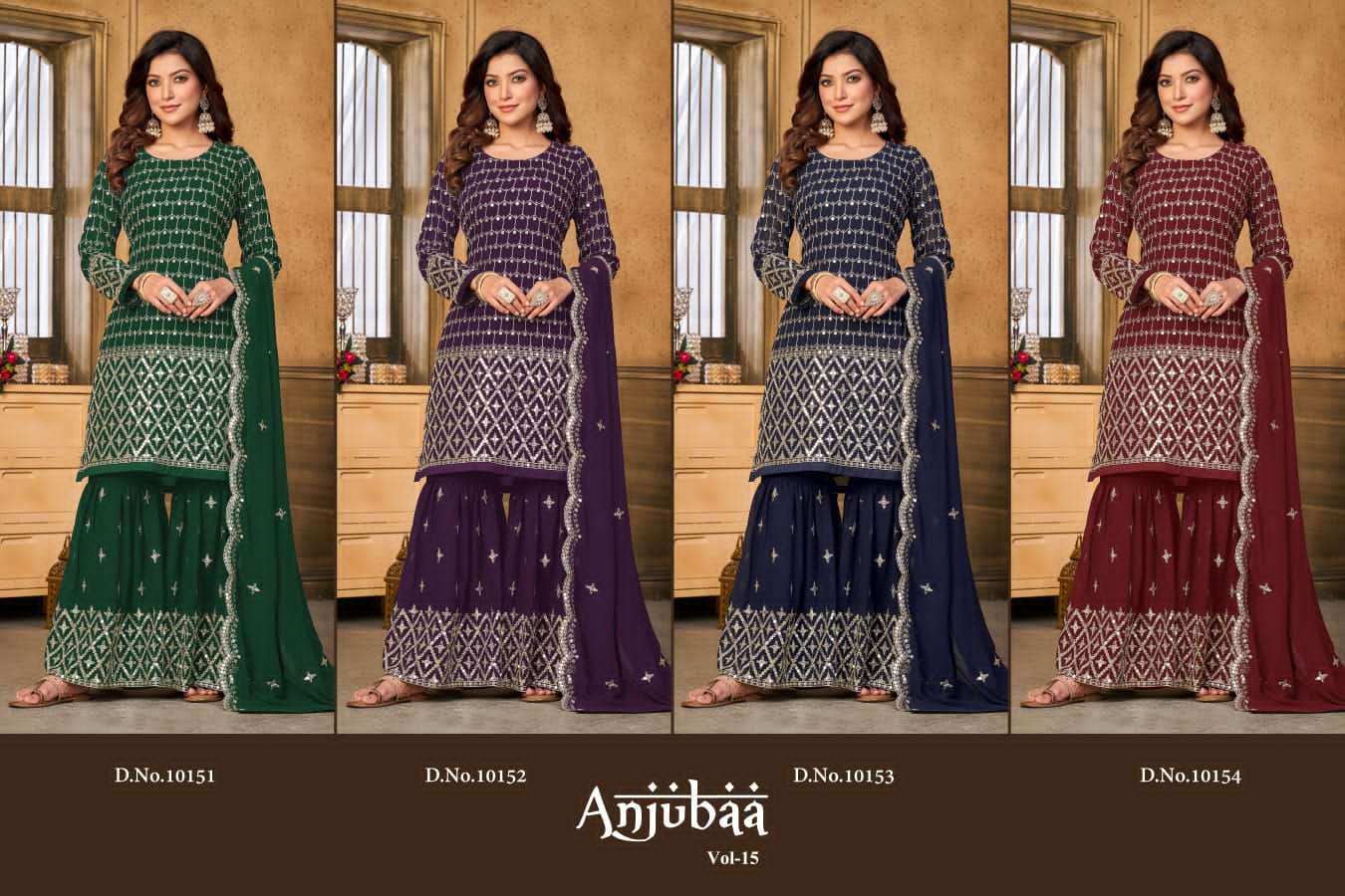 anjubaa vol 15 designer work unstitch top with readymade sharara and dupatta collection